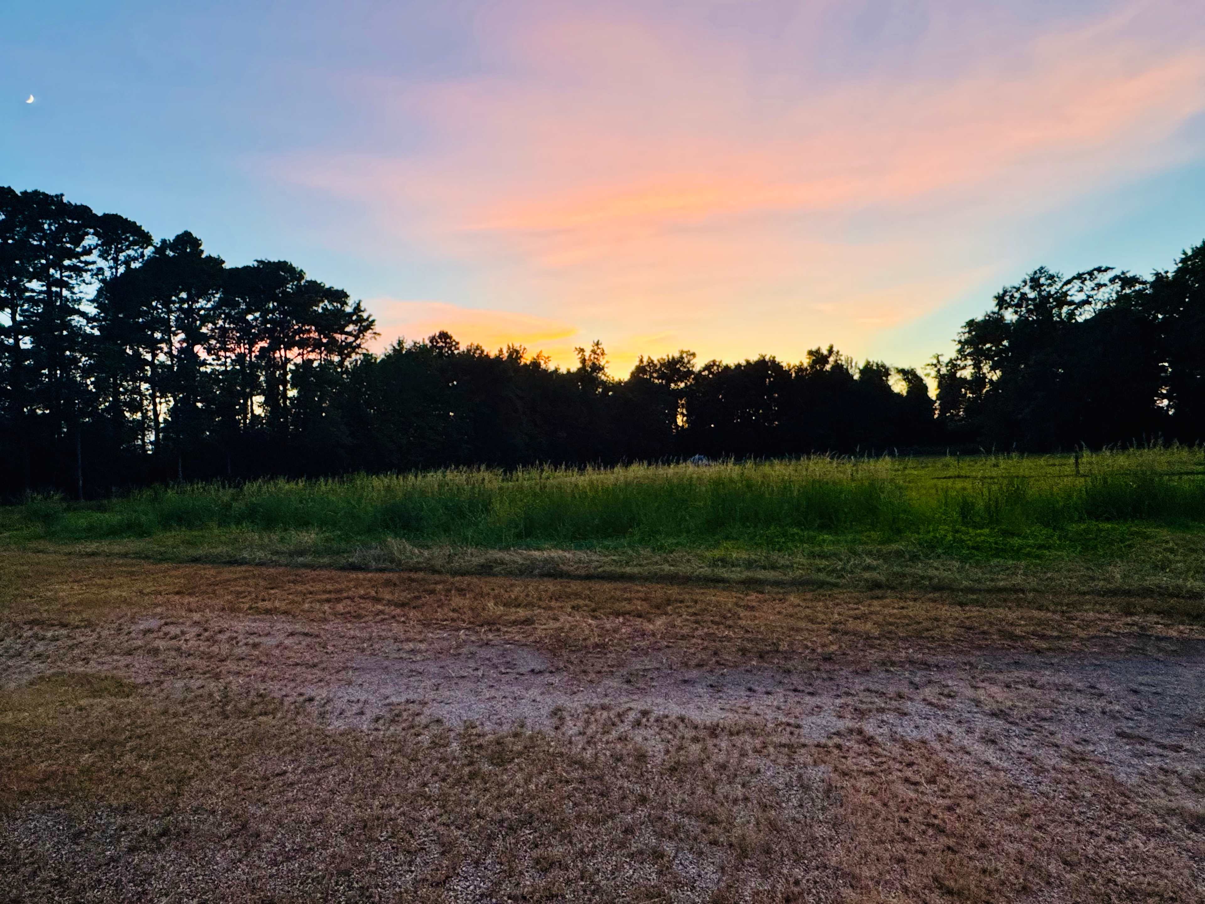 Welcome to my farm! I grew up here, moved away and had a wonderful opportunity to make it my home again and so I did. I live directly beside the farm, along with my Fiance, our dogs, and cat and we raise livestock - sheep and goats. We have a small pond, a walking/golf cart path around the pastures, a few camper lots and primitive tent sites. The sun sets behind the trees every night and the nights are lit up by stars - my favorite constellation being Orion. We are in the county but only 2 miles from town and amenities. We love for people to enjoy the place we love so please come on by and stay for a bit.RV Lot 1 is backed up to the pasture where you’ll be able to watch goats and sheep eat and play all day. It comes with a 50 amp electric hookup, water and septic hookup. Easy access to turn big rigs around and parking.