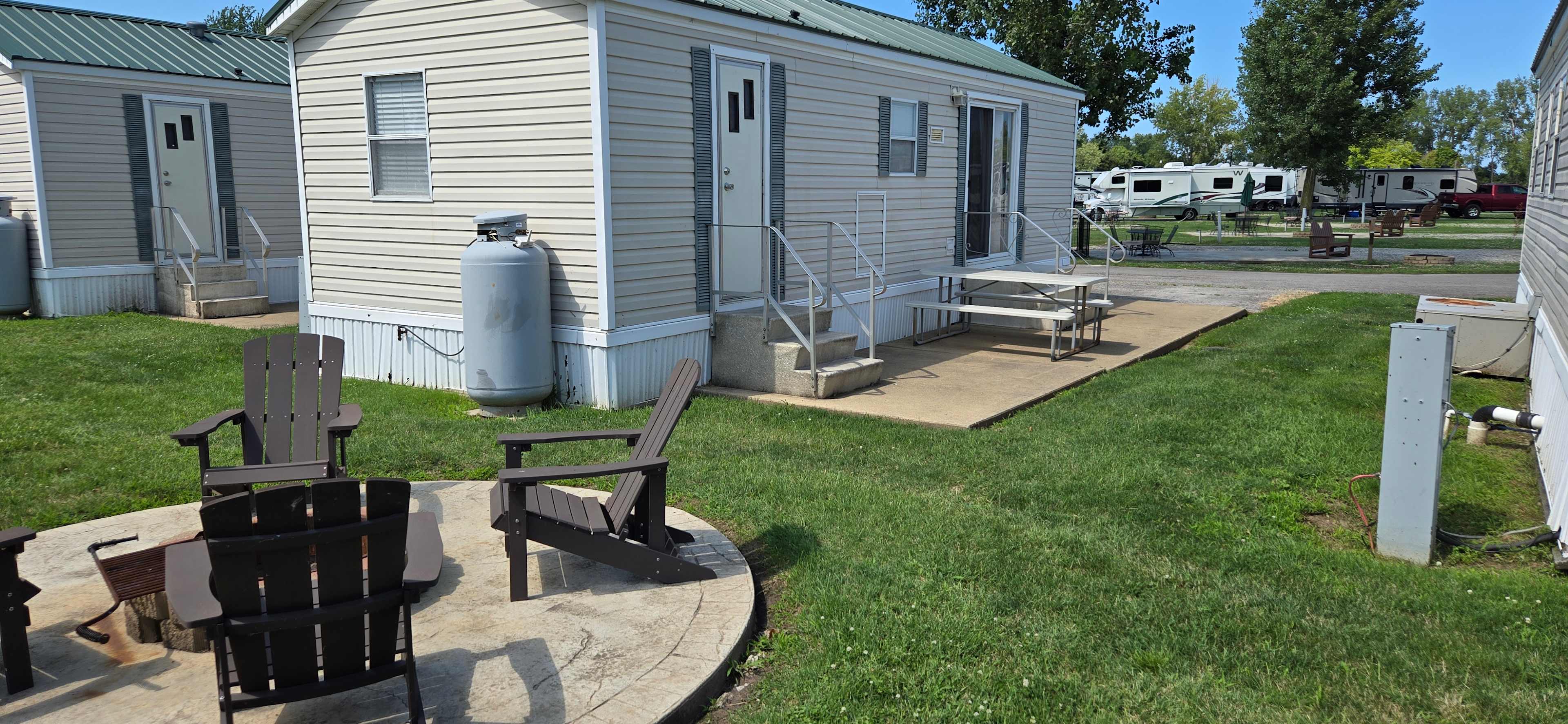 Our 2-Bedroom Bunk Bed Park Model is a fantastic choice for youth teams, families, or groups traveling together and looking for a comfortable, convenient stay. Sleeping Arrangements: Master Bedroom: 1 full-size bed, Second Bedroom: 2 sets of bunk beds (sleeps 4) — a cozy space ideal for kids or team members, Additional Sleeping: Futon (pull-out bed) Interior Features: Full kitchen for easy meal preparation, Full bathroom, Bed linens provided, Bath towels for 6 provided, Cable TV, A practical, family-friendly layout designed for groups on the go, Outdoor Amenities: Fire pit area located behind the unit—perfect for relaxing evenings, Small parking area (please be mindful of neighboring campers) These units are located along our back fence line and offer a comfortable, budget-friendly option for groups needing space and convenience. We look forward to hosting your family or team and providing a great stay. Important Information: No pets allowed — $100 minimum fee applies if violated, Check-in time: 4:00 PM, Quiet hours: 11:00 PM – 8:00 AM, We are a city-park-style campground, which means our environment is active, family-friendly, and full of energy. We offer two pools, a playground, a jump pillow x2, pedal carts, and more. If you are seeking a very quiet, rural setting, we will not meet those expectations. A train does run frequently off property; while we have no control over its schedule, we do apologize for any disruption it may cause. Birthday parties, group gatherings, and multiple visitors must be approved by management — please call ahead for details. We look forward to welcoming you and providing a memorable camping experience!