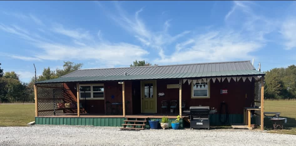 This unique home features two bedrooms: one equipped with a queen-size bed and the other with twin-size bunk beds and two extra cot-sized memory foam roll-up mattresses for added guests. Enjoy the spacious, beautiful front porch, which includes a fish-cleaning area, grilling space, and a cozy seating area complete with a porch swing for relaxing while taking in views of the lake. Guests are encouraged to contribute to a community ceiling display by leaving a magnet on the porch ceiling, fostering a fun and interactive atmosphere. The property boasts ample walking areas to enjoy nature, including a mowed path around the entire 9-acre pond, perfect for sunset strolls. Additionally, there’s a hammock near the peacock pen where guests can unwind amidst the charming peacocks that roam freely. Don’t miss the chance to spot an eagle perched high on a tree branch by the lake. For water activities, a pontoon boat equipped with an electric motor and paddles is available for leisurely exploring the lake, as gas motors are not permitted, ensuring a tranquil environment. Guests can also swim in the clear, spring-fed waters from the sand beach area, adding to the charm of this private location, and, of course, enjoy fishing in the fully stocked pond. Many great places are nearby within 6–15 miles, including the best fried chicken in Oklahoma, a full-service Mexican restaurant, and a “home cooking” comfort foods restaurant. Locally, you can enjoy a gourmet coffee shop, Simple Simon's Pizza, a top-notch nail/manicure salon, a beauty salon and barber shop, a fully stocked liquor store, and a dispensary. Local fast food options include Sonic, Subway, and McDonald’s. The area also has a veterinarian, walk-in medical clinic, Dollar General, Family Dollar, Dollar Tree, Harps grocery store, and a local hardware store. For auto needs, there are two mechanic shops. The town also features a post office, bank, and several ATMs. It’s a small town with everything you need!Make lasting memories with your family at this unique property, located just 1 mile off interstate 40. Experience the joy of fishing in a private and fully stocked 9-acre spring-fed pond or unwind at the private sand beach, where you can swim in the crystal clear water or simply lounge in a hammock while soaking up the sun. If you wish to indulge in star gazing, and other outdoor activities this rental offers something for everyone, ensuring a memorable getaway filled with fun and relaxation. This unique home features two bedrooms, one equipped with a queen-size bed and the other with twin size bunk beds and two extra cot-sized memory foam roll-up mattresses for added guests. Enjoy the spacious, beautiful front porch which includes a fish cleaning area, grilling space, and a cozy seating area, complete with a porch swing for relaxing while taking in views of the lake. Guests are encouraged to contribute to a community ceiling display by leaving a magnet on the porch ceiling, fostering a fun atmosphere. The property boasts ample walking areas to enjoy nature, including a mowed path around the entire 9-acre pond, perfect for sunset strolls. Additionally, there’s a hammock near the peacock pen where guests can unwind amidst the charming peacocks that roam freely. Don’t miss the chance to spot an eagle perched high on a tree branch by the lake. For water activities, a pontoon boat equipped with an electric motor and paddles is available for leisurely exploring the lake, as gas motors are not permitted, ensuring a tranquil environment. You can enjoy swimming in the clear and clean spring-fed waters from the sand beach area, which adds to the charm of this private location and of course fishing in the fully stocked pond. Many great places nearby within 6 - 15 miles include the BEST Fried Chicken in Oklahoma, a full service Mexican restaurant, a "Home Cooking" comfort foods restaurant. Locally, you can enjoy a gourmet coffee shop, Simple Simon's Pizza, a full service Mexican restaurant, a top notch Nail / Manicure Saloon, a beauty saloon and barber shop, a fully stocked liquor store, and a dispensary. Local fast food includes: Sonic, Subway & McDonalds. We also have a local Veterinarian and walk in medical clinic, Dollar General, Family Dollar, Dollar Tre