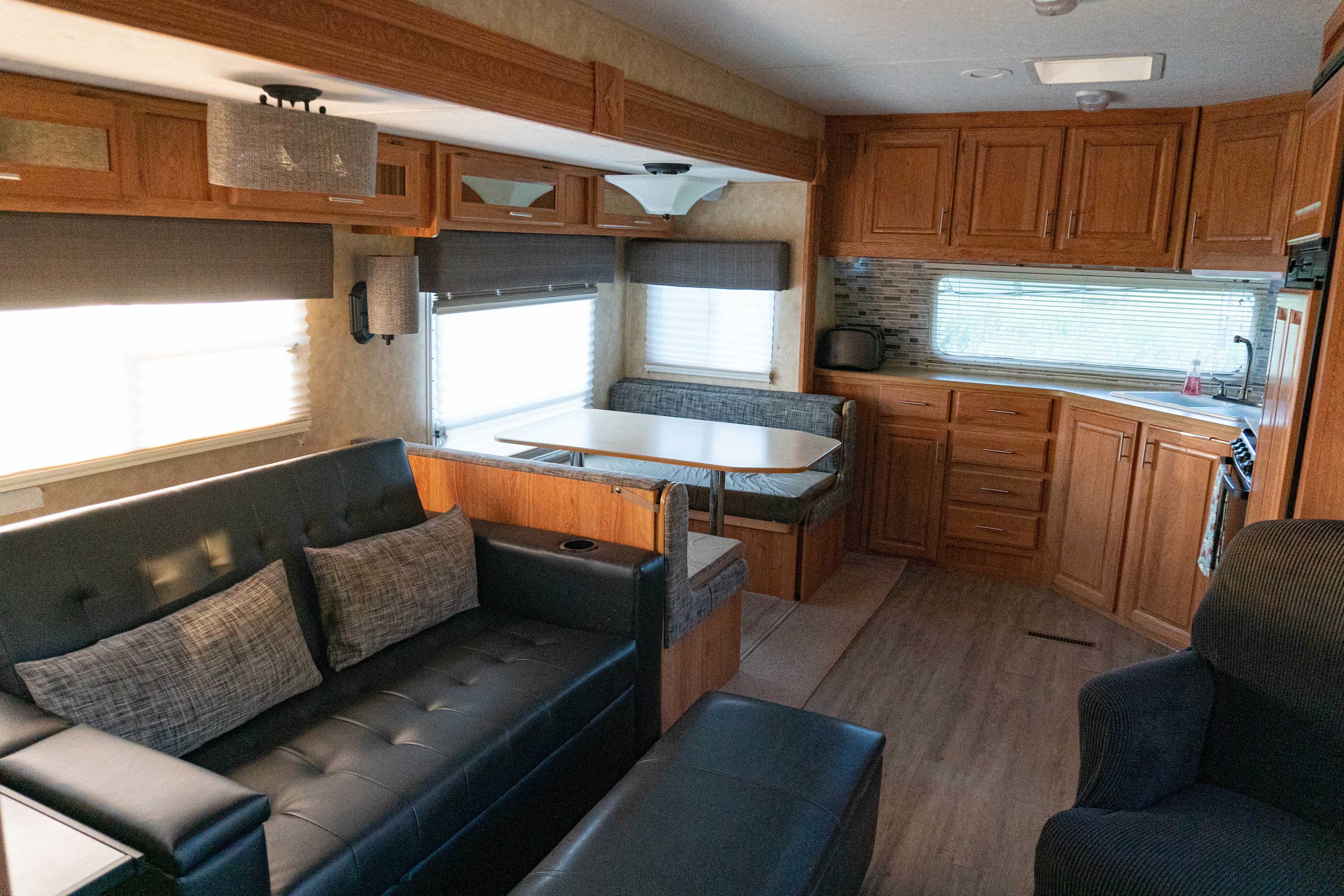 ~toaster, microwave, bbq with side burner (stove in trailer not operational), fridge, freezer, Keurig coffee maker (pods not included)