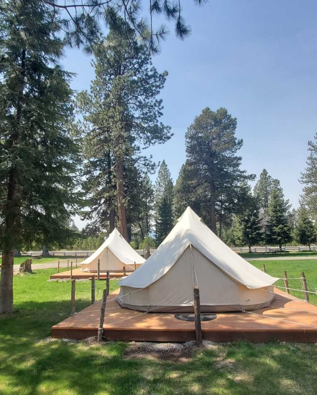 Perfect low-key campground with RV, tent, cabin, and glamping options. Located on one of the many small rivers that run through this part of the Klamath basin, they offer free use of their personal canoes. The well maintained lawns, aspen trees, and wild flowers add to the charm. They also have a small store that offers all the immediate necessities, such as beer, eggs, cheese, coffee, snacks, toiletres, etc. Along with a great selection of hats and momentoes for purchase. Over-all, a great place to avoid the busy crowds of the National Park without being too far away... highly recommend...