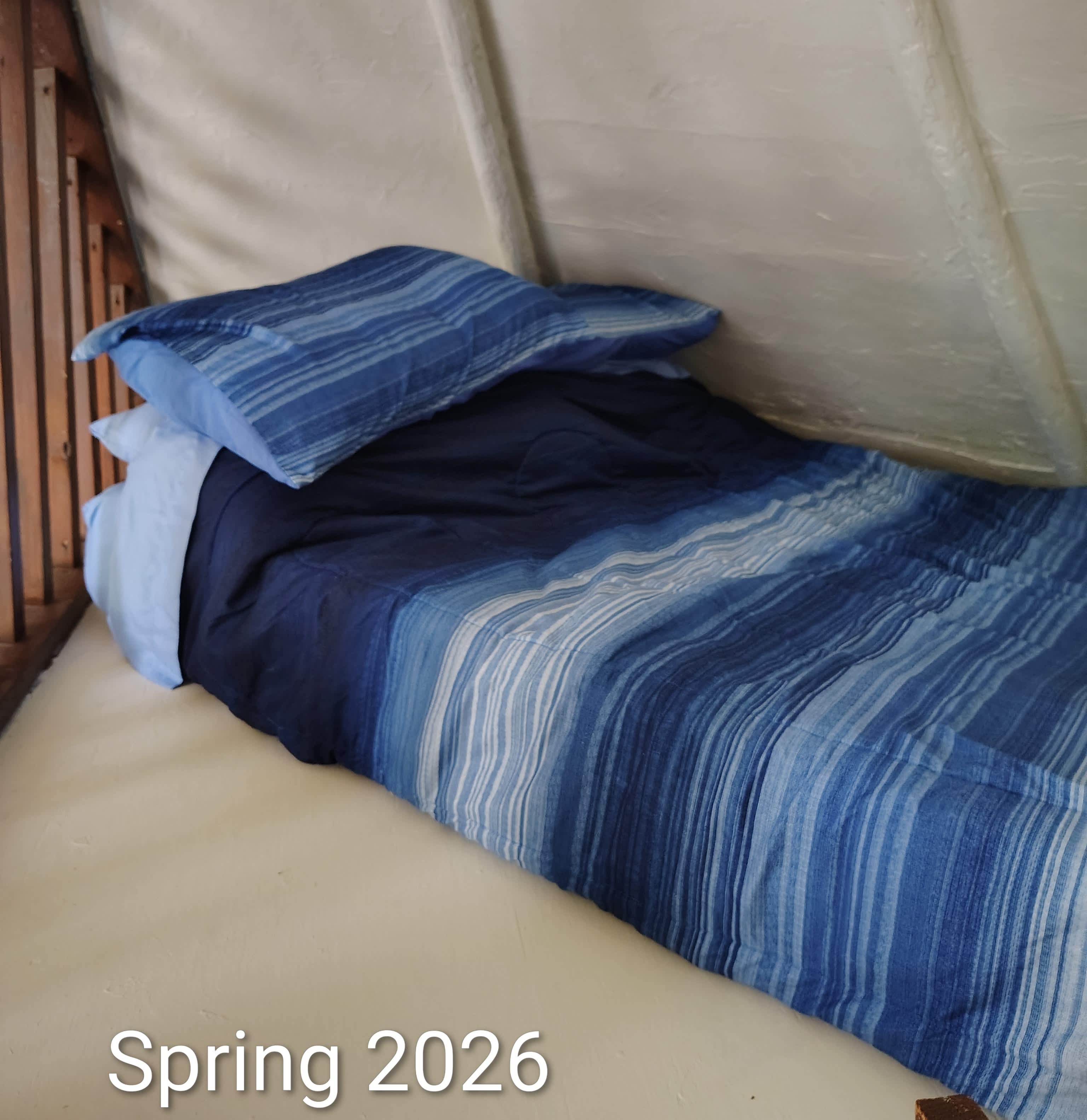 This rustic octagonal cabin nestled in a forest overlooks Rock Creek. Cross the bridge and walk to East Fork Williams Creek. Cabin has a loft containing a comfy 8" thick memory foam standard (full) mattress with fresh bed linens. Below there is a sitting area with wood stove and two small padded chairs. Kitchenette has coffee pot, toaster, fridge, sink, and 2-burner propane stove. Coffee and tea provided. Bathroom has shower, and sink, with towels and toiletries provided. A compost toilet is 100 yards away.. Hot tub in garden also overlooks Rock Creek and a picnic table holds clean towels.
