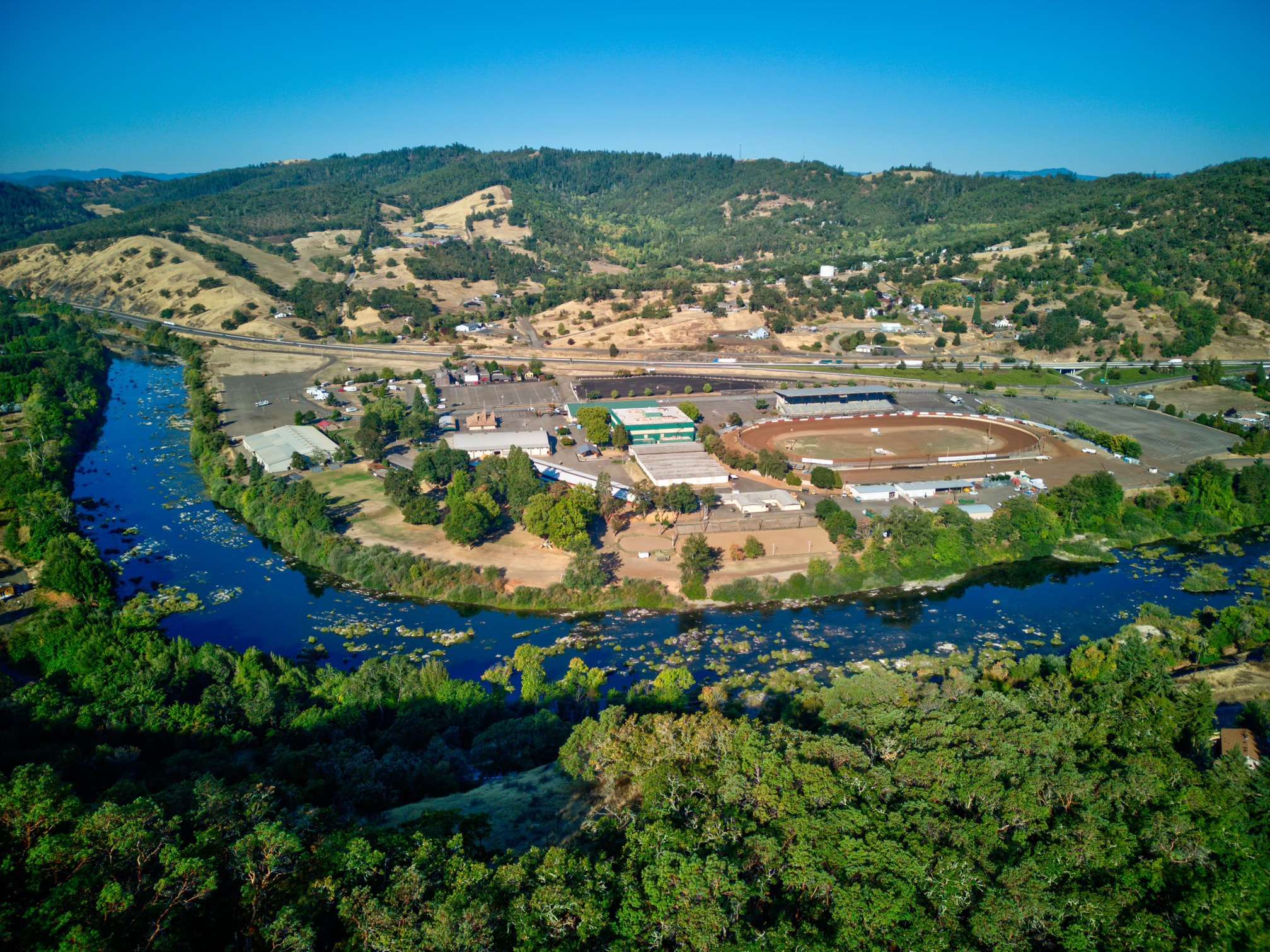 The Douglas County Fairgrounds RV Park in Roseburg, Oregon, stands out as a unique overnight destination due to its prime location just off I-5 and its close proximity to various events and attractions. With 50 level sites available, this park caters to both travelers and event participants, making it a convenient stop for anyone on the go. The park offers 7 full-hookup sites, including sewer connections, alongside 43 sites equipped with water and 30 amp electric service, accommodating RVs of all sizes, including big rigs. Campers can enjoy clean restrooms and hot showers located on the fairgrounds, along with an on-site self-serve dump station for hassle-free waste disposal. As part of the Douglas County Fairgrounds Complex, this RV park is ideally situated for those attending fairs, expos, or events at the Speedway, all within walking distance. Even if you’re just passing through, the park’s easy access to the freeway and affordable nightly rates of approximately $30-$35 make it a favored choice for quick stays. Pets are welcome, with leash rules in effect, and there is plenty of space for walking dogs or stretching your legs around the fairgrounds. The surrounding area enhances your stay with a large playground, picnic areas, and nearby shopping and dining