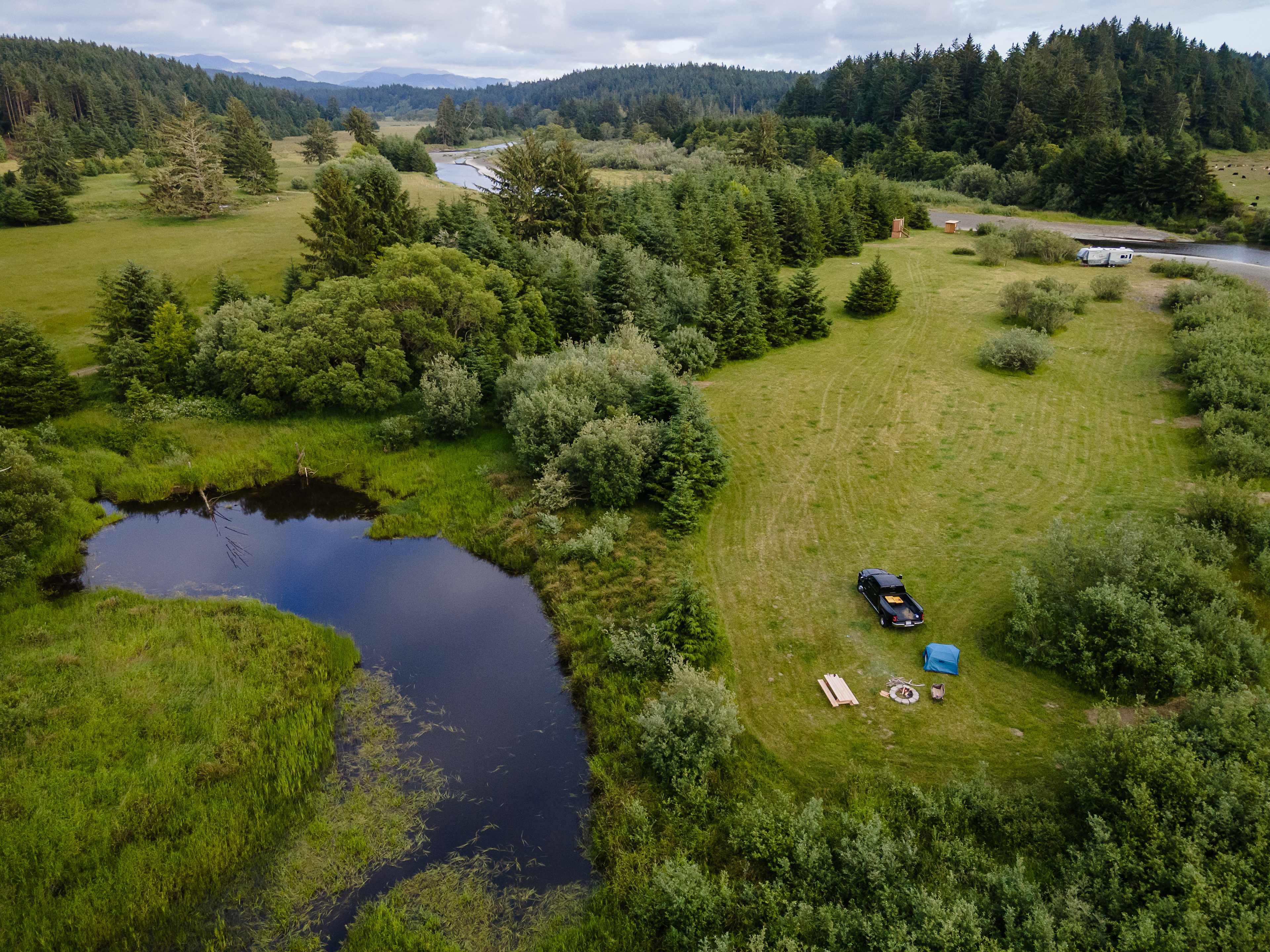 Grassy mowed area along the Sixes River on our cattle ranch and cranberry farm. We provide an outdoor shower and composting toilet shared by the 5 camp sites. The shower water is filtered water from a shallow well, but bring water to drink. This campsite lies about 1 mile from the pacific ocean at about 15 feet elevation so it will be cooler than inland camp sites. I believe we are the closest camping to the south side of the Blacklock Hiking Trails. Also next to the Cape Blanco State Airport. (call if you want to fly in and get transport to and from the campsite). Access Road is a single lane in and out (gravel, dirt, and grass). Any towed trailers need to be pulled by a 4-wheel drive or all-wheel drive vehicle to climb back out (in and out procedures for trailers will be provided) Bring a fishing pole or a kayak. Sea-run trout are in the river during the summer (no motorized vehicles allowed in the Sixes River by law. No motorized vehicles in campsite besides automobiles by rule.) - Please be accurate with the number of guests in your party. Please note about lack of signage: The "walters landing" and "92220" on airport road are the only markings to indicate our entrance. We don't want to put any "campground" signs to avoid curious trespassers into the property (we only want invited guests). Campsite Rules: 1. Enjoy. 2. No motorized vehicles besides your auto. 3. Make sure your fun doesn't detract from the fun had by other campers. 4. No illegal activity. 5. Clean up after your pet in the camp and river bank area or anywhere people will be walking or playing. 6. No unfriendly pets, even if they are on a leash. Must be safe with other children and pets and livestock.