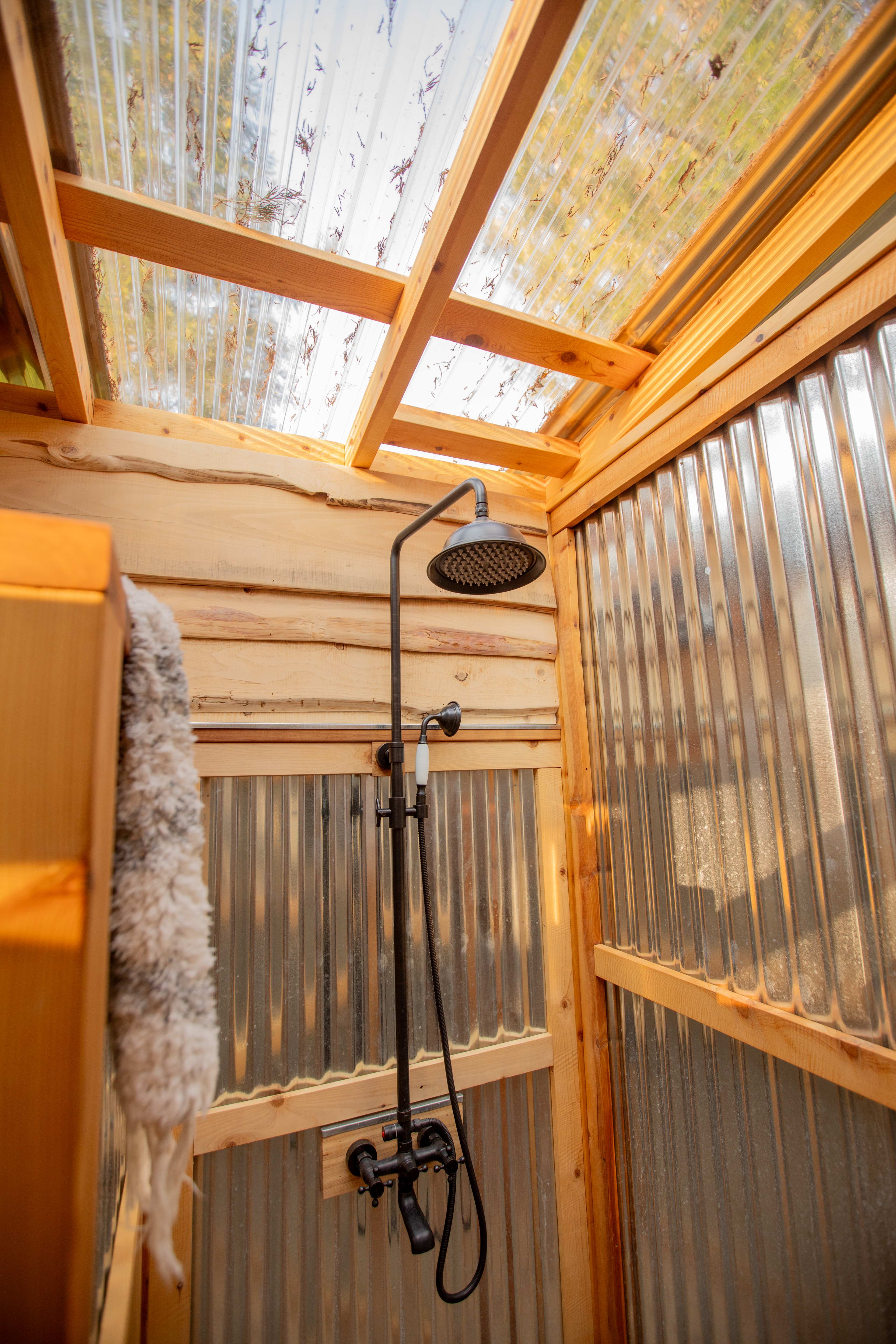 Within eyesight of the cabin is the bathroom area, comprised of a compost toilet, a sink, and a shower. The space was clean and well maintained.
