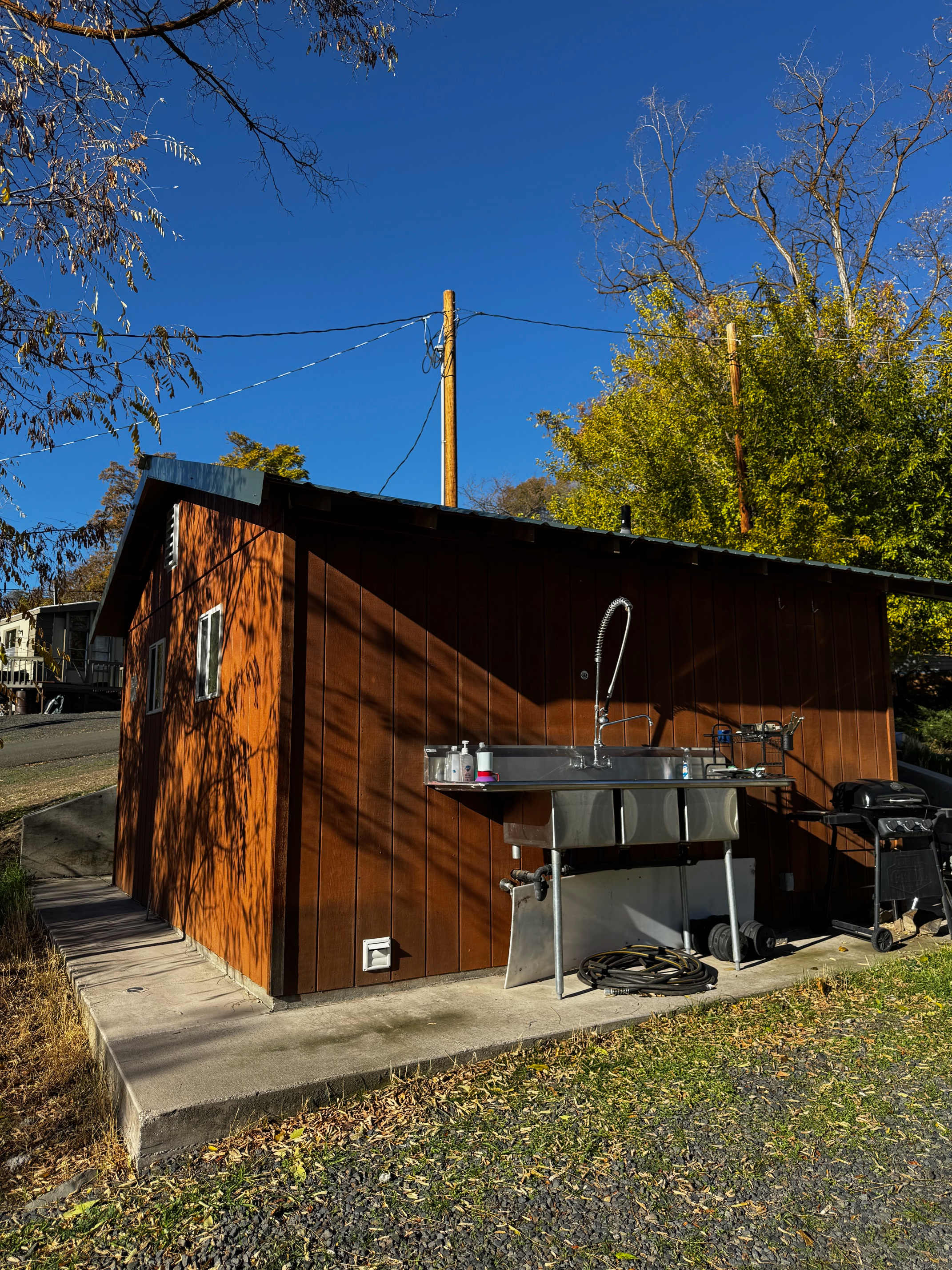 Shaded gravel camping spot with full RV hookups and laundry facilities in Maupin, Oregon. Walkable to the Deschutes River, Main Street in downtown Maupin, and everything this fun, quirky town has to offer. The spot is suitable for either a tent or an RV, up to 40 feet.Site 1 is shaded, flat and graveled. Perched above the main road through Maupin, OR . This spot is about 40 x 20 feet of space and parking for up to one vehicle. There may be other campers nearby on the property. It's a small, but centrally located spot to camp in Maupin. There are 5 sites total on the property.