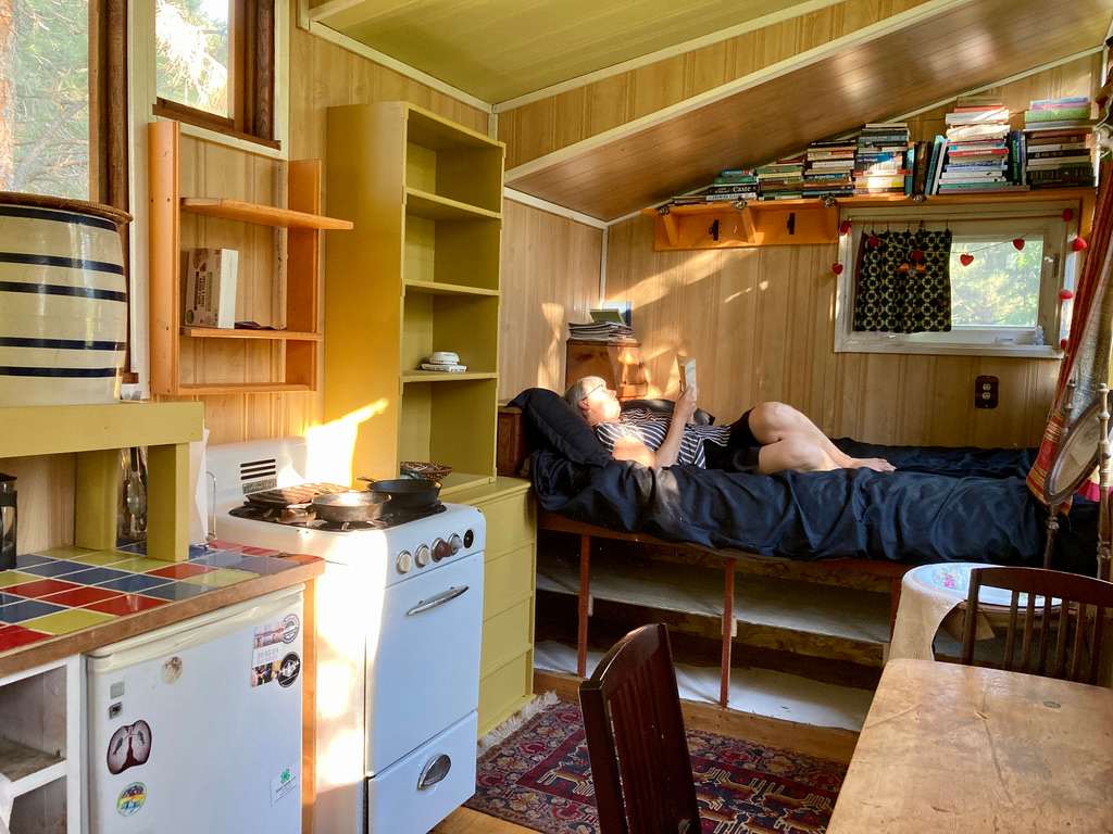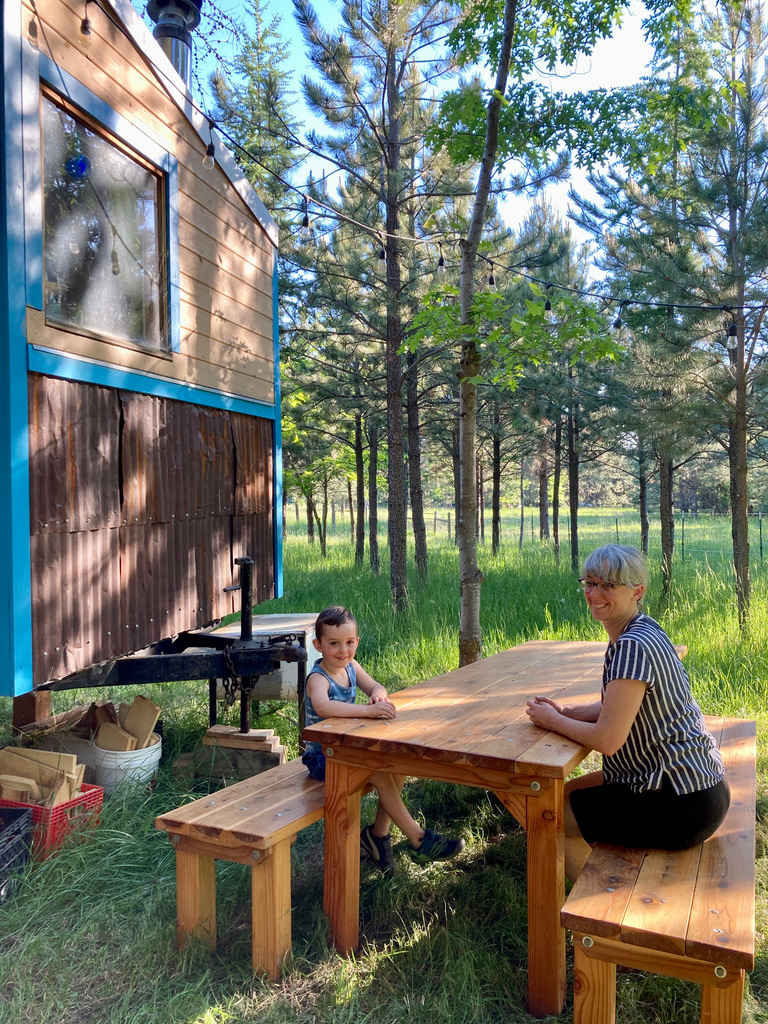 staying at the tiny farmhouse in the woods, hosted by Nella Mae and her family, was one of my favorite experiences of this year. It was such a beautiful, thoughtful, relaxing little home, surrounded by nature. Twinkling lights over a picnic table, a comfortable outdoor seat facing a beautiful sunset, a bike propped up to roam around Cove, being greeted so kindly by Nella Mae with a cold refreshment, and so many other details, made this experience, and tiny home a place I hope to visit as often as I can.