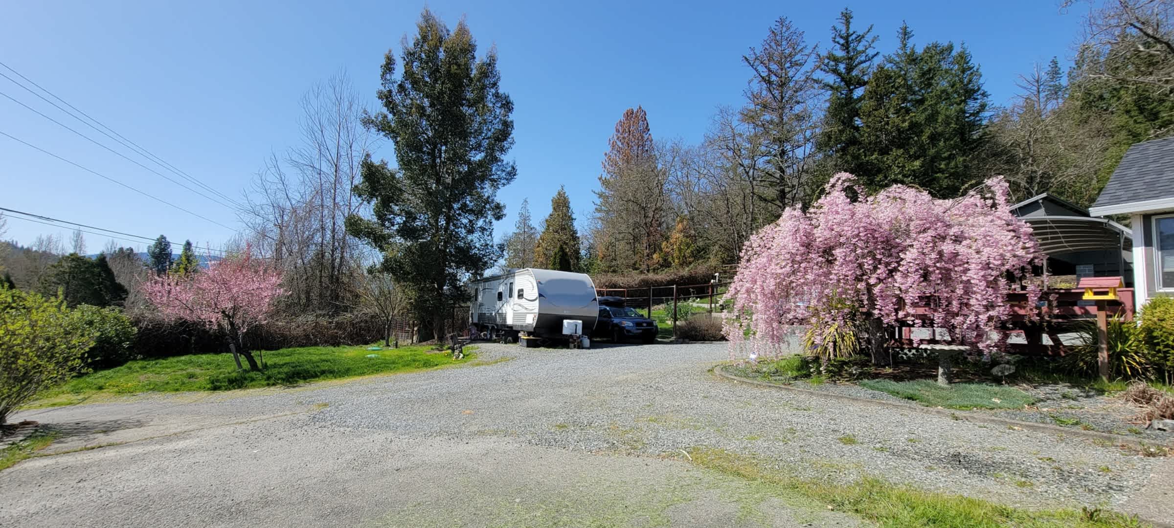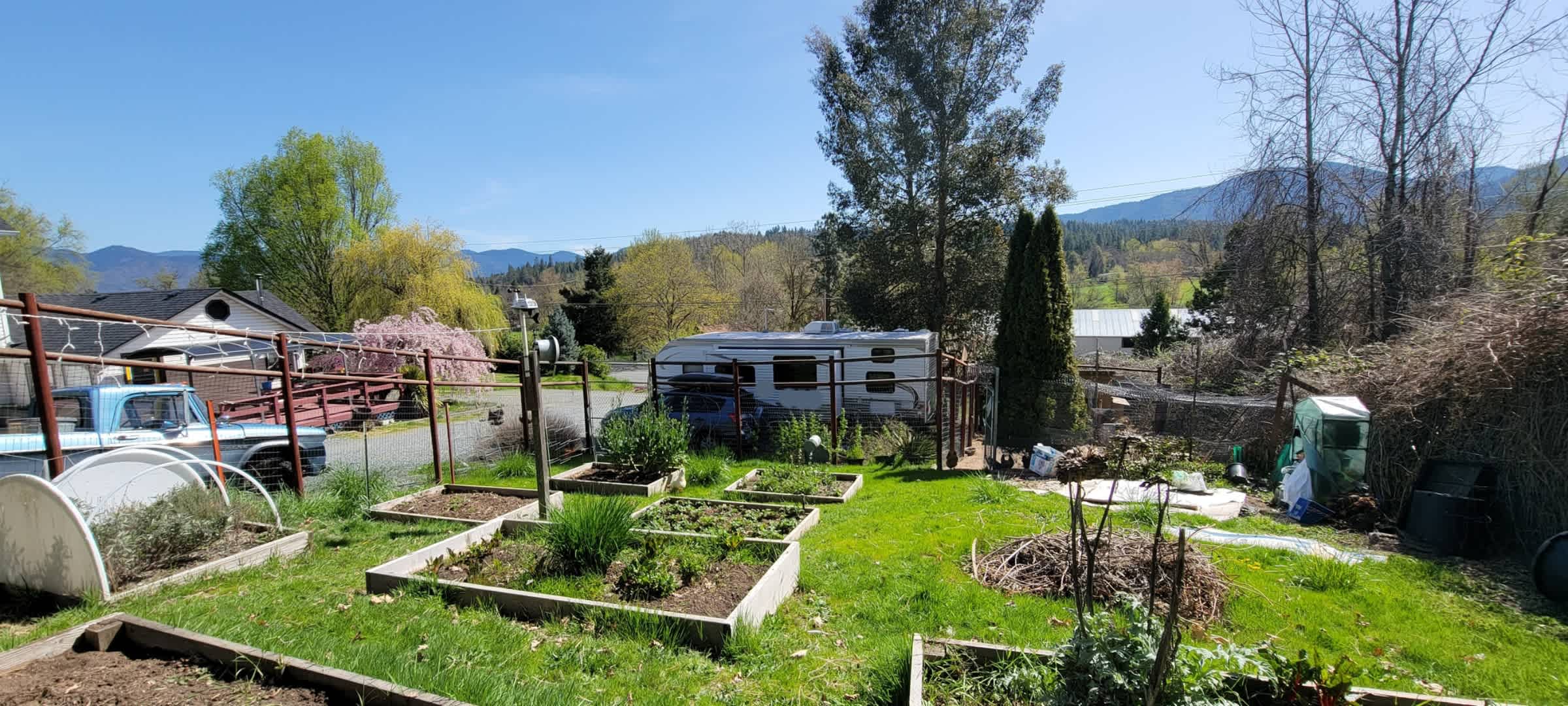 Original 1920s hilled acreage homestead with mature fruit trees, garden area, sloped pasture, seasonal pond, and friendly chicken neighbors. RV driveway parking spot is close to main road and the land owner's family home. Located mere minutes from the city of Grants Pass, with convenient access to amenities, shops, grocery stores, and outdoor recreational activities; yet far enough out of town for all those lovely rural nature vibes. Applegate and Rogue River fishing, paddling, rafting, hiking, wine tasting, etc within a short commute. Covered car/truck parking negotiable.