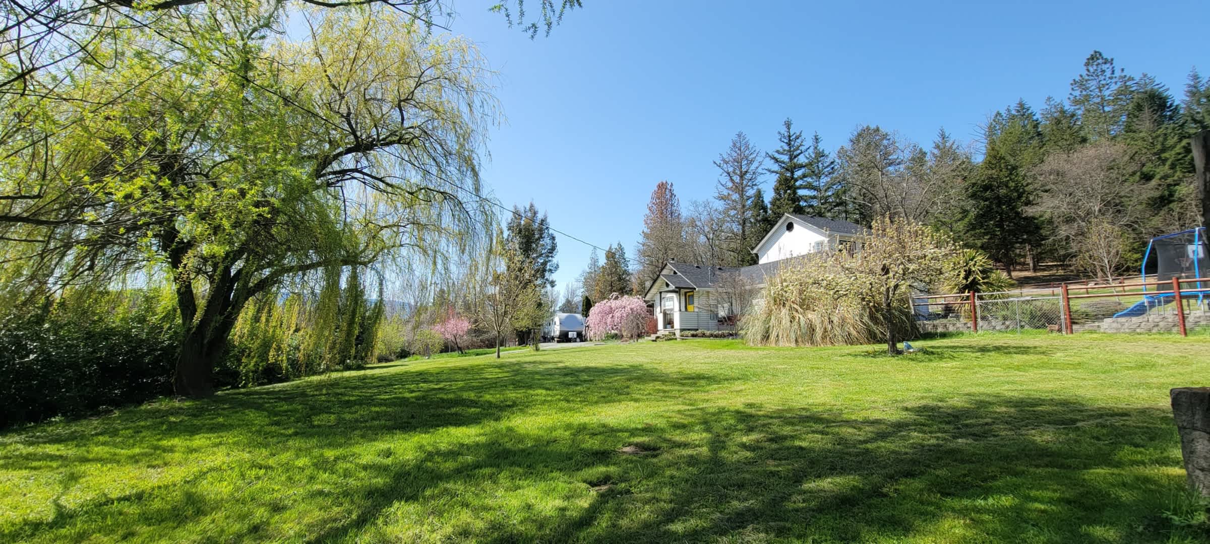 1927 farm house acreage with original milking house across the street. At that time, there was only a dirt road leading to the property. 5 acres remains, but original property lines were considerable and reached all the way to Williams highway. House was remodeled and a new septic was installed in 2019. Original 1920s hilled acreage homestead with mature fruit trees, garden area, sloped pasture, seasonal pond, and friendly chicken neighbors. RV driveway parking spot is close to main road and the land owner's family home. Dispersed tent camping available in the pasture (New composting toilet added 2023!) Located mere minutes from the city of Grants Pass, with convenient access to amenities, shops, grocery stores, and outdoor recreational activities; yet far enough out of town for all those lovely rural nature vibes. Applegate and Rogue River fishing, paddling, rafting, hiking, wine tasting, etc within a short commute. Covered car/truck parking negotiable. Guests love staying here: "Beautiful views from this location. Miranda is a perfect host. She met us upon arrival & showed us the ropes. She left us fresh eggs from her flock of adorable chickens & even shared her garden with us. Grants Pass is a beautiful little town located close to the Rogue River. We were there in the fall & I was in awe of the beautiful trees every time we ventured out."