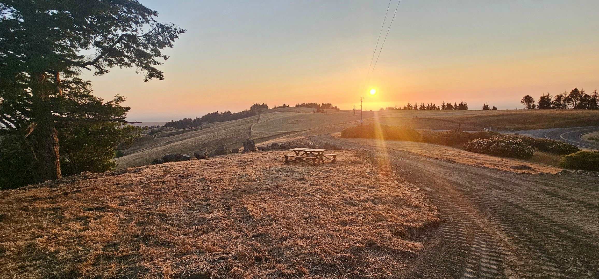Perched atop the serene Langlois Mountain, our site offers a unique blend of seclusion and convenience on a working cattle ranch. From your elevated vantage point, you’ll be treated to an expansive vista of the majestic Pacific Ocean meeting the horizon, complemented by the gentle rolling hills and pasture land stretching out in every direction. Enjoy unparalleled sunsets, star filled nights, and even catch a glimpse of the Cape Blanco lighthouse. For those looking to storm watch in the winter months, our location can't be beat! Seasonally guests will delight in the charming sight of cows grazing peacefully in the surrounding pastures, adding a touch of rustic authenticity to your stay. Our resident Kune Kune pigs, Jo Jo and Big Mama, may stop by to say hello and clean up any scraps guests are willing to share. This site boasts easy access off the main road and a large turnaround, making your arrival smooth and hassle-free. Whether you're seeking a tranquil retreat or an adventure-filled getaway close to beaches, Bandon Dunes Golf Resort, and fine dining, the Langlois Mountain site provides the perfect backdrop for relaxation and exploration. Wake up to the soothing sounds of nature, the distant mooing of cattle, and the awe-inspiring sight of the ocean’s shimmering expanse, all from the comfort of your RV. Your mountain-top escape awaits! *Disclaimer - This is a working cattle ranch and therefore animal behavior & location can be unpredictable. We do not guarantee views of cows as grazing lands vary by season. Additionally, livestock can be nearer your site and potentially come close to you. Trust us, they are more scared of you then you are of them.Pacific Pastures is a gently sloping site with several parking options available easily accommodating a wide range of vehicle sizes. The property entrance is right off Langlois Mountain road with a gravel pathway leading to the site. Guests will enjoy .5 acres of grassy area with rock outcroppings, allowing for plenty of room to spread out. Please note that this is located off the main property entrance, therefore property owners will pass by occasionally. Picnic table and hammock are available on site. Guests are expected to be self contained, take waste with them and leave no trace. Keep in mind this is a working cattle ranch and therefore livestock will be occasionally present in varying areas of the property.