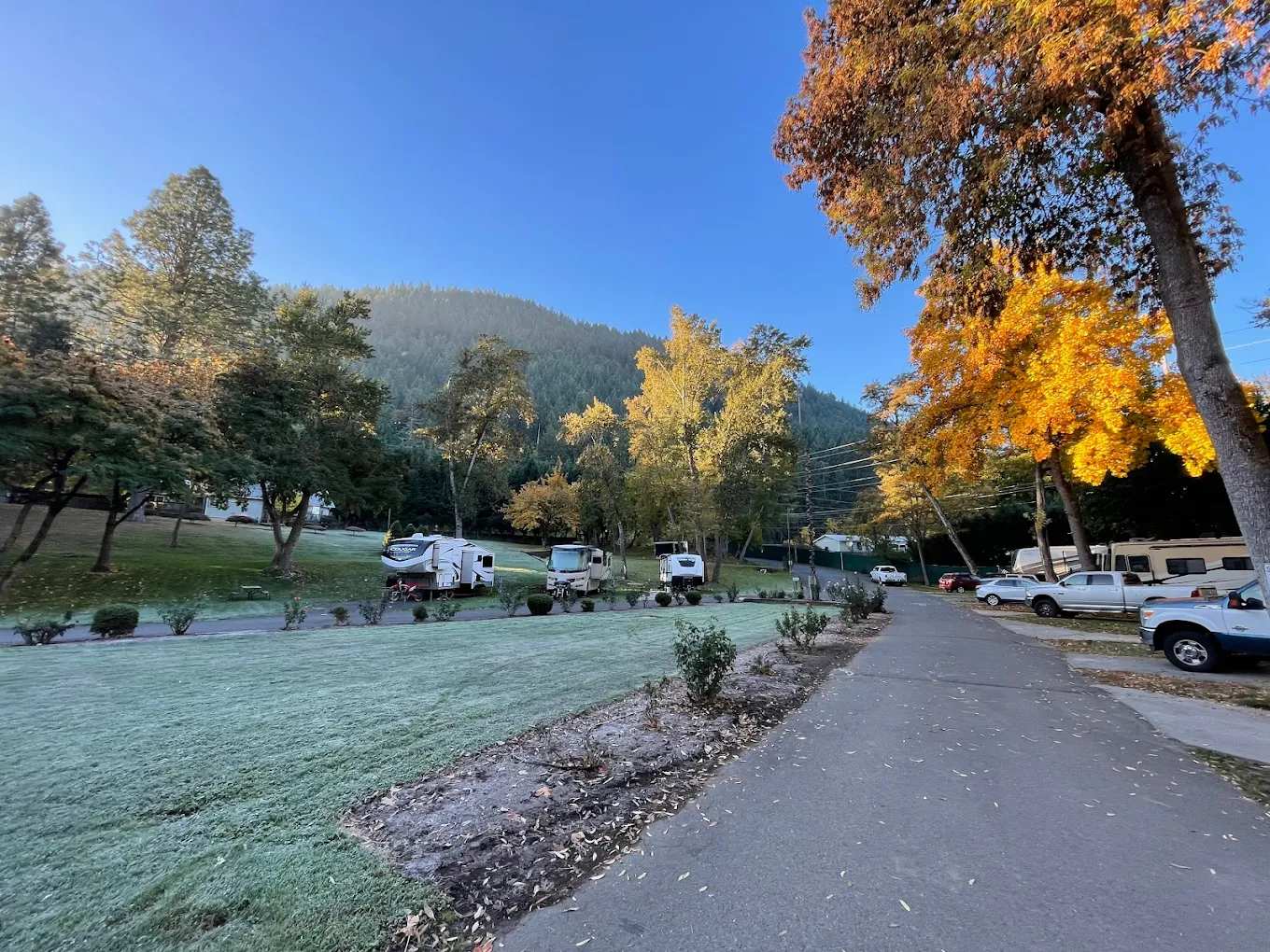 Discover a unique camping experience at our scenic campground, where you can enjoy the beauty of nature along 700 feet of pristine river frontage. Perfectly designed for big rigs, we offer 47 full hook-up paved RV sites, each equipped with 30 and 50 amp service to accommodate all your power needs. Stay connected with complimentary Wi-Fi and unwind with included cable TV at your site. Our facilities feature spotless bath and shower rooms, ensuring your comfort during your stay. Enjoy river fishing and swimming right at your doorstep, and take advantage of picnic tables available at each site for delightful outdoor meals. For your convenience, we also provide a laundry room and on-site information about river rafting adventures. Located at 2956 Rogue River Hwy, Grants Pass, Oregon, 97527, our campground is the perfect base for exploring nearby attractions, including stunning natural features, outdoor activities, and local dining and shopping options. Come experience the tranquility and excitement that our campground has to offer!