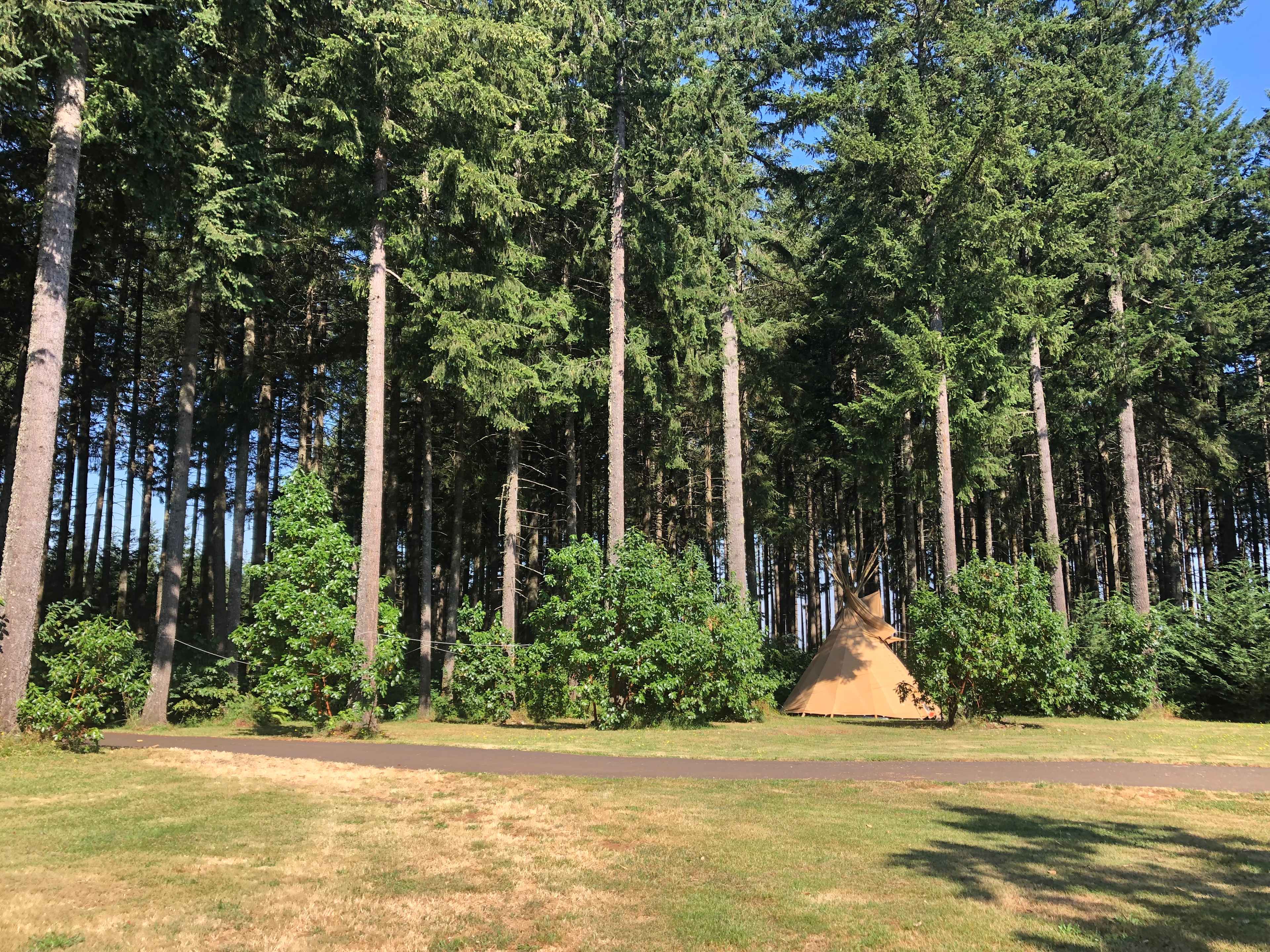 A quiet place where you only hear the birds. We have raised our 20' teepee and are opening it up for people to enjoy. Silver Falls Park is 8 miles away, with other places to go in every direction, depending how far of a drive you're in for. Drive-up ready. There is a queen size bed inside, so it's more on the glamping side. A fire pit with wood is set up for a relaxing vibe and is there for cooking if you don't have a camping stove. There are no pans supplied right now.
