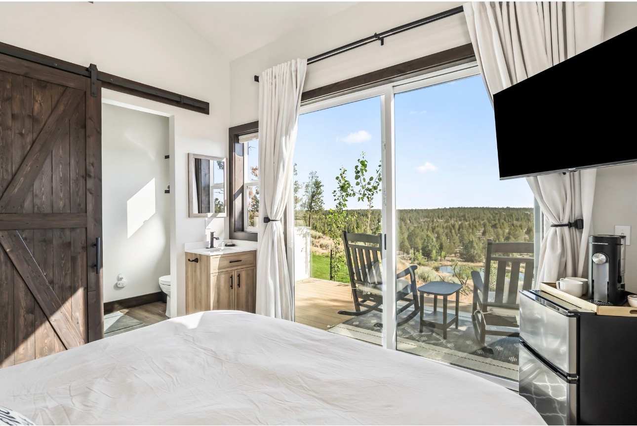 Our cabin is located on top of the canyon with eastern views of treetops and pond below. Views include everything from Black Butte to the Ochocos. There is a little creek that runs right next to the cabin so you can listen to the sound of water while you relax. Cabin has king sized bed, mini fridge, coffee maker, shower and toilet. Come relax!!