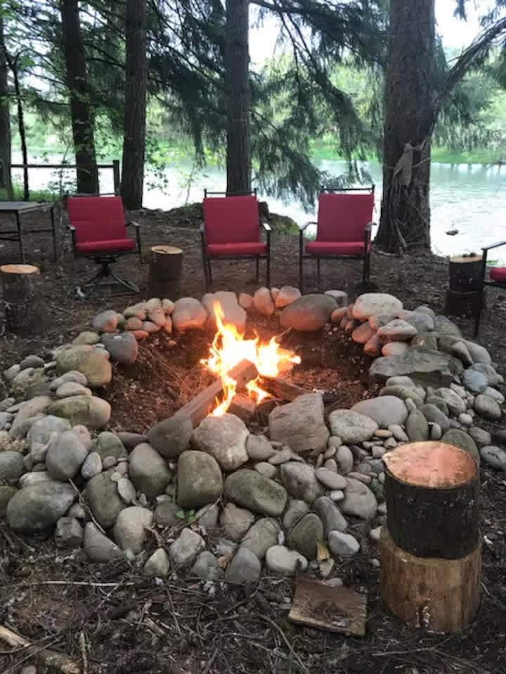 Our 5.6 acre hobby farm is located on the bank of the Santiam River with 200 feet of riverfront. It is located between the towns of Lebanon and Sweet Home off Hwy 20. It's fun to drop into the river 3 miles upriver near Sweet Home and kayak right up to our beach! Take in a stunning river-view sunrise from the group fire pit area, located about a 2 minute walk from the RV camp site. Canada geese, ducks, river otters, mink, deer, bald eagles and osprey frequent this stretch of the river. Unwind with a mindful walk through our stone labyrinth. Or hang a hammock by the river and nap to the sound of rushing water. We are a beginning hobby farm, currently home to pasture raised chickens and developing gardens. Seasonal produce and pasture raised eggs may be available for purchase during your stay.