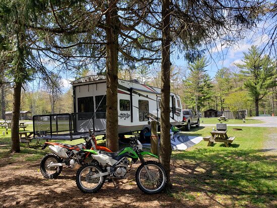 Located in the breathtaking Spring Mills Pennsylvania, Seven Mountains offers an unforgettable experience to all visitors. Our family-friendly facility will make you feel right at home and create lasting memories. Enjoy the great outdoors with our year-round availability and amenities such as free Wi-Fi, picnic tables, and fire rings at every cabin, tent, and RV site. Our 1-2 bedroom cabins can accommodate 2-8 people, while our tent sites are available with electric upon request (extension cord not provided). The tent area is pet-friendly, and all RV sites come with water and electric. We have a dump station included in the stay, as well as a trash disposal. If needed, our dump service is available for a fee of $25. All pets are welcome on any RV site. Located near Penn State University and numerous attractions, visitors can explore the beautiful Spring Mills area and enjoy activities such as snowmobiling, Tussey Mountain, Penn's Cave & Wildlife Park, Wildfire Ranch, Rothrock State Forest, Poe Valley State Park, Penn-Roosevelt State Park, Bald Eagle State Park, and the Arboretum at Penn State.