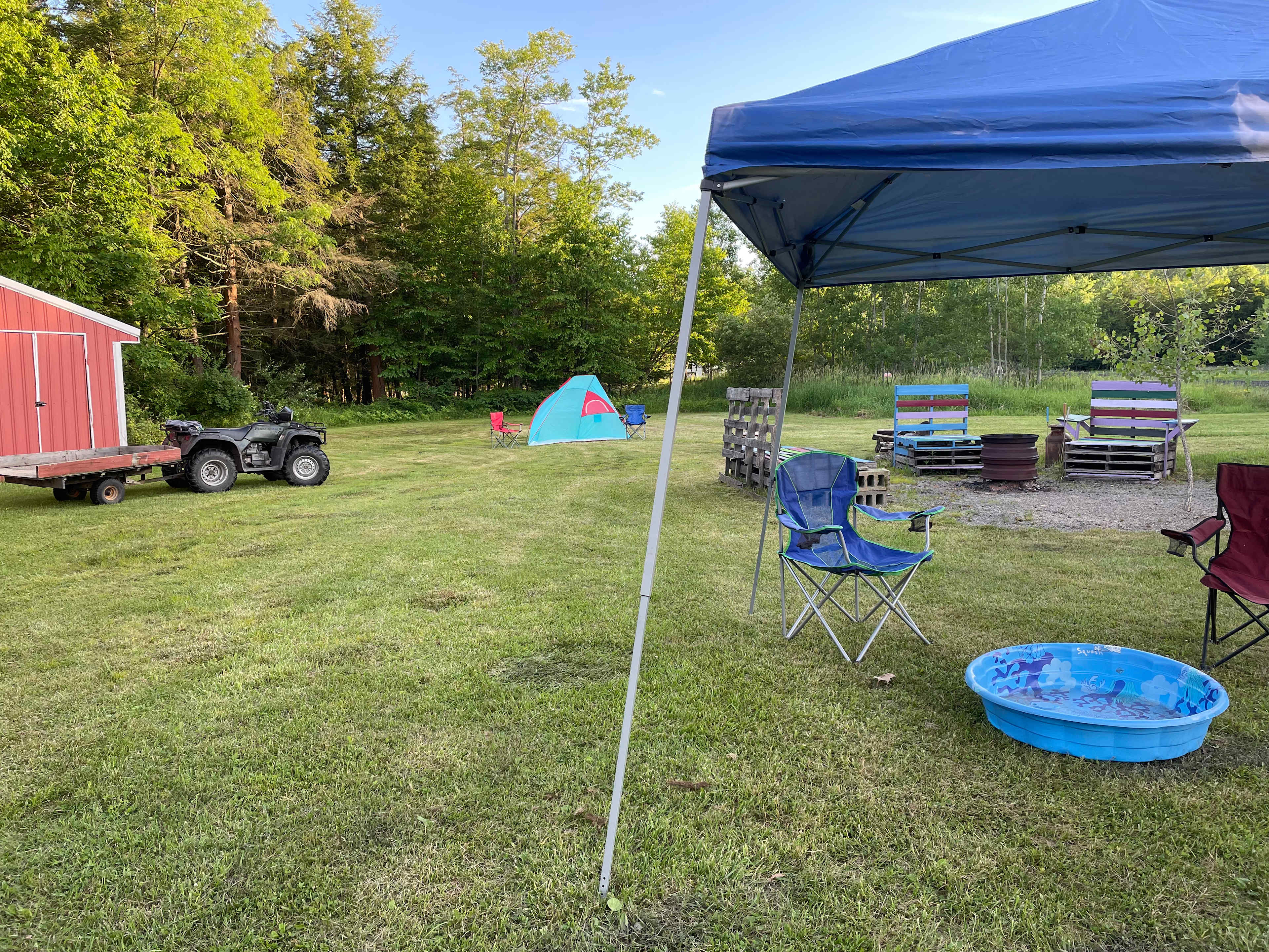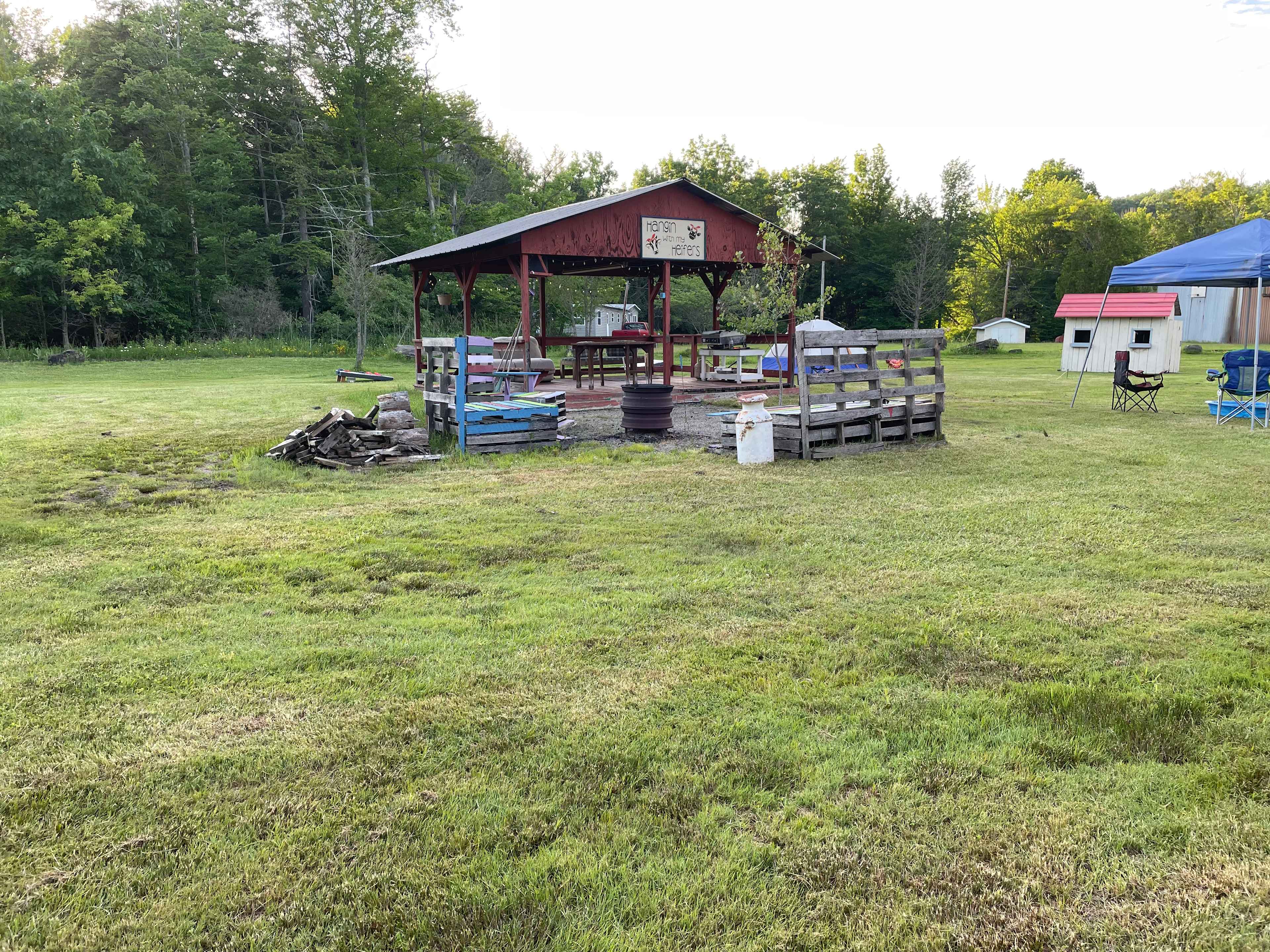 This is a private 13 acre plot of land with peaceful forest trails. A pavilion with a nice fire pit along with pallet chairs to sit and enjoy the fire. There is plenty of room to spread out with lawn games, toys for children, and nothing but nature to occupy your time. We are also located near once famous Minnequa Springs.