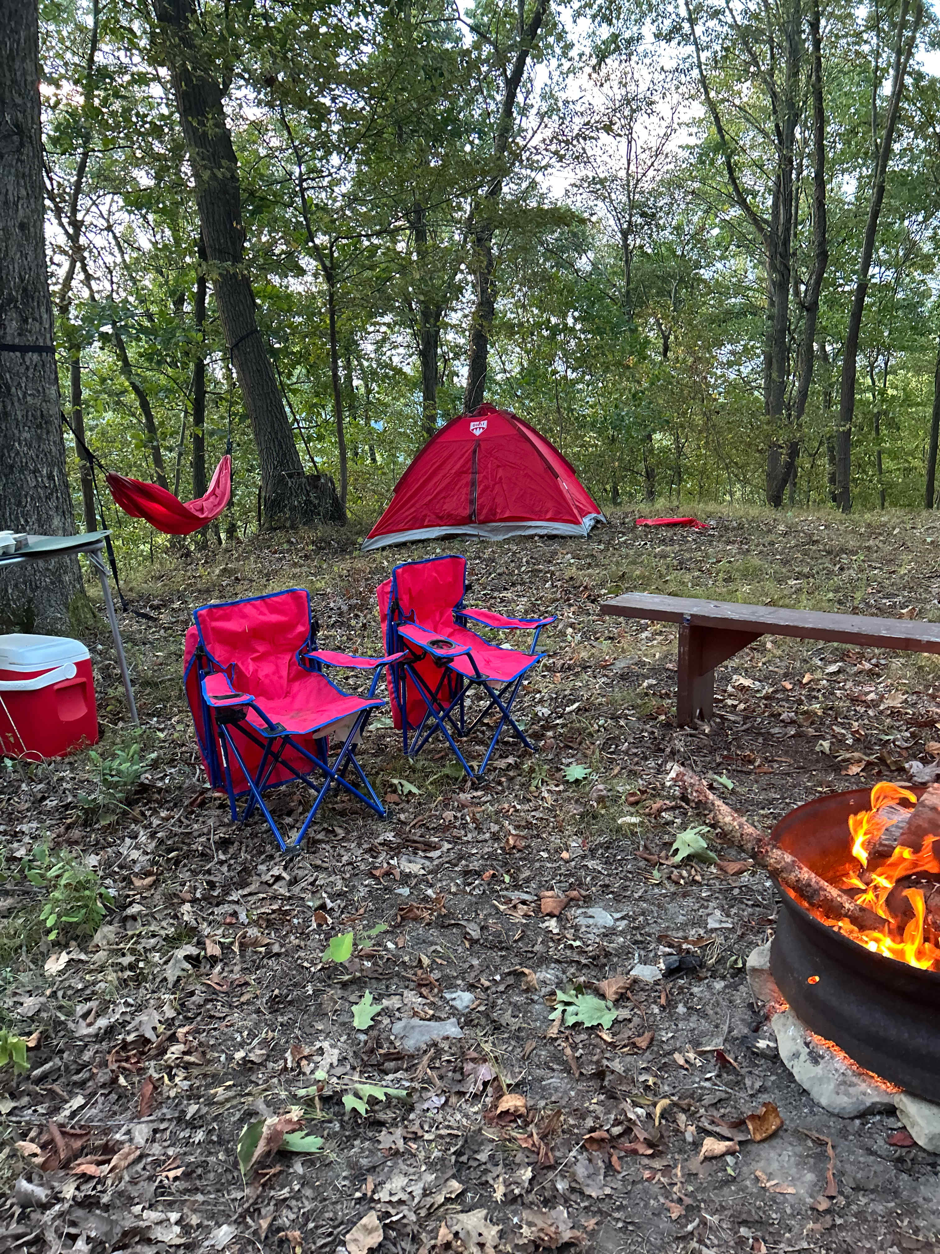 My partner and I set up our tent in front of a small pond and enjoyed the wildlife, sunset, and a nice fire as the sun went down.