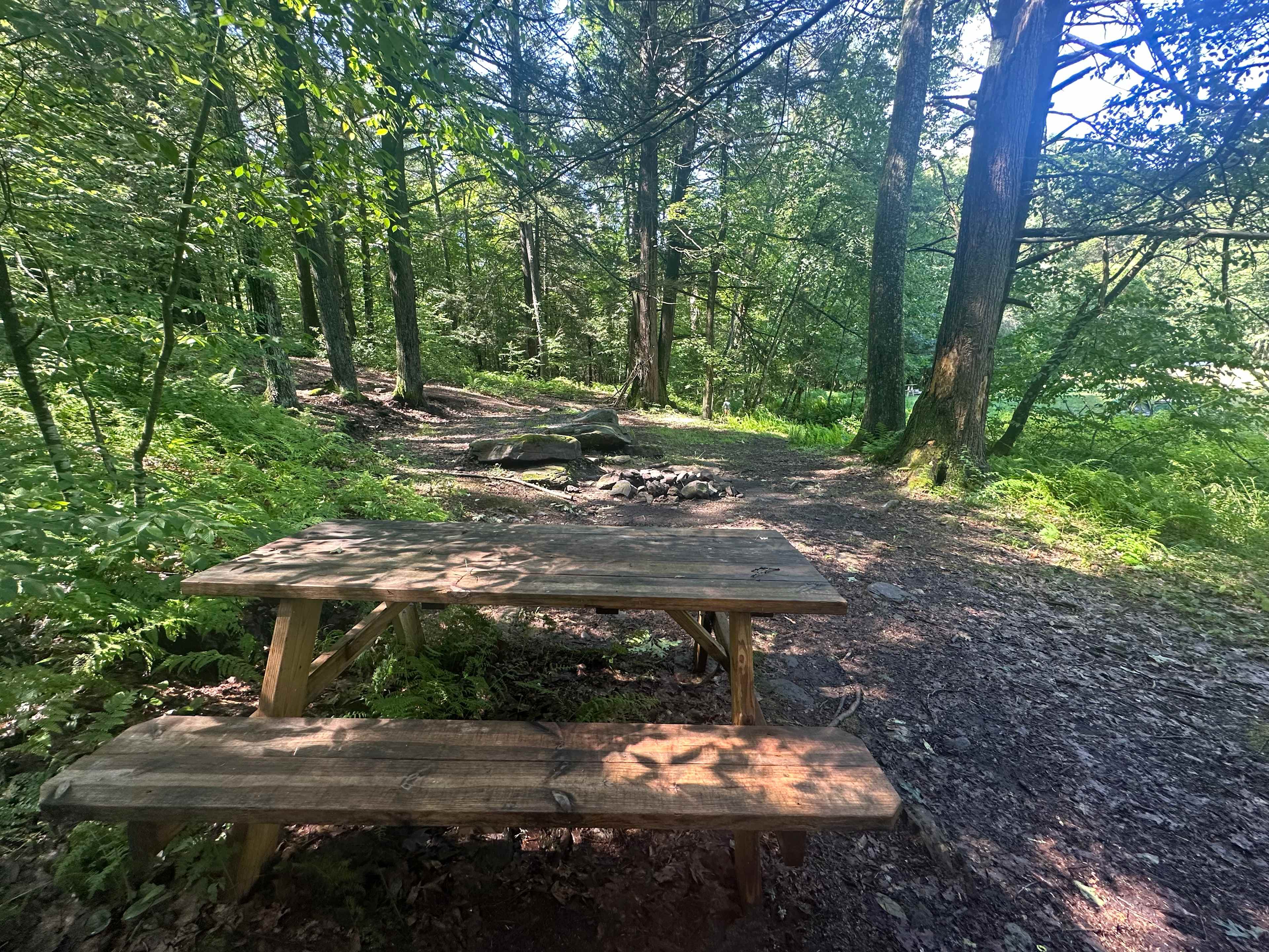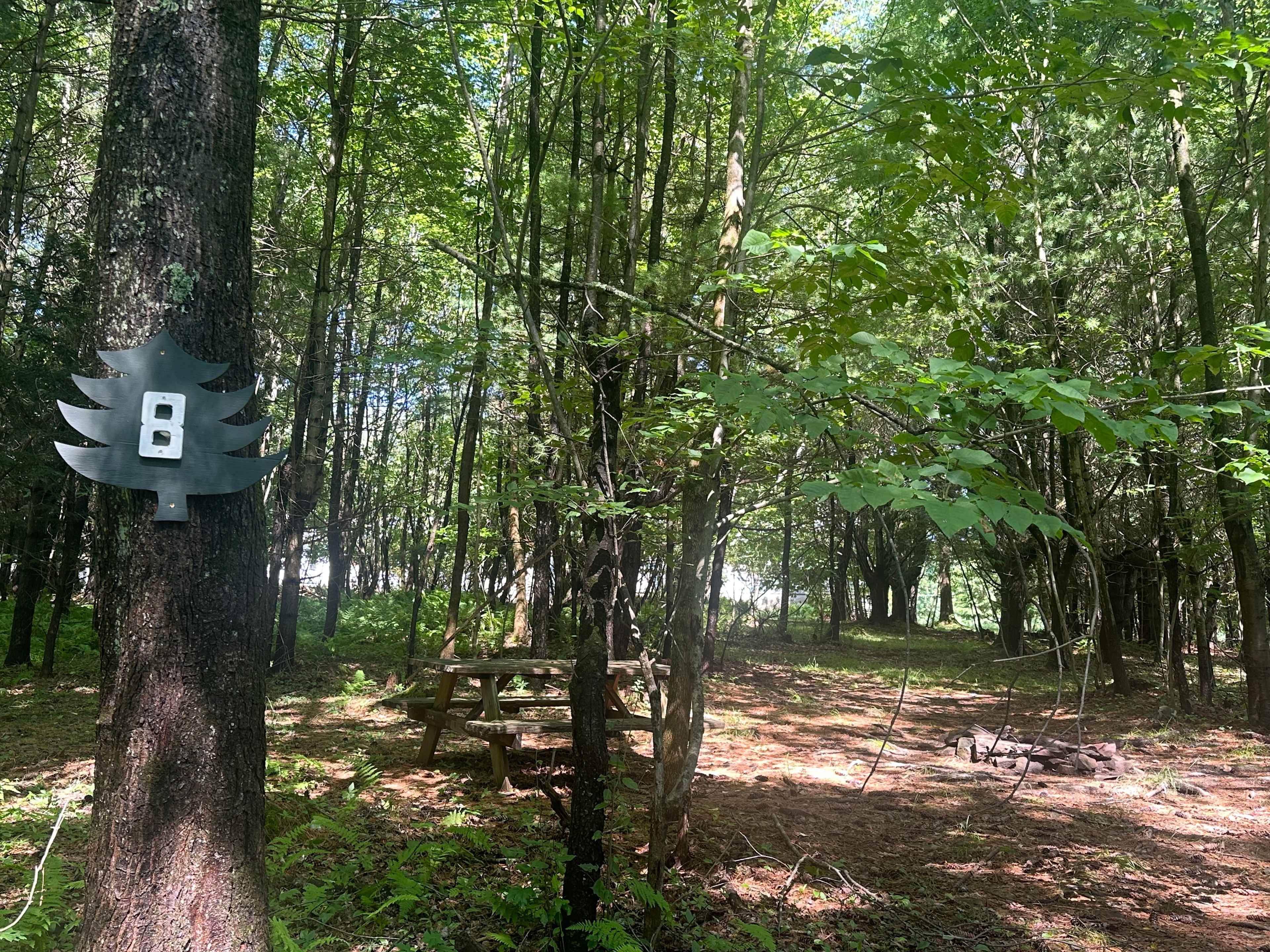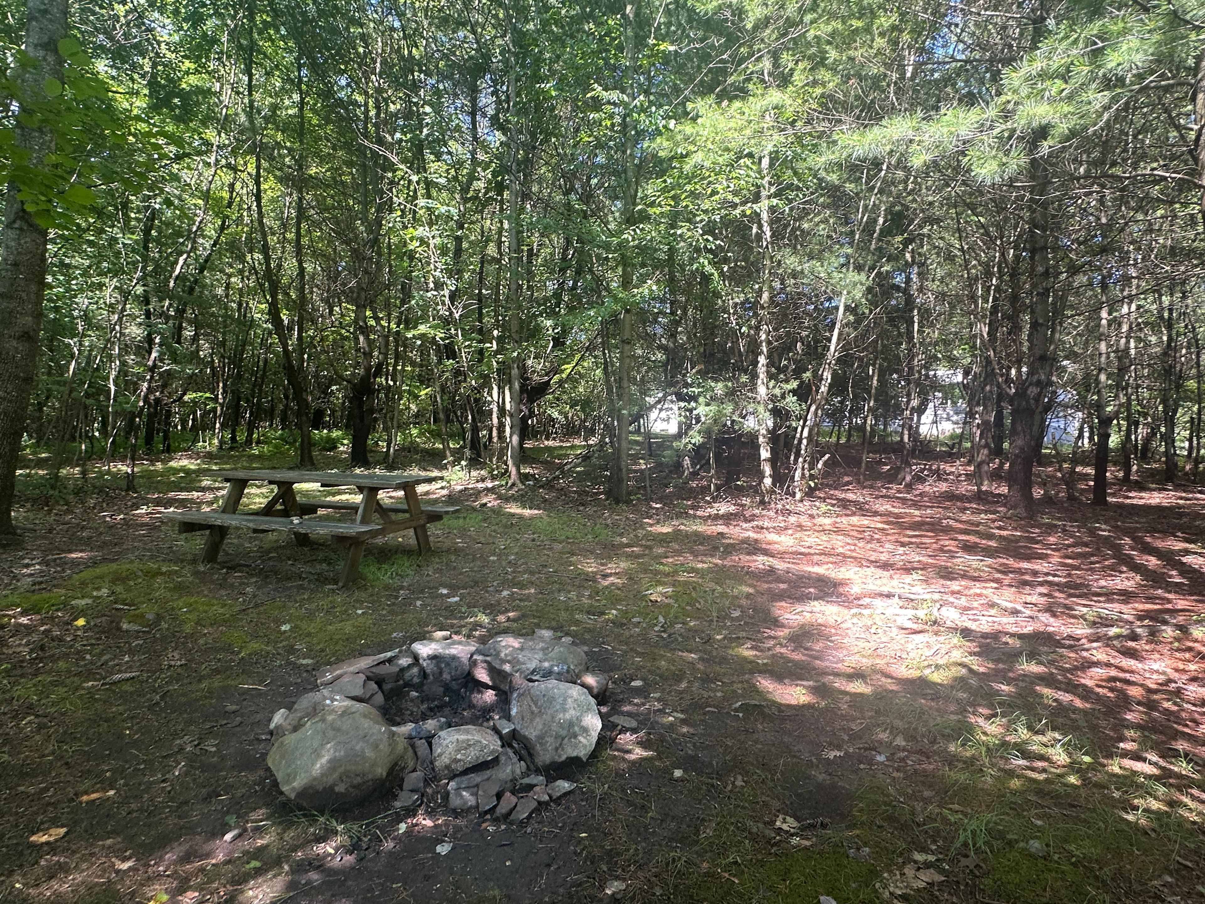 Pitch your tent in this partially covered and partially open site , with your private fire pit and private picnic table. Firewood is available for purchase and the bathhouse and office and camp store is a 2 minute walk, easy access to the road from this site and pretty level for camping in your vehicle! Hike the falls, swim in the lake, and come back here to roast your marshmallows and kick back around the fire. We have 23 sites