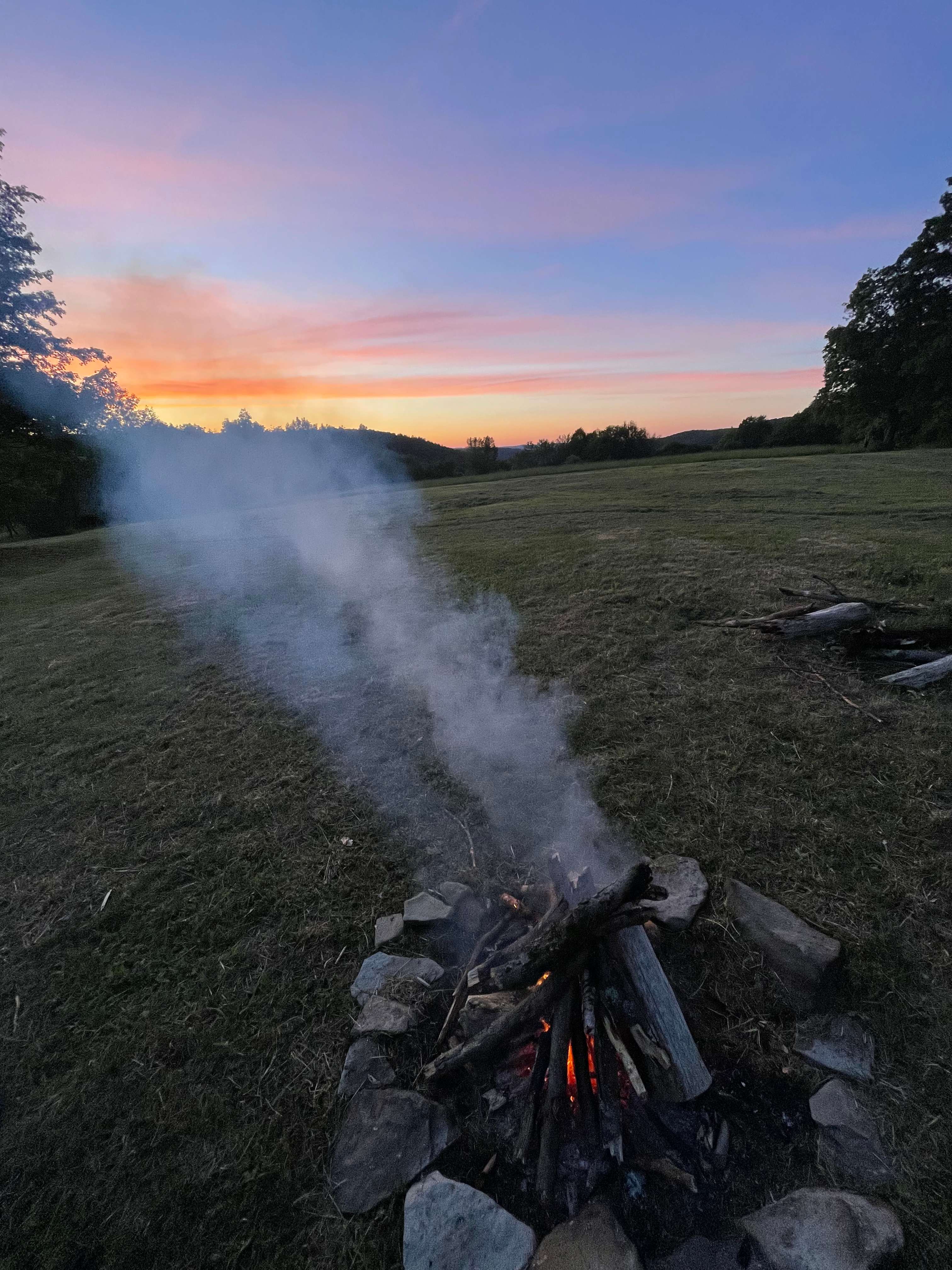 Upon a mountain top- this is a nature lover's dream. More stars than you can imagine- great mountain views (amazing sunrise and sunset!) so much nature to enjoy. Fly fishing all over in every direction. Fire pit area and plenty of space for 5 or so campers and or tents. Half open field half forest. Right up against hundreds of acres if game lands. Pond (lake) access up the road and a few minute hike down though the woods. With wonderful, quiet fishing. (Please respect the peace of the pond) further into game lands are two more ponds for even more, great fishing. Or hunting when in season. Winter hunting camping is permitted! Please message us for more details. Closest town (with grocery store, gas, ice, bait, fishing store and bars/resturaunts) is 12 minutes north (deposit) or 15 minutes east Hancock.) Cows on property next door (acres away.) We are typically on site during warmer months. We will respect your privacy (however we always welcome campers to join us for any festivities!) I will let you know upon booking if we or any of our guests plan to be onsite. Area is mostly level but there are a few small divots and holes to be aware of. Be prepared to need leveling. Completely dry camping- please bring your own water and empty your tanks OFF site. No power- but gets great solar light on the mountain if you have panels. Please check weather, it does get cold at night throughout most of the year. Please note that this is a shared campsite and you may be sharing the open field with owners or other campers. Enjoy!