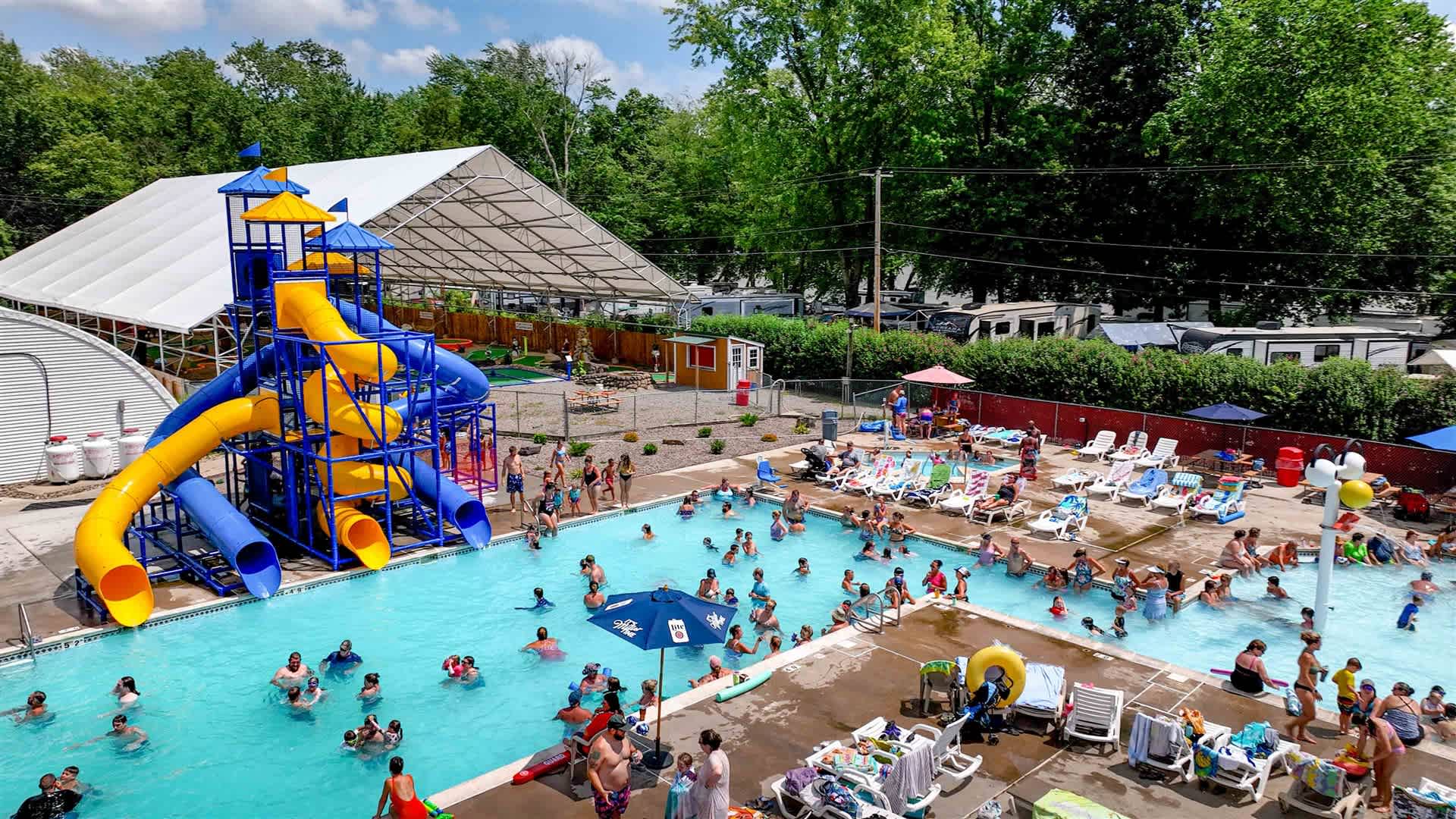 Nestled along the Susquehanna River in Northumberland, Pennsylvania lies Central Pennsylvania’s premier family campground—Splash Magic RV Resort. From our exciting water park and glow-in-the-dark mini-golf course to the premium cabins and RV camping spots, we’re committed to providing the whole family with a memorable experience that you’ll want to relive again and again. At our Splash RV Park, the fun is endless! Found on Aspen Lane just off of US-11, you won’t miss our beautiful campsite down the road from Pineknotter and Shikellamy State Park along the Susquehanna River. Our Splash RV Resort is a short drive away from the towns of Riverside, Winfield, College Park, Sunbury, and Selinsgrove.