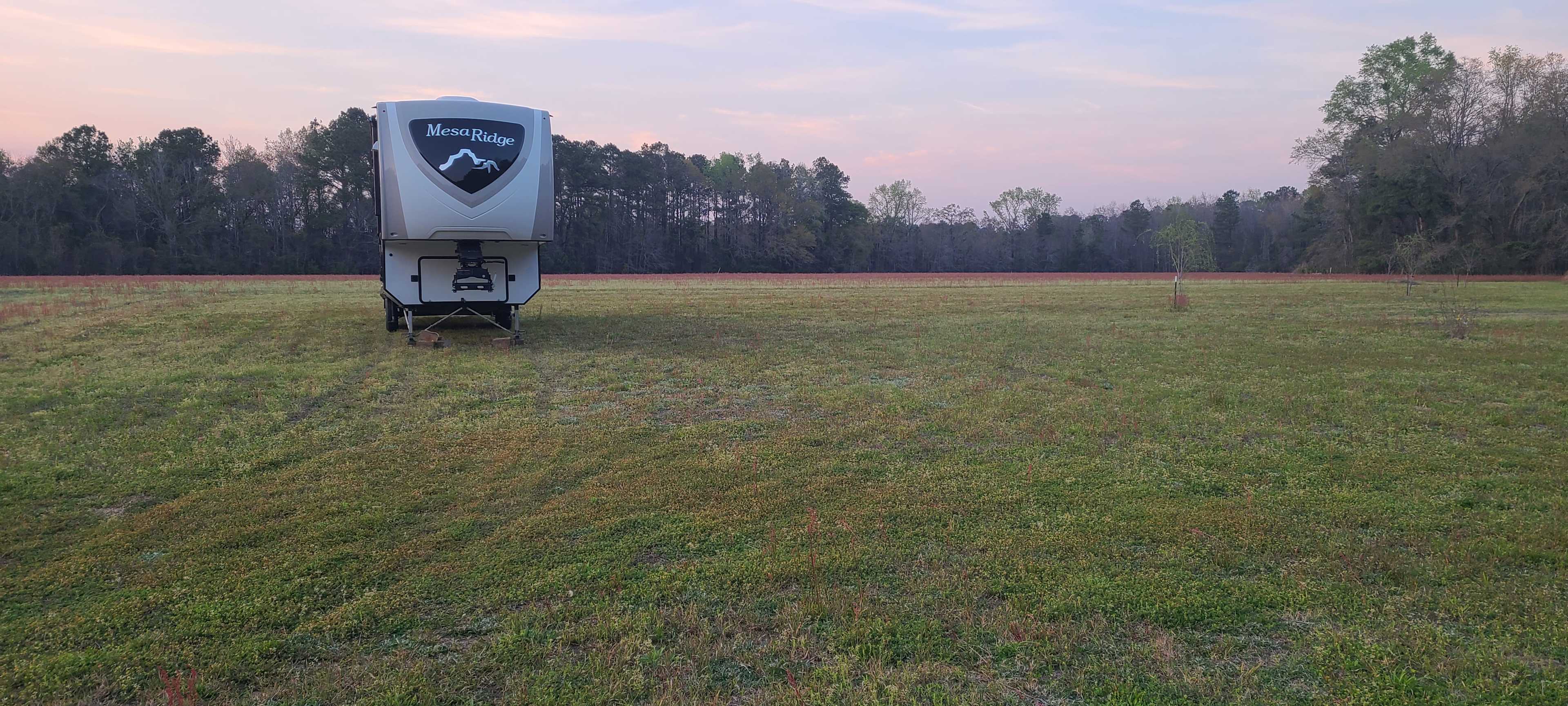 15-Acre Farmside Escape (Dry Camping | Starlink-Friendly) Enjoy peace, privacy, and big open skies on this 15-acre field in Reevesville, SC. Located alongside active farmland, this property offers a quiet, no-frills setting perfect for self-contained campers looking to get away from crowded campgrounds and reconnect with the outdoors. With unobstructed views in every direction, this spot is especially well-suited for Starlink and other satellite setups, making it a great option for off-grid travelers who still want to stay connected on their own terms. 🌿 What You’ll Love: Expansive 15-acre open field with plenty of space to spread out Adjacent to working farmland for a true country atmosphere Clear, unobstructed sky—ideal for stargazing and satellite internet Quiet, low-traffic area for a peaceful stay 🚐 Camping Details: Dry camping only (self-contained rigs required) No hookups: no water, electric, or sewer No dump station or on-site facilities No WiFi available Cell service is limited/unreliable depending on carrier Generators permitted between 7:00 AM – 10:00 PM ☀️ Things to Know: This is an open field with no shade, so plan accordingly Guests must pack in and pack out everything they bring 🌙 The Experience: This is a simple, back-to-basics camping spot for those who value space, quiet, and wide-open views. Whether you're passing through or setting up for a few days of off-grid living, you'll find a peaceful place to unwind under the stars.This site is located on a flat, open 15-acre field with easy access for self-contained RVs, vans, and overland rigs. The terrain is primarily grass/dirt and offers plenty of flexibility in choosing your exact setup location. There are no designated pads, so guests can spread out and position themselves as needed, including space for larger rigs or multiple vehicles. The wide-open layout also provides unobstructed sky access, making it ideal for Starlink or other satellite systems. Please note this is a dry camping site with no hookups or facilities. There is no water, electric, sewer, or dump station available, and guests must be fully self-contained. Cell service is limited and can be unreliable depending on your carrier. There is no WiFi on site. Generators are allowed between 7:00 AM and 10:00 PM. This is an open field with no shade, so be prepared for full sun exposure during the day.