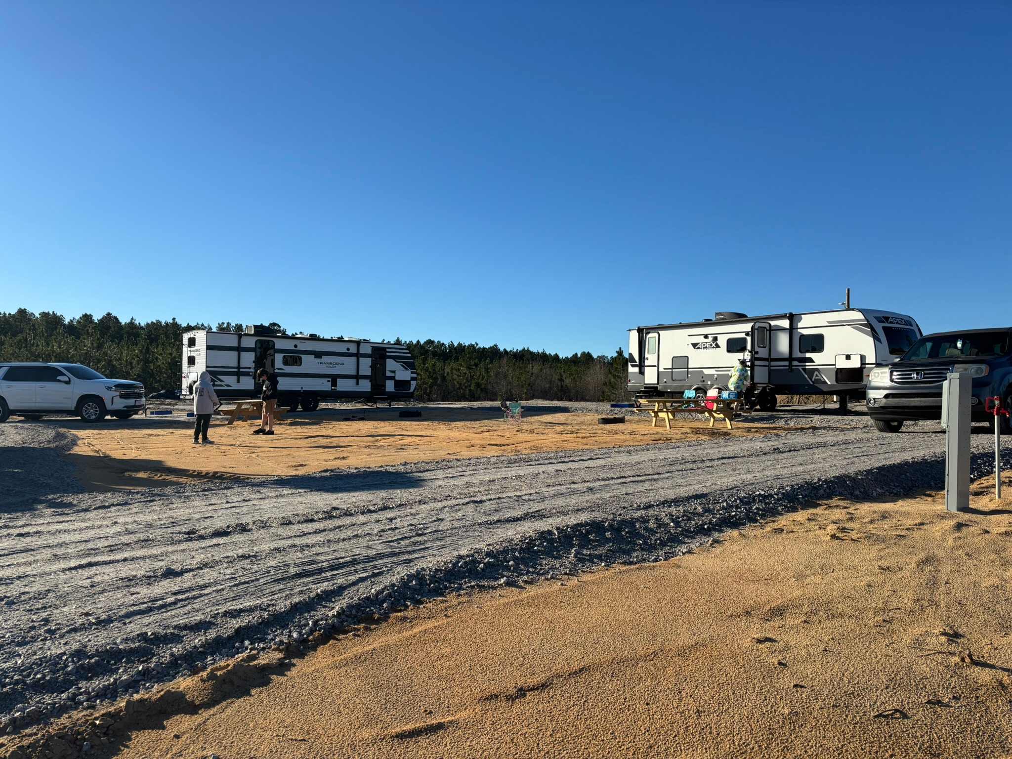 Spacious, level camping well-suited for travel trailers over 40 ft long.