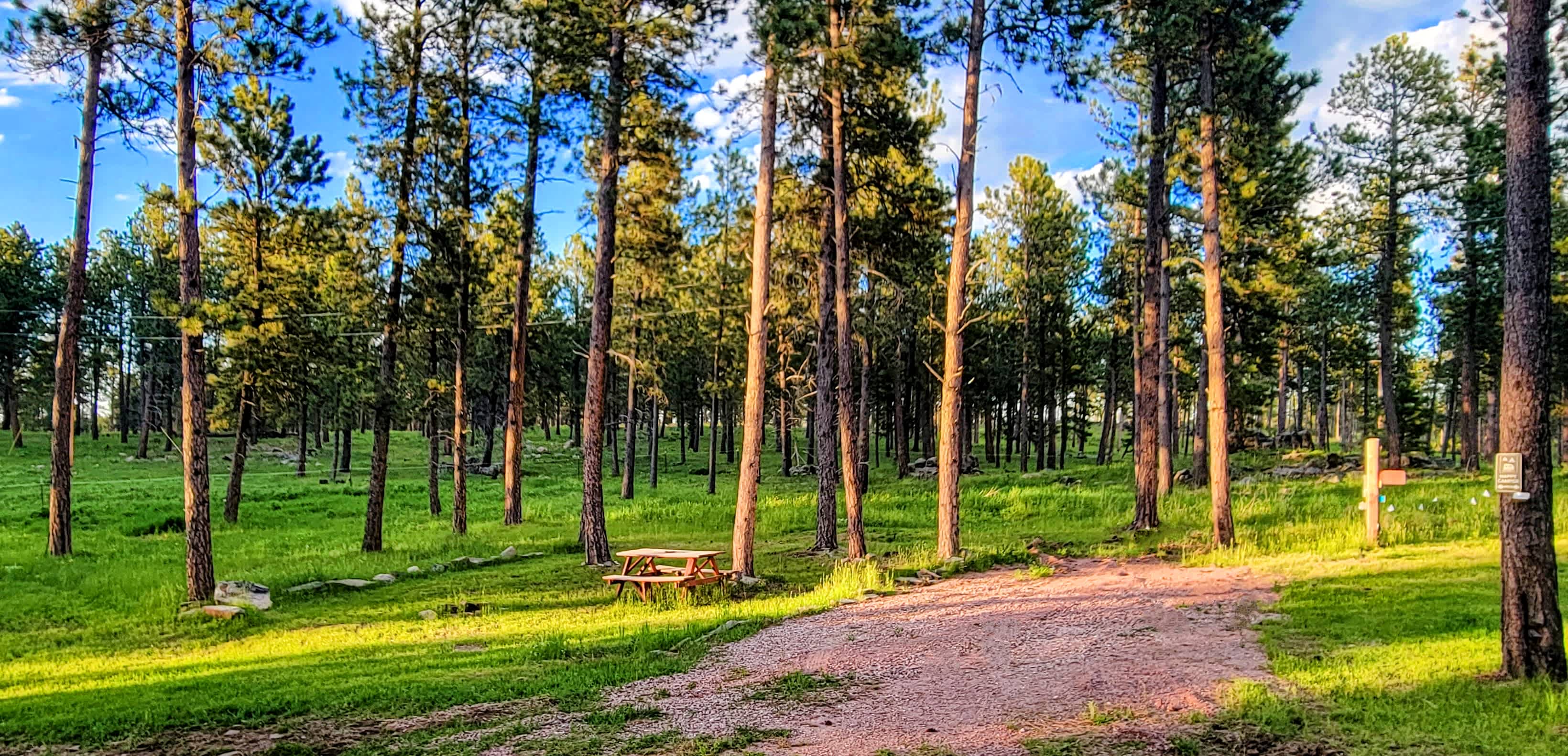 Welcome to our private campground nestled in the heart of the Black Hills National Forest, where nature's splendor meets modern comfort. Our property offers an unparalleled retreat for those seeking serenity and adventure in equal measure. Enveloped by majestic pines and rugged rock formations, the campground provides a secluded oasis away from the hustle and bustle of everyday life. Imagine waking up to the sound of birdsong and the sight of deer grazing nearby, with the fresh mountain air invigorating your spirit. Our well-maintained grounds feature spacious, level campsites equipped with electric, water hookups, and internet, ensuring you stay connected even in the midst of wilderness. The panoramic mountain views are breathtaking, especially during the golden hours of sunrise and sunset, when the sky is painted with vibrant hues. With direct access to hiking trails, horseback trails, and scenic drives, adventure is always at your doorstep. Every moment spent at our campground is a chance to create cherished memories. Experience the perfect blend of tranquility and excitement at our Black Hills National Forest property, your ultimate destination for outdoor bliss.Nice graveled back in RV sight with water and electric hookup, amongst the pines. Wooden picnic table and gas fire pit for you to enjoy.