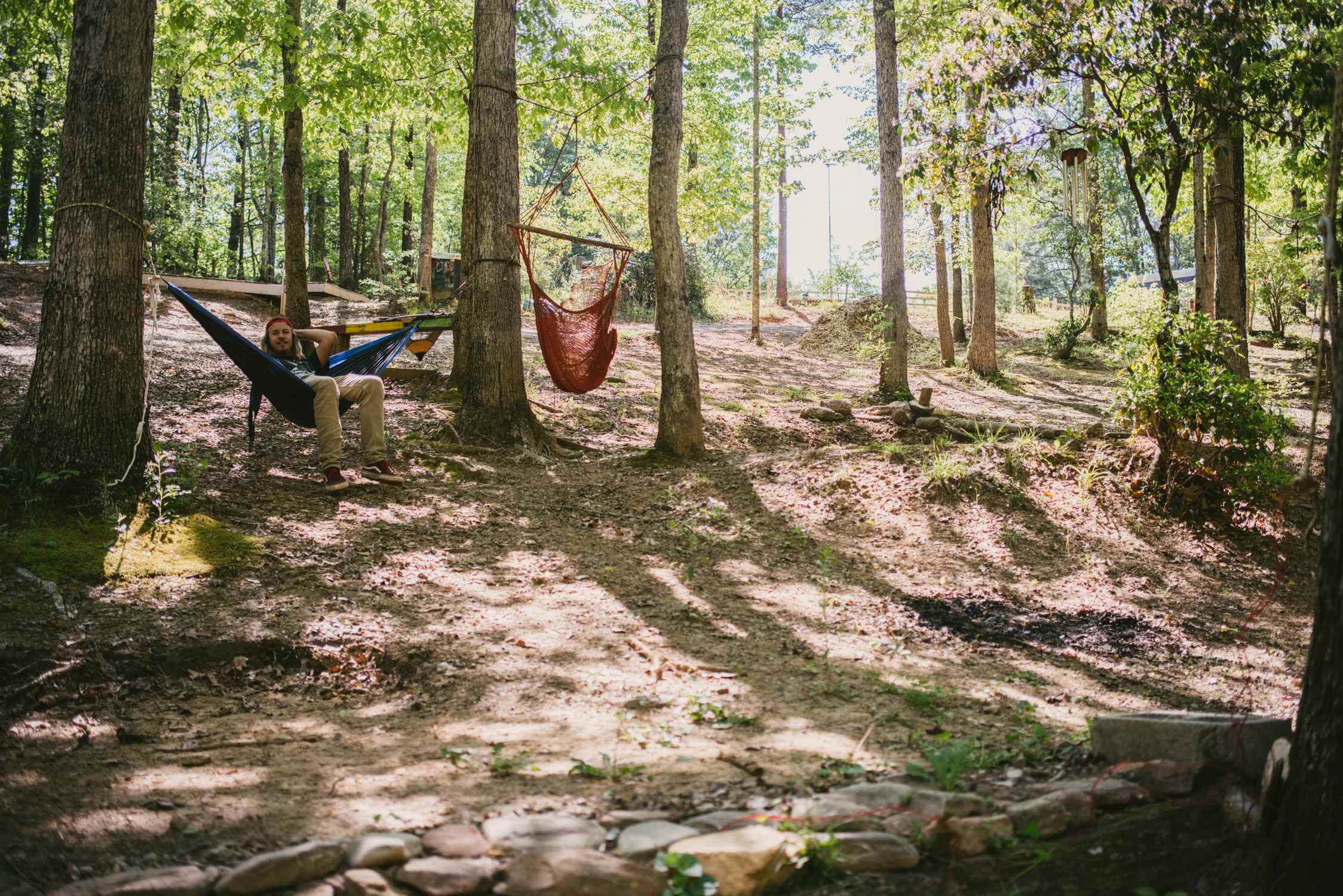 We opted to stay in our tents, because we were looking to camp, but they have several closed shelters for anyone who'd prefer a little more structure. There was also a full kitchen, restroom facilities, giant firepits, hammocks, swings, basically everything you could want. They have many hiking trails already laid out, with hours of space to be lost in, should you want to.