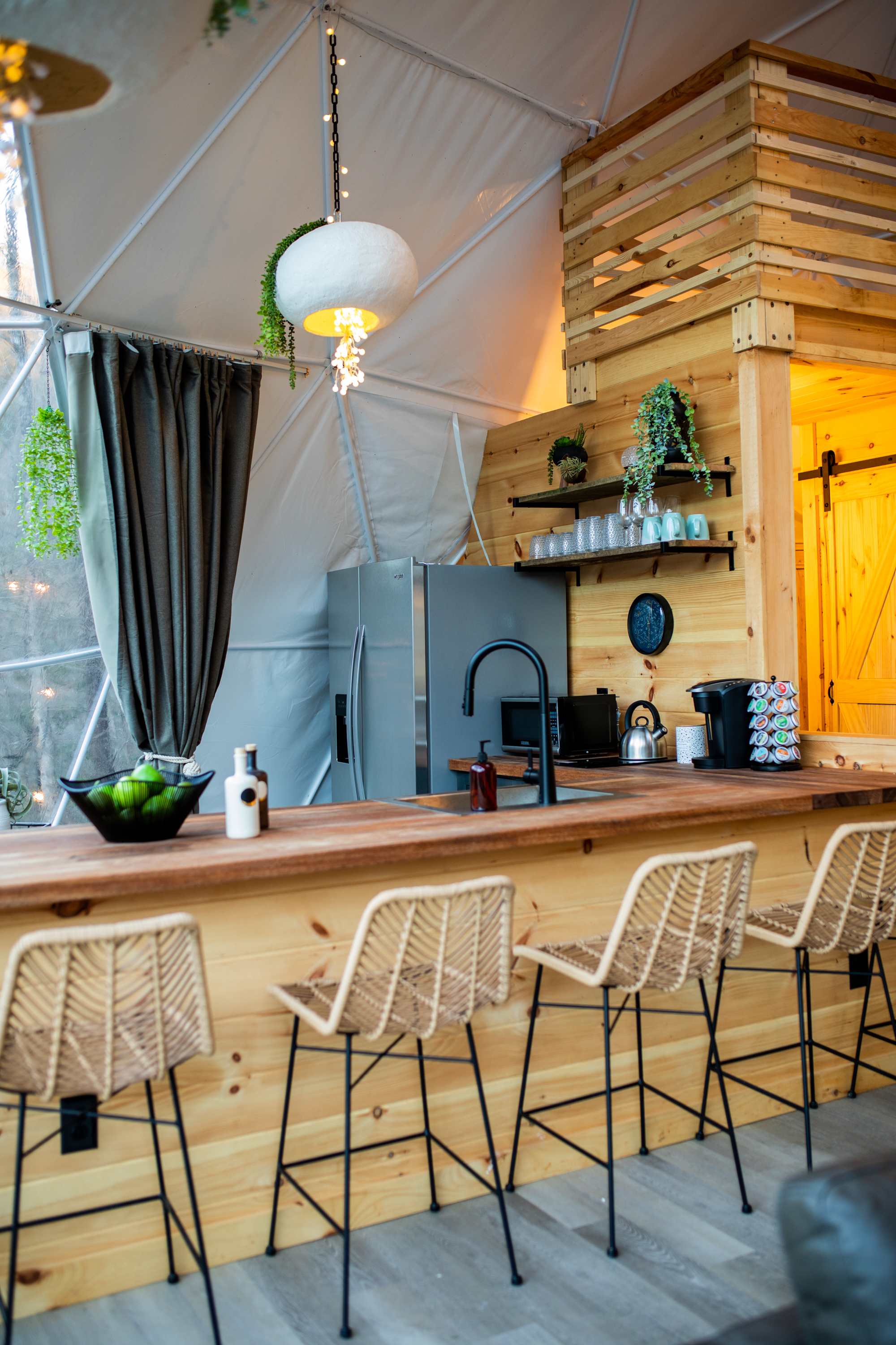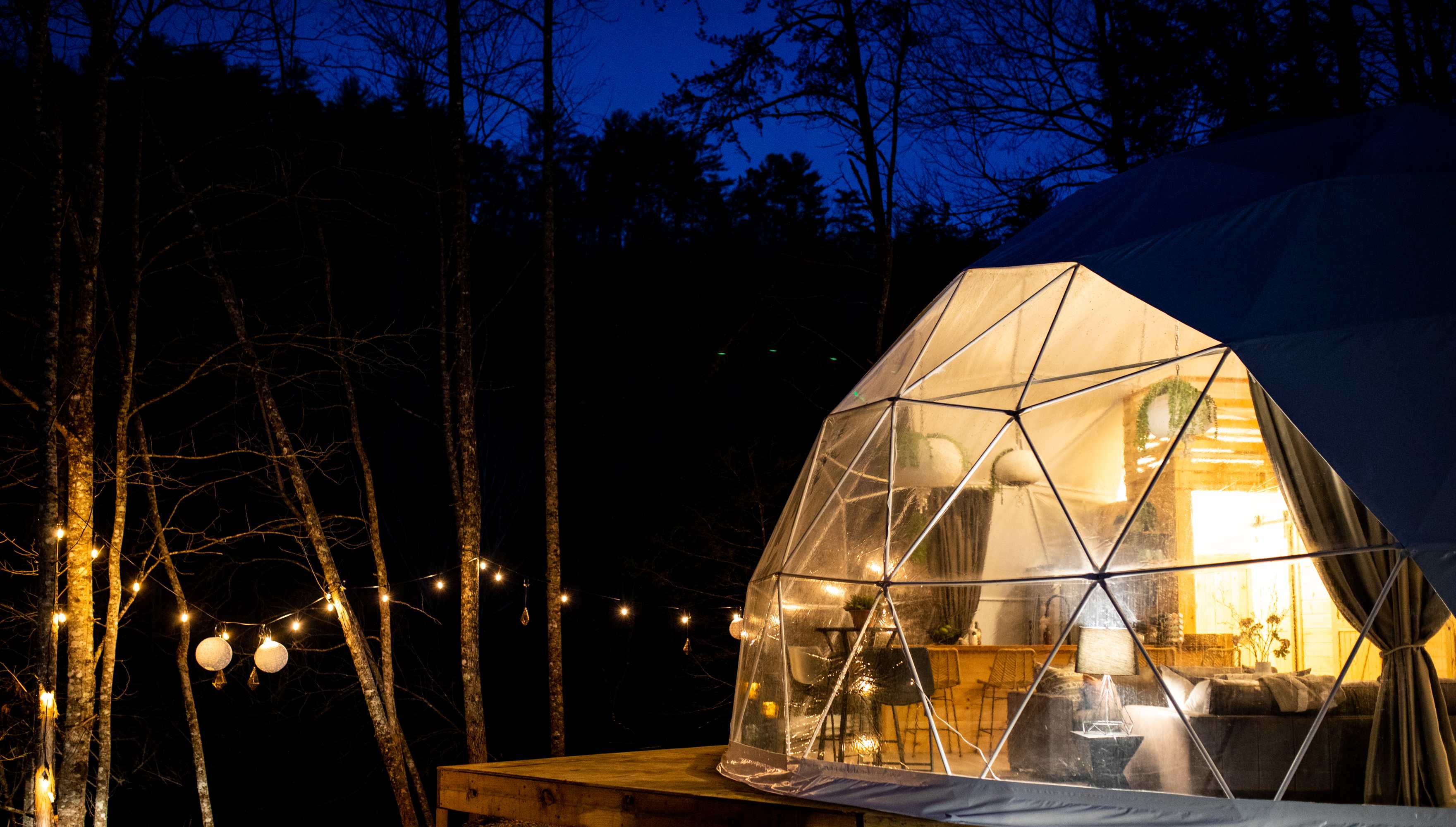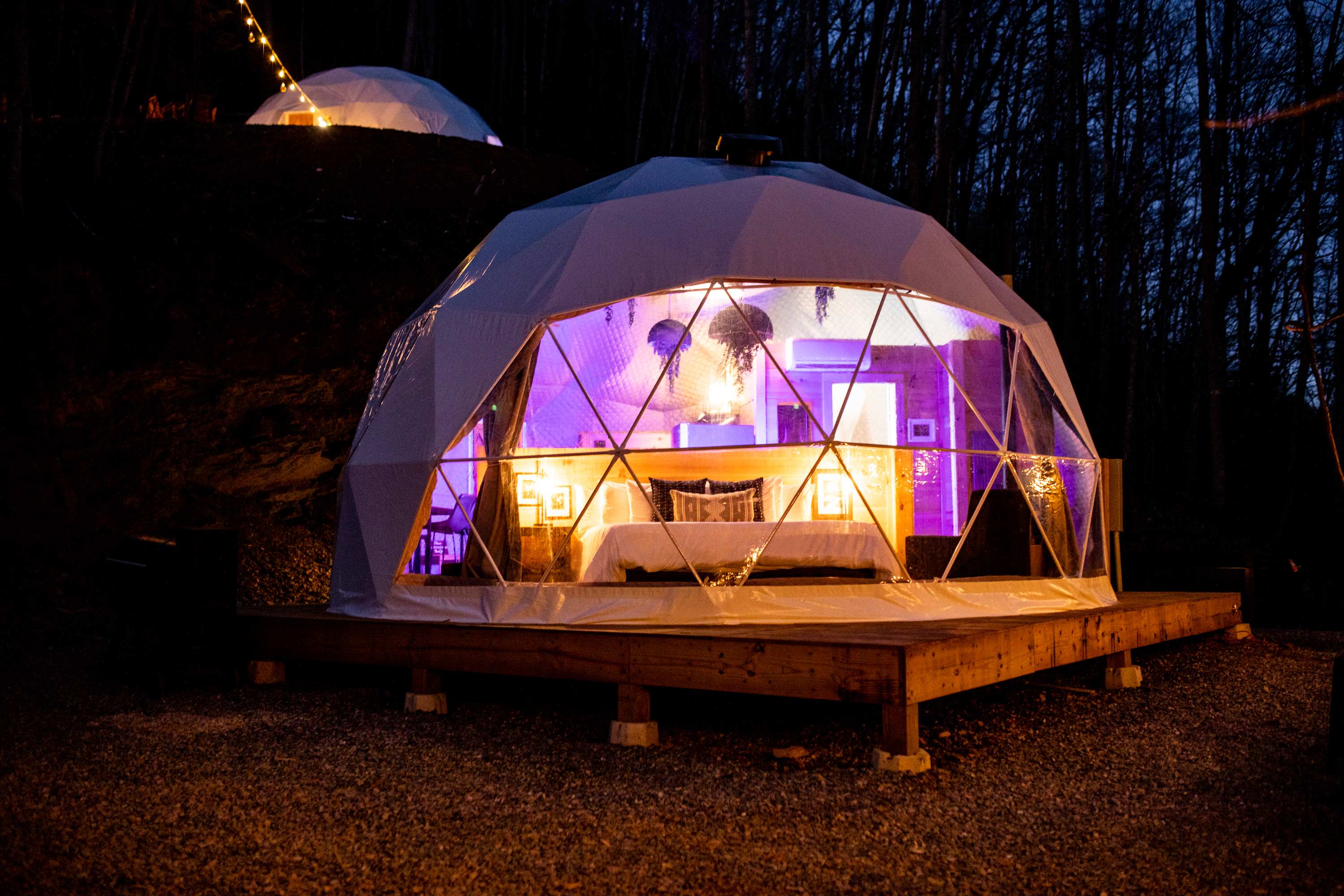 Learn more about this land: GLAMP 🏞 DUNN'S CREEK by STAY MINTY Let nature shine with a visit to GLAMP Dunn's Creek, in the Great Smoky Mountains of Tennessee. In true Stay Minty fashion, GLAMP is all about 🍾🥂celebrating all the ✨shimmers in nature and in life, surrounded by people you care about. We do this by combining all the fun and adventure of camping with a few of life's modern conveniences you just can't live without while keeping the signature style and trendy interiors Stay Minty is best known for. With eight uniquely GLAMP-styled accommodations to choose from, guests will experience something new with each and every visit. ⚠️BEFORE YOU BOOK ❗ Every guest over 18 must sign contract ❗ No pets allowed ❗ 25+ to rent ❗ Guests must read entire FAQ section ❗ Reservations are non-refundable ❗ We highly recommend travel insurance ❗ Discounts not available via third parties ❗ Best price always available by booking direct ❗ Wifi or internet access may not be available. ❗ Cellular signal may not be available ➡️🛣️ ABOUT FURTHER UP THE ROAD - 6 guests, 1,059 sqft Booking this listing will guarantee your stay at "FURTHER UP THE ROAD", our Dome named after the song of the same name, originally written by Bruce Springsteen and later covered by Johnny Cash. The song is about living in the now because we won't be around forever. So eat, drink and be merry in this large dome sure to impress! At 1,059 square feet, the dome is larger than the average sized apartment so there's plenty of room to spread out and get comfy! You can expect a full sized fridge, dishwasher, microwave, counter-top burner, toaster and coffee maker. There's also a small dining table with seating and even a wood burning stove to help keep you warm during the colder season. Outside, you'll find more seating, a fire pit, gas grill and a relaxing hot tub. 📐 SIZE MATTERS - Diameter ............... 30 feet - Height .................... 15 feet - Max Occupancy ... 6 guests - Max Parking .......... 2 cars  🛏️ SLEEPING ARRANGEMENTS - Bdrm ............ 1 king bed w/trundle - Loft ................ 2 queen beds - Living ............ Seating and wood burning stove - Kitchen ......... hot plate, fridge, dishwasher - Bathroom .... sinks, shower, toilet - Outside ........  gas bbq, fire pit, seating ⛺ DOME LOCATION - Surroundings .... great view, very private, large eating area, hot tub, totally worth the hike! - Parking ................ 100' hike from shared parking area GUEST AMENITIES & EXTRAS 🧴Shampoo, Conditioner, Body Wash, 🧼Soap, 🧻Toilet Paper,Paper Towels, Trash Bags, 🍳Cookware,🥃Glasses, 🍽️Dishware, Flatware, 🧂Salt & Pepper, 🃏Games, 📻Record Player, 🛌Bedding, Blankets, Pillows, Sheets OUTDOOR ACTIVITIES 🎣 Fishing, ♟️ Giant Games, ,🏸 Pickle Ball,🥏 Frisbee, Corn Hole, Check our calendar for 🎨 Arts & Crafts and 🎭 Live Music on select dates CHECK-IN ......... 4p 🕓 CHECK OUT ..... 10a 🕙 🗺️ SITE LOCATION - Located in Cosby, Tennessee - Highlights: wildflower viewing, hiking trails - 3 miles from Nat'l Park - 22 miles from Gatlinburg Cosby is an area of the national park without huge crowds, where facilities are rarely full. That's why it's a favorite among locals and long-time visitors to the Smoky Mountains. The main draw for most people to the Cosby area is hiking. Here are the top hiking trails in the area: 🥾 NEARBY HIKING TRAILS > Mount Cammerer via Low Gap Trail / HARD Mount Cammerer via Low Gap Trail is a 11.9 mile heavily trafficked out and back trail that features a river and is rated as difficult. The trail is primarily used for hiking, camping, horses, and backpacking and is accessible year-round. Horses are also able to use this trail. > Gabes Mountain Trail to Hen Wallow Falls / MODERATE Gabes Mountain Trail to Hen Wallow Falls is a 4.5 mile heavily trafficked out and back trail located near Cosby, Tennessee that features a waterfall and is rated as moderate. The trail is primarily used for hiking and is accessible year-round. > Maddron Bald Trail to Albright Grove Loop / MODERATE Maddron Bald Trail is a 7.3 mile hike that passes Albright Grove (3 miles in) and the 5,212 foot mountaintop Maddron Bald (7 miles in). You can reach the trailhead directly from US-321, but the trail is often paired with Gabes Mountain Trail and Snake Den Ridge to create a long loop hike from Cosby Campground. > Mount Sterling via Mount Sterling Gap / HARD Mount Sterling via Mount Sterling Gap is a 5.3 mile moderately trafficked out and back trail located near Cosby, Tennessee that features beautiful wild flowers and is rated as difficult. The trail offers a number of activity options and is best used from March until October. Horses are also able to use this trail. > Cosby Self-Guided Nature Trail / EASY Cosby Self-Guided Nature Trail is a 1.1 mile moderately trafficked loop trail located near Cosby, Tennessee that features beautiful wild flowers and is good for all skill levels. The trail is primarily used for hiking, walking, and nature trips and is accessible year-round. > Chestnut Branch Trail to Mount Cammerer / HARD Chestnut Branch Trail to Mount Cammerer is a 11.3 mile lightly trafficked out and back trail located near Cosby, Tennessee that features beautiful wild flowers and is rated as difficult. The trail is primarily used for hiking, running, and nature trips and is accessible year-round. > Sutton Ridge Overlook Trail / MODERATE Sutton Ridge Overlook Trail is a 3 mile out and back trail located near Cosby, Tennessee that features beautiful wild flowers and is rated as moderate. The trail is primarily used for hiking, running, and camping. > Lower Mount Cammerer Trail / HARD Lower Mount Cammerer Trail is a 14.5 mile moderately trafficked out and back trail located near Cosby, Tennessee that features a river and is rated as difficult. The trail offers a number of activity options and is accessible year-round. Horses are als