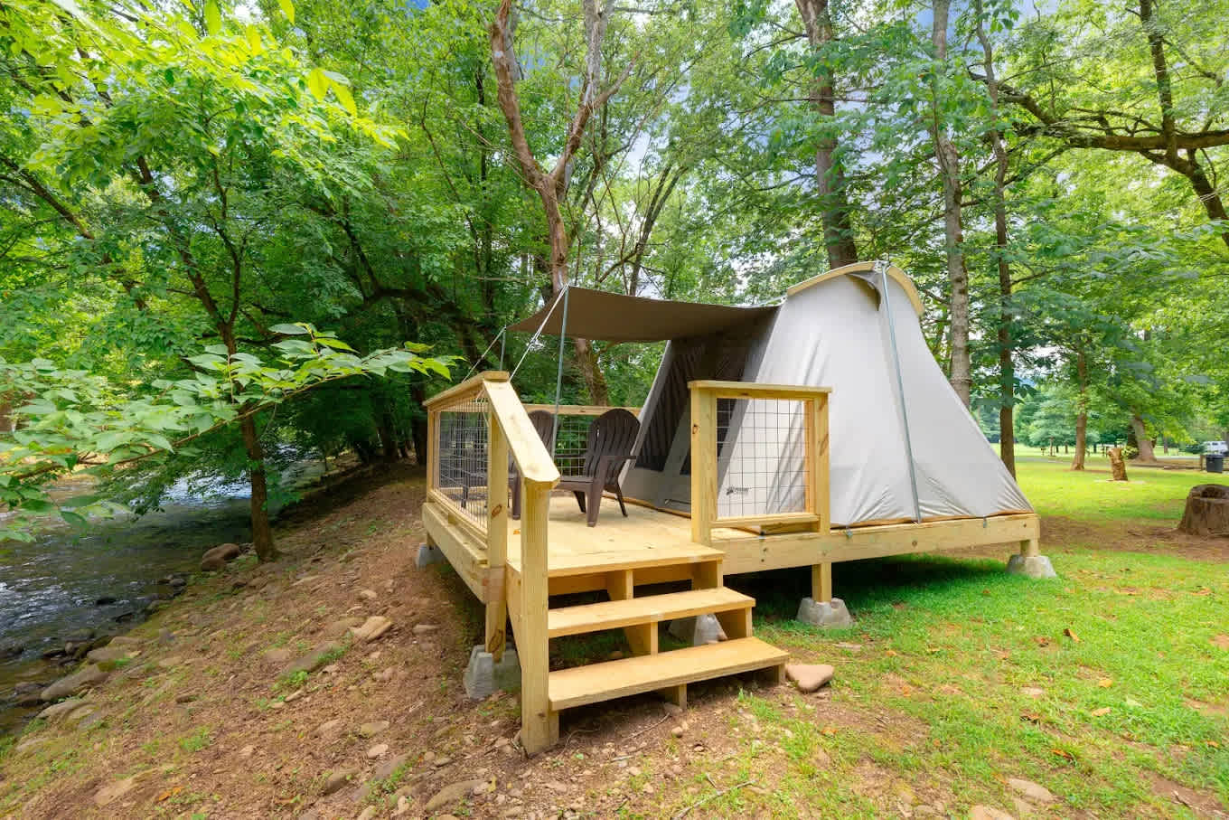 Triple Creek Campground stands out as a unique family-owned and operated retreat nestled amidst the stunning mountain creeks of the Great Smoky Mountains. Just a short drive from the vibrant attractions of Pigeon Forge and Gatlinburg, our campground offers a serene escape where nature meets comfort. Most of our campsites are conveniently located creekside, providing ample shade from our large, beautiful trees. We cater to all camping preferences with a variety of options, including RV, camper, and tent sites, as well as nightly camper rentals. Our amenities include a well-stocked camp store, tubing, fishing opportunities, outdoor games, a kids’ playground, and live music events, ensuring fun for the entire family. In addition to our campground, you'll find some of the best home-style dining options nearby, such as Carver’s and Janice’s. Outdoor enthusiasts can explore breathtaking hiking trails like Mt. Cammerer and Greenbrier. The surrounding area is rich with attractions, including the Foothills Parkway, thrilling white-water rafting, Douglas Lake, and charming destinations like Asheville, NC, Maggie Valley, and Cherokee, NC. Join us at Triple Creek Campground for an unforgettable family camping experience. We can’t wait to welcome you this coming year!