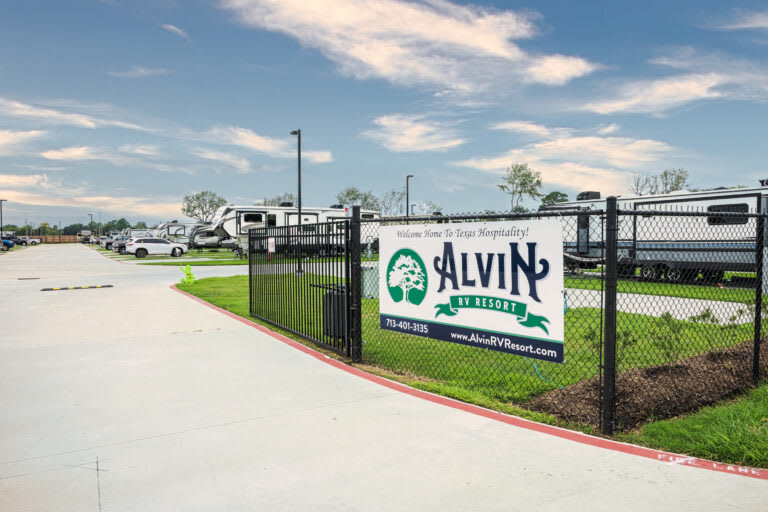 Welcome Home to Our New RV Park in Alvin Looking for a safe, secure, friendly place to call home? You’ll love the first-class hospitality of Alvin RV Resort. It’s the full-service community you have been looking for. Comfort and convenience mean full hook-ups in all of our 165 RV sites, 20/30/50 amp electric service, water, sewer, and high-speed internet. You’ll appreciate the gated security fence and smooth paved streets! Relax with your family under the vast Texas skies and plunge into the large, HEATED swimming pool. Look no further than nearby Alvin for lots of fun things to do. Many are inexpensive and some are even FREE! Hiking, biking, baseball, bowling, wildlife, museums, and berry-picking. Or kick up your heels with dining, dancing, and shopping in Houston. Plus! Surfing, swimming, and deep sea fishing charters in Galveston.