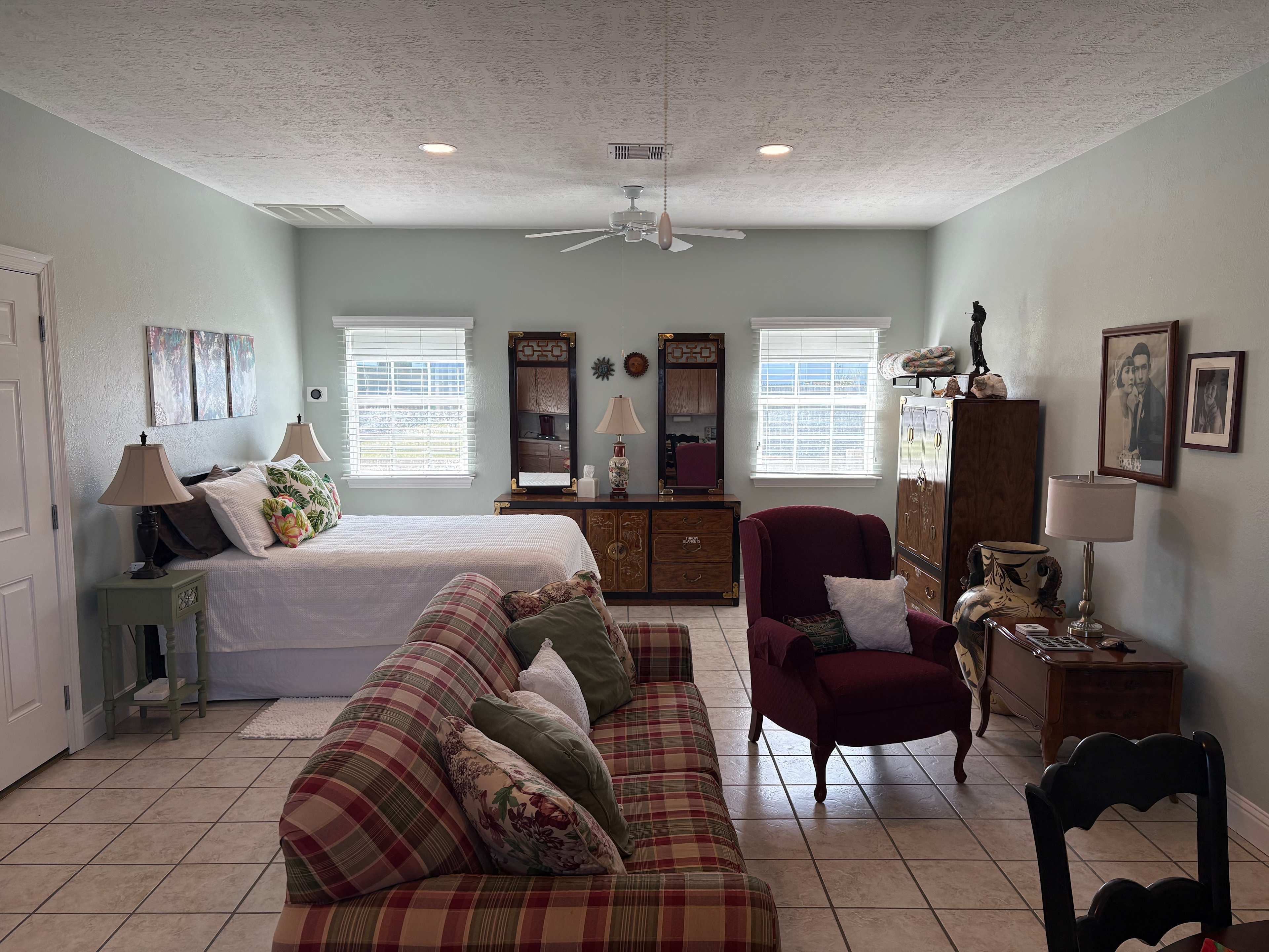 Coastal Comfort Awaits – Your Peaceful Beach Retreat! Escape to this serene getaway with a large yard, perfectly located for relaxation. Enjoy the best of both worlds—peaceful seclusion yet just minutes from the beach, shops, and top dining spots. Ideal for couples and small families, this hidden gem offers a cozy, charming atmosphere with all the comforts of home. Whether you're here to unwind or explore, your perfect coastal escape awaits! Book now! When you book the Barefoot Bungalow, you and your group have exclusive access to the entire property, guaranteeing complete privacy. No RVs will be rented on-site, so you won’t have to share the space with anyone outside your party. However, if you’d like to invite RV-owning friends or family to join you on the property, we can accommodate them for an additional fee. (Message me for details) ● Free 240V/50A outlet available for EV charging only (EV charger not provided—please bring your own charging cable and adapter) ● Ground-level access—no stairs! ● Wide doorways & hallways for easy mobility ● Open-concept design ● Bed linens, pillows, bath towels provided! ● One queen-size bed with nightstands featuring charging stations on the night stands ● One queen size sofa bed ● Fast & Free Wi-Fi ● Roku TV with streaming apps, local Houston channels, and a DVD player ● Extensive DVD library plus board games & puzzles for all ages ● Central air & heat ● Two ceiling fans KITCHENETTE DETAILS ● Keurig coffee maker ● Microwave & toaster oven (No Stove) ● Refrigerator/freezer with a water & ice dispenser ● Plates, silverware, glasses, and wine/champagne glasses ● Dish soap, pot holders, and cutting boards provided BATHROOM ● Walk-in shower with an outer grab bar for safety ● Hair dryer and lighted makeup mirror ● Washer & dryer located in the bathroom Golf Cart Rental Available —Optional rental —perfect for hauling your gear and and getting to the beach! Once your reservation is booked, we can send you the details.