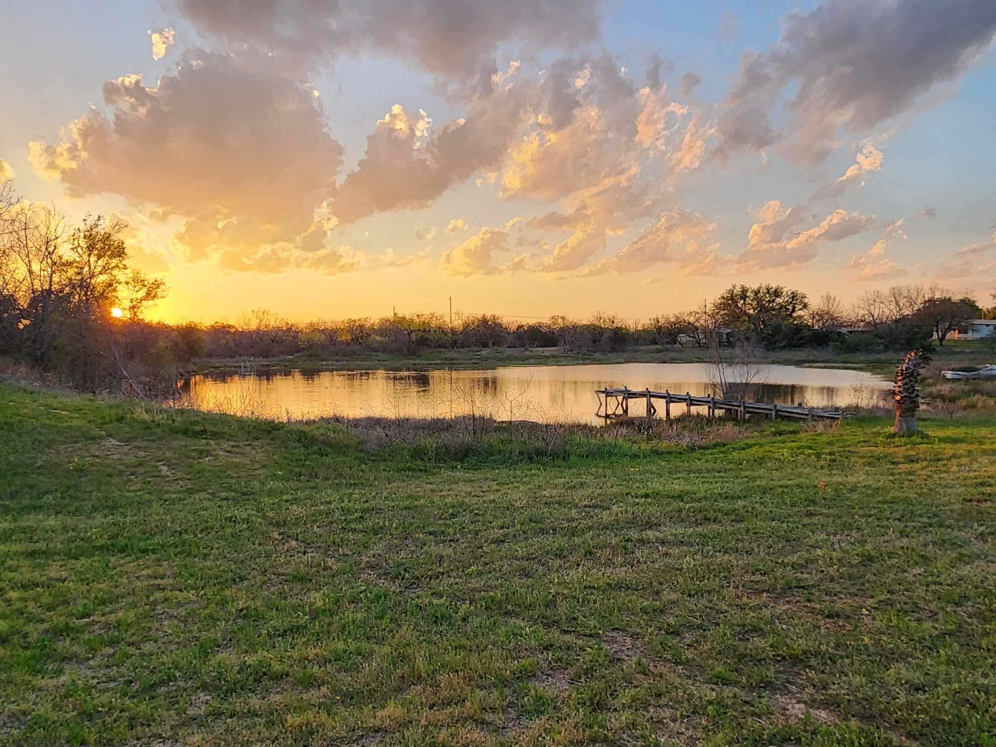 Beautiful scenery of trees and a pond that ducks, birds and other fowl love to visit. The stars at night are big and bright under these Texas skies. Sit outside and watch a gorgeous sunset over the pond. Kick back and relax and enjoy the peaceful surroundings. A little piece of heaven tucked away in the middle of town. Minutes away from grocery and convenience stores, restaurants and lakes.