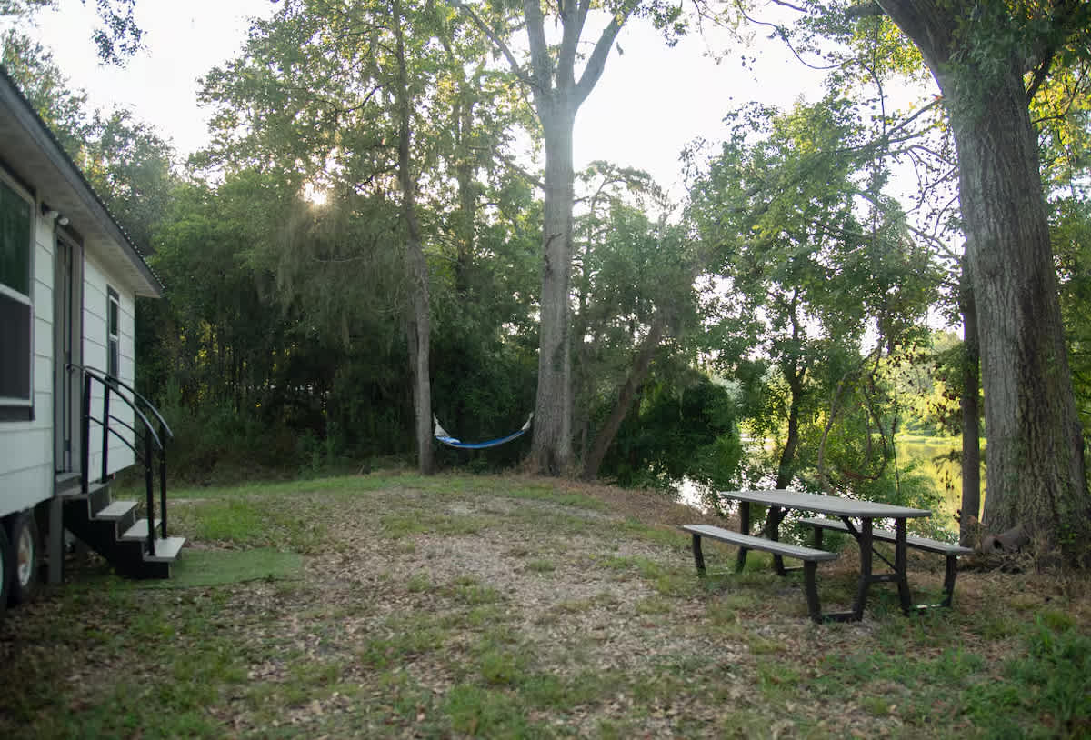 Enjoy the peace that nature offers when you stay in this unique place. Not too far from the quaint town of Cleveland or a short trip to Houston. But why leave? This getaway is what most need for an escape. The hammock or a walk on the Trinity River, each to their own on what we call peace. Nearby, we have a retreat soon opening, feel free to ask for a tour! An artesian cold plunge & red light therapy will be our featured offers. How about a nature photography class? Or... a good long nap!