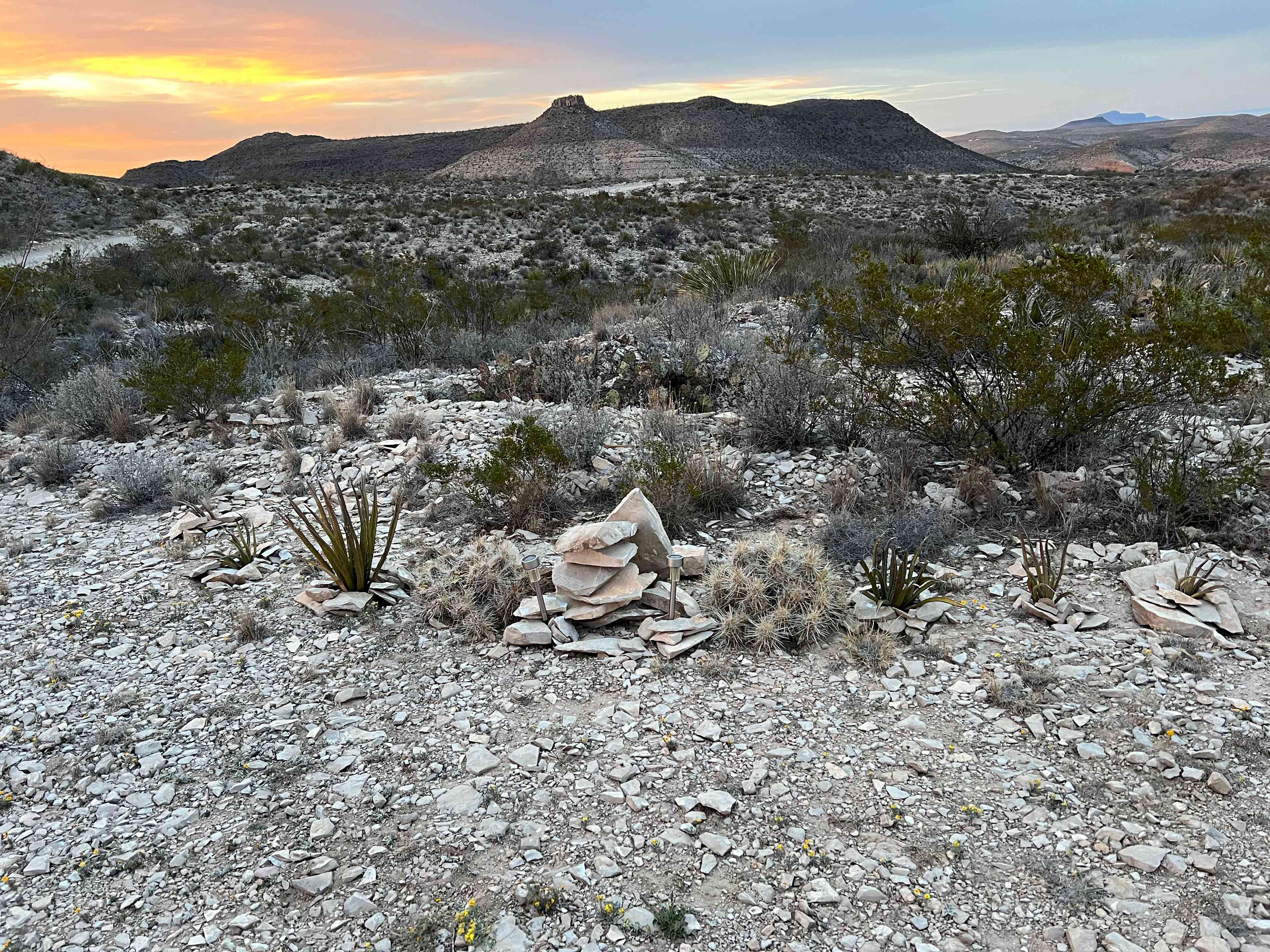 Come enjoy Mountain View’s from both sides of this mini ranch located just 30 minutes off a paved road. We have just one tent site & stone fire ring set up at the moment so the entire property would be yours to enjoy. Our property includes the base of a large hill, seasonal river/ ravine and a large plateau area with ample parking, road and level Rv turn around.Guests will get to enjoy some of the best star gazing skies in the world. Enjoy the discounted rates while we improve this land and add more amenities soon. The roads are maintained year round. From Terlingua Ranch Rd it's about 30 mins drive to the property. We now have two sites set up for campers to enjoy. Our first was about 20ft away from the road with a stone fire ring, tent site and solar light stakes. We recently completed a second location further into thr property that has a cleared RV turn around, stone fire circle, 3-4 tent sites, cedar posts with solar string lights and a hammock frame.
