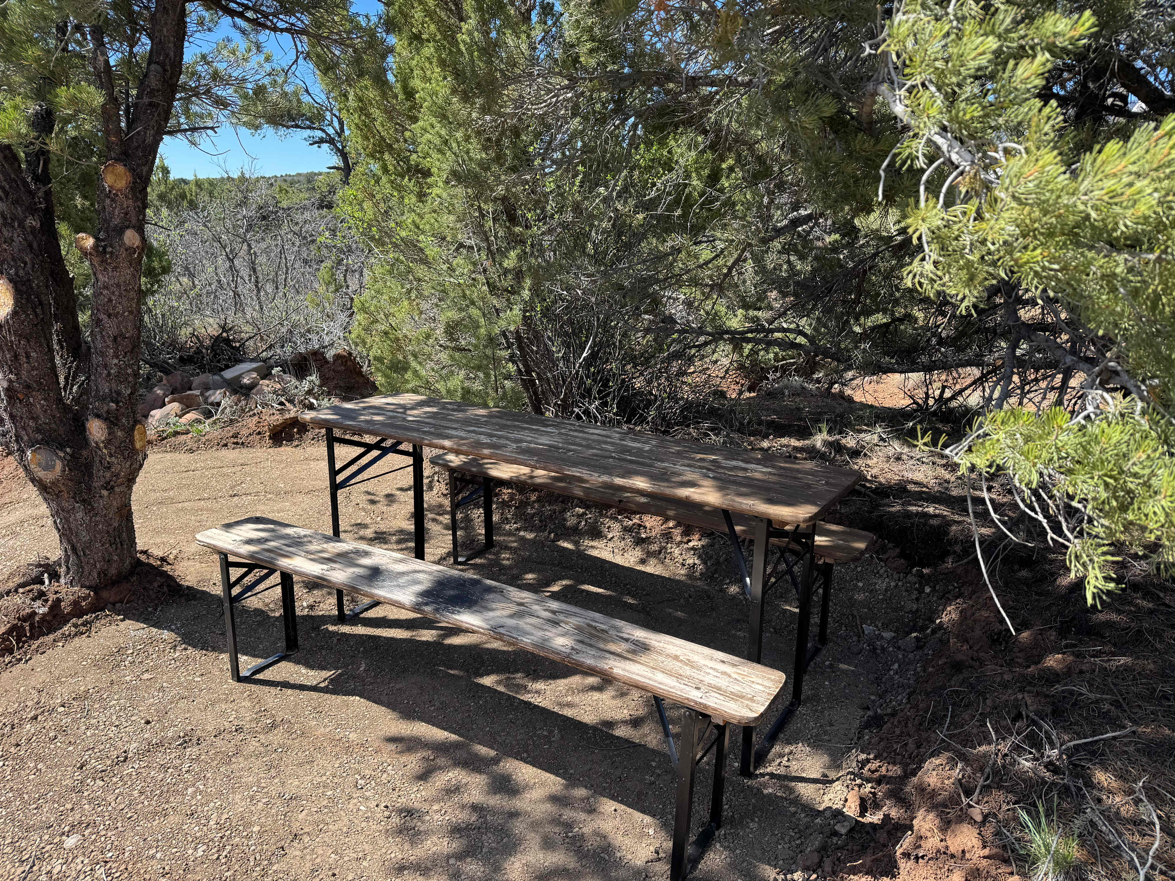 Campsite A offers a spacious drive-through setup designed for easy arrival and relaxed departure. Pull straight in, level up, and settle beneath wide high-desert skies at 7,400 feet elevation. Located just inside the retreat entrance, this campsite provides simple access while still maintaining the intentional spacing and open feel of true backcountry camping. No tight rows. No parking-lot layout. Just room to breathe among piñon and juniper. Ideal for: • Larger self-contained RVs • Late arrivals • One-night stopovers • Guests staying multiple nights while exploring the area • Campers who prefer not to back in You’re just 2 miles (about 5 minutes) from Monticello’s restaurants and Blue Mountain Foods grocery, yet once parked, the setting feels quiet and removed. Campsite Features • Great WiFi • Pull-through gravel pad • Approximate usable length up to 70’ (depending on configuration) • Picnic table • Designed for self-contained camping • Dark night skies • Maximum occupancy: 6 guests This is high-desert camping with space, simplicity, and convenience — close to town, but far from the feel of a crowded RV park.