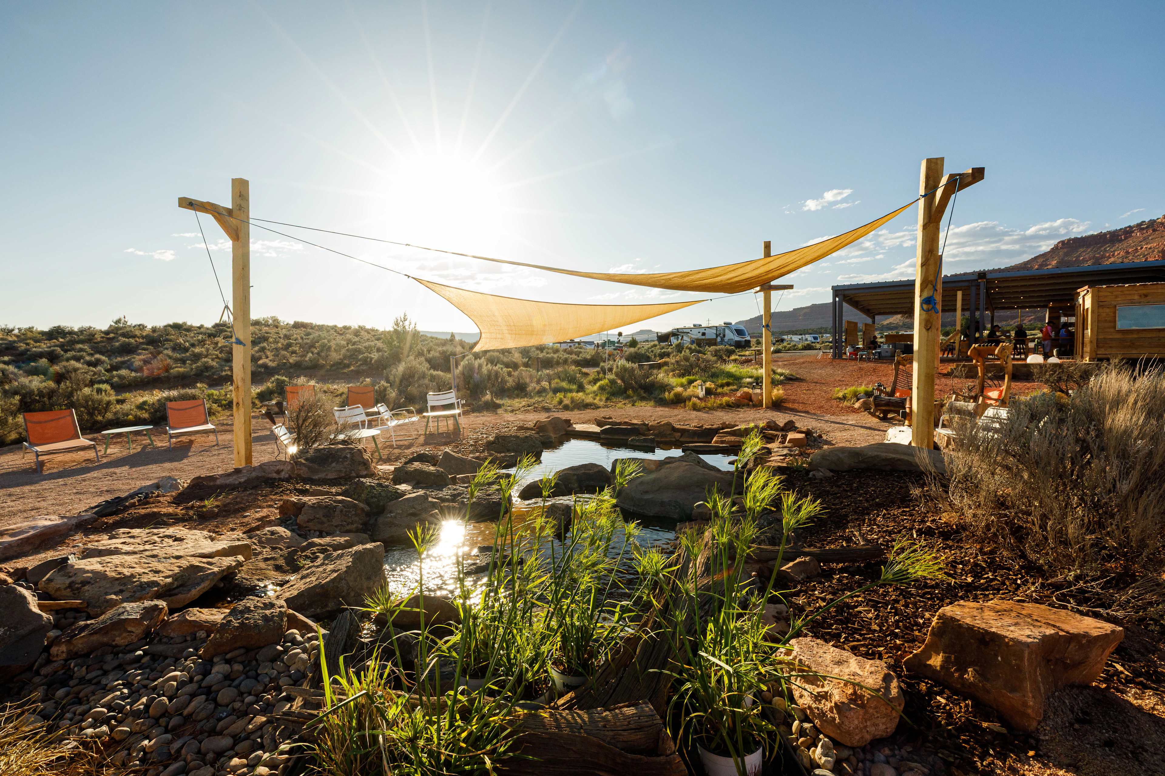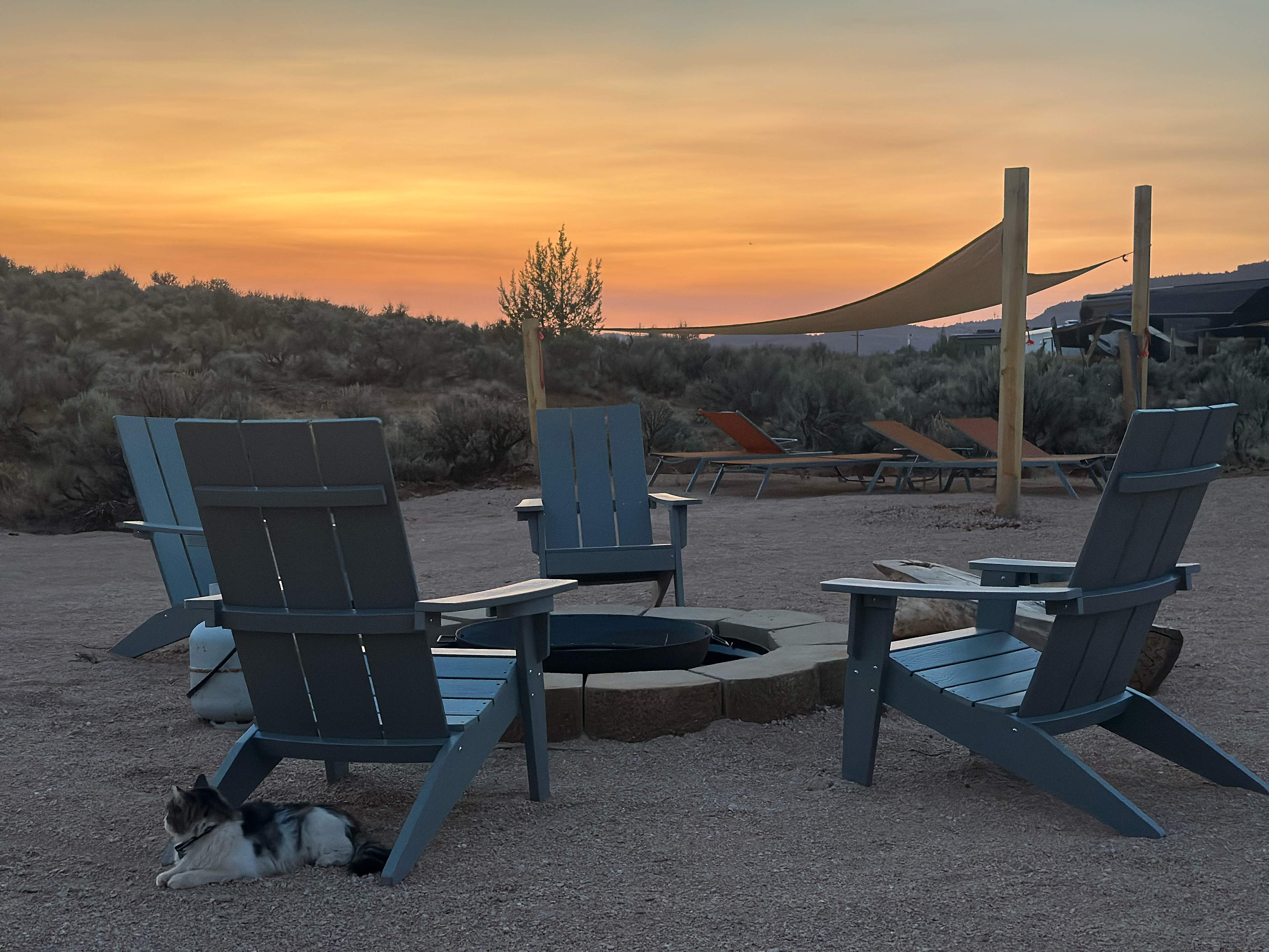 These electric-only sites are individually nestled within their own loop at the western edge of the park, overlooking a natural gorge. Each bungalow offers vistas of the western red rock mountains, providing a front-row seat to every sunset. Enjoy the comfort of extra space under this unique covered structure, complete with a propane fireplace and plenty of seating. Camp Luxury sites boast its private bathhouse, featuring three toilet rooms and two shower suites, and an outdoor kitchen for grilling and washing dishes. Water access and complimentary septic dump are included for your convenience. Power: 30 amp electric only Size: Large site suitable for trailers up to 18’ Other Vehicles: Vans, truck campers, rooftop tents, and motorhomes up to 24’ may be permitted with prior approval—please email the park before booking Not Permitted: Ground tents, car camping, or vehicles outside the listed requirements Important: This is not a full hookup site. If you arrive with a vehicle or setup that does not meet the requirements, you will be asked to leave unless we can find a site that is suitable for you. * 30-Amp * Covered Deck * Dining Table * Electricity * Hammock available by request upon check in * Lounge Chairs * Spa Like Bathrooms nearby * Laundry On Site * Patio Deck * Pet-Friendly * Propane Fire Pit * Fiber Optic Wi-Fi * No Tents or Car Camping Allowed