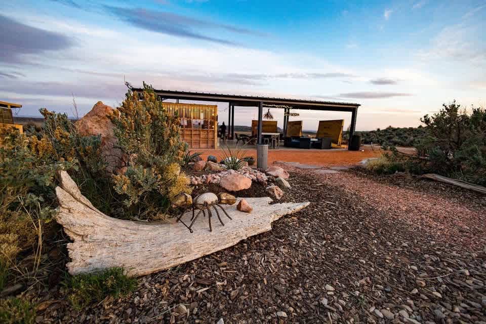 Dark Sky sits on 40 acres of untouched sagebrush. With unobstructed views in all directions, guests will enjoy the ever-changing vistas across the Red Cliffs, Vermillion Cliffs, and the Kaibab Plateau. Epic sunrises and sunsets fade into the darkest skies and brightest stars in Southern Utah. Our Camp Luxury sites are electric-only, designed for smaller vehicles, and individually nestled within their own loop at the western edge of the park, overlooking a natural gorge. You'll enjoy the privacy of your own desert bungalow with space to truly stretch out. Each site is outfitted with a propane fire pit, covered shade, lounge chairs, and a patio set. Camp Luxury also features its own private bathhouse, with three toilet rooms and two shower suites. These sites can accommodate: • Trailers up to 18' • Vans, motorhomes, rooftop tents, and truck campers up to 24' Please contact us directly if your vehicle is longer than 18'.These electric-only sites are individually nestled within their own loop at the western edge of the park, overlooking a natural gorge. Each bungalow offers vistas of the western red rock mountains, providing a front-row seat to every sunset. Enjoy the comfort of extra space under this unique covered structure, complete with a propane fireplace and plenty of seating. Camp Luxury sites boast its private bathhouse, featuring three toilet rooms and two shower suites, and an outdoor kitchen for grilling and washing dishes. Water access and complimentary septic dump are included for your convenience. Power: 30 amp electric only Size: Large site suitable for trailers up to 18’ Other Vehicles: Vans, truck campers, rooftop tents, and motorhomes up to 24’ may be permitted with prior approval—please email the park before booking Not Permitted: Ground tents, car camping, or vehicles outside the listed requirements Important: This is not a full hookup site. If you arrive with a vehicle or setup that does not meet the requirements, you will be asked to leave unless we can find a site that is suitable for you. * 30-Amp * Covered Deck * Dining Table * Electricity * Hammock available by request upon check in * Lounge Chairs * Spa Like Bathrooms nearby * Laundry On Site * Patio Deck * Pet-Friendly * Propane Fire Pit * Fiber Optic Wi-Fi * No Tents or Car Camping Allowed