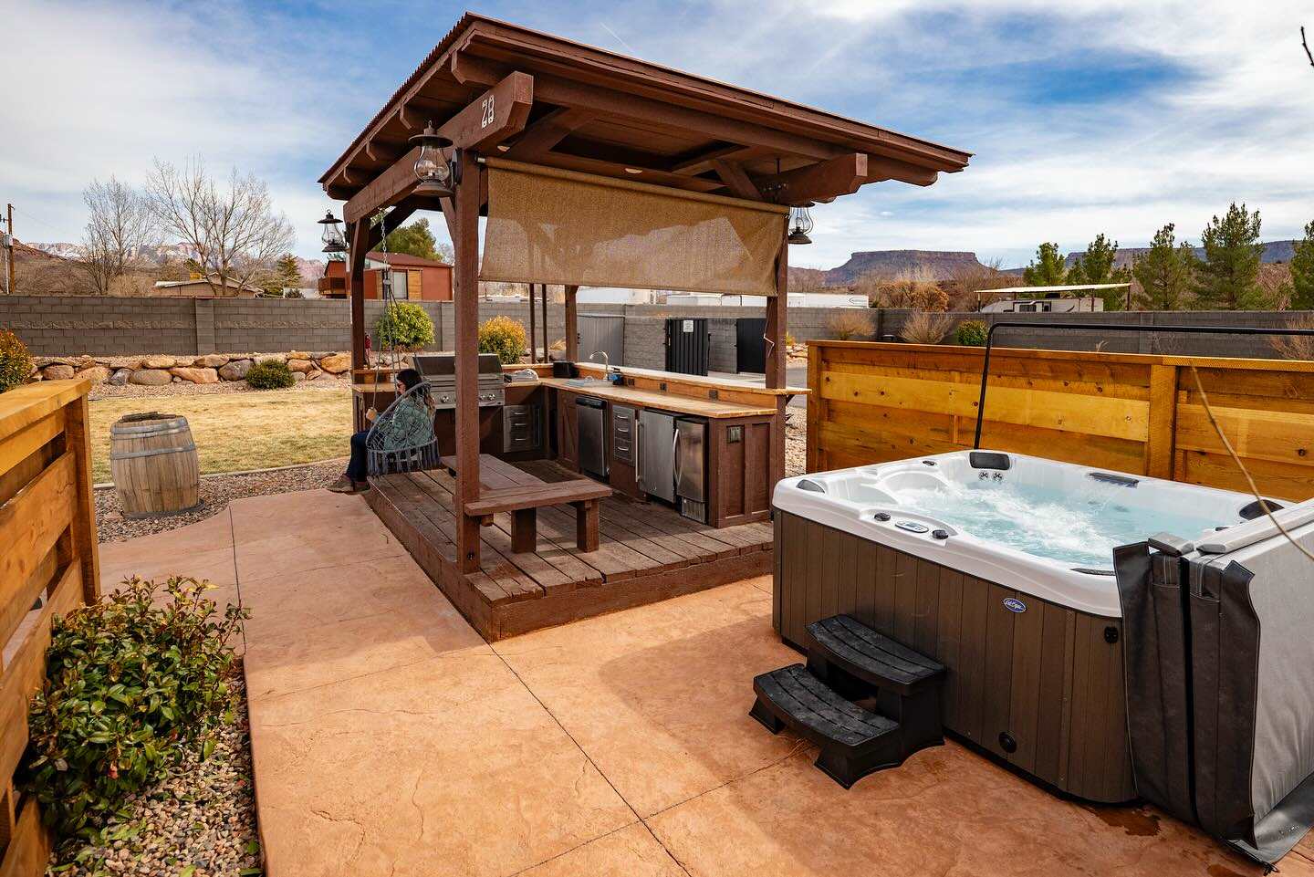Luxury Glamping Tipi Near Zion National Park Experience a Modern Twist on Historic Western Living Escape to the serenity of Southern Utah and stay in a luxurious tipi that blends rustic charm with modern comfort. Take in breathtaking views of Zion National Park to the east, Smith Mesa to the north, and Gooseberry Mesa to the south. Enjoy the peaceful setting as you relax by your private gas fire pit, gazing up at a sky full of stars. Tipi Features: King bed and two full-size futons (one on the main floor, one in a cozy loft) Private bathroom with flushing toilet, sink, and shower Heating and air conditioning for year-round comfort Private patio with hot tub Outdoor kitchen with gas BBQ grill (side burner), sink, refrigerator, dishwasher, ice maker, Keurig coffee maker, and microwave Fully stocked with dishes, utensils, cookware, and kitchen towels Resort Amenities Include: Heated Pool & Hot Tubs Pickleball Courts Half Basketball court Fishing Pond (catch and release) Corn Hole Walking Trails Amphitheater On-Site Retail Store Located just 20 minutes from Zion National Park, with easy access to shops and dining in the town of Springdale, this is the perfect base for your Zion adventure. Reserve your stay today and enjoy the comfort of glamping with the natural beauty of Zion all around you!