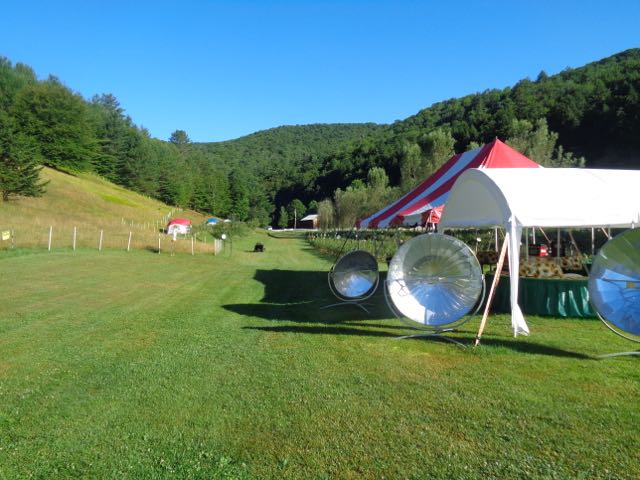 Beautiful valley, fields of blueberries and flowers.  Learn more about this land: Open from July 4th to October 24th. Stay in one of our modern tents on a blueberry farm in the heart of Vermont's Green Mountains. We call our place Crystal Spring of Vermont: Back to Nature, Back to Future since we like to mix the traditional natural values with our modern technology. You can watch our flock of sheep and stream your sports match live on your laptop at the same time. Our tents come with queen-sized air mattresses with choice of traditional bed linens or sleeping bags. Each tent has its own battery with 120v and USB plugs for charging. There is also large 30x40 tent with tables and chairs for gathering and cooking.  While here, enjoy our farm stand where we sell fresh produce, simple food, beverages, and some camping supplies. There are several propane powered appliances such as grill, pizza oven, and stove. One of the biggest attractions is our German solar cookers, also free for everybody to use, that create up to 650 F degrees, just from the power of the sun.  We also have free WiFi, portapotty, camp shower, and plenty of parking near the tents. We are a popular spot for Long Trail hikers!  We are conveniently located on Route 4, only 1/2 mile from Long Trail Brewery, just minutes from Woodstock (historic Rockefeller village and national park), Killington (best ski area of the East, besides the incredible views, and is also loaded with all season recreational activities—mountain biking, hiking, beer/wine festivals, etc.), and President Coolidge birthplace (Plymouth) and Okemo resort (Ludlow), only 10 minutes from Long Trail and Appalachian Trail.  Open from July 4th to October 24th.