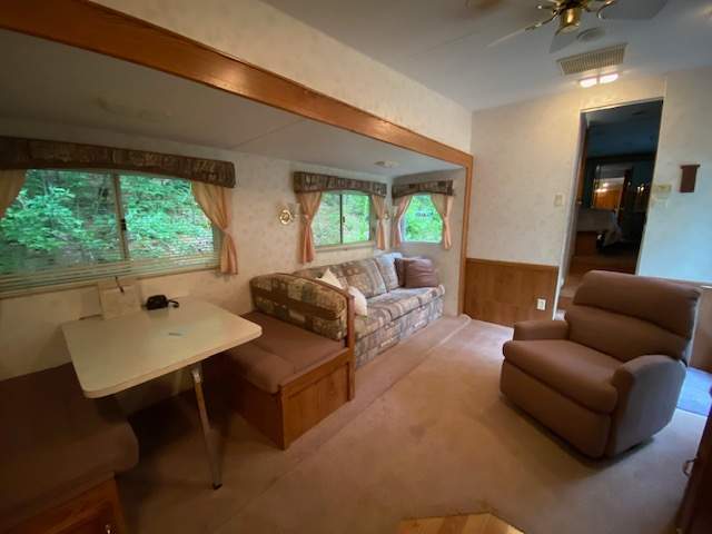 This 3-season camper is nestled in the woods on private property and is great for a break from the hustle and bustle of everyday life, a place for extended family to stay while visiting rural Vermont. Take advantage of the logging trails on site to take an easy hike, where you may stumble upon a whitetail deer, a turkey, or even some baby raccoons. The property has a waterfront where you can take a fishing rod down to the brook to catch a native fish or two for your evening dinner. * See your host for a complimentary fishing pole. The camper has an open kitchen, and living room/dining room area with a table, sofa, reclining chair, and a TV. There is also a private toilet and shower onboard. The bedroom has a closet and an upgraded Queen-size mattress to sleep your worries away. We provide all the linens, towels, and essentials such as dishes, cleaning supplies, blow dryer, curling iron, clothing irons, and body/hair soap. We have provided a firepit for the campsite and complimentary firewood for a fun evening of smores under the stars.This 3-season camper is nestled in the woods on private property and is great for a break from the hustle and bustle of everyday life, a place for extended family to stay while visiting Vermont. Take advantage of the logging trails on site to take an easy hike, where you may stumble upon a whitetail deer, a turkey, or even some baby raccoons. The property has a waterfront where you can take a fishing rod down to the brook to catch a native fish or two for your evening dinner. * See your host for a complimentary fishing pole. The camper has an open kitchen, and living room/dining room area with a table, sofa, reclining chair, and a TV. There is also a private toilet and shower onboard. The bedroom has a closet and an upgraded Queen-size mattress to sleep your worries away. We provide all the linens, towels, and essentials such as dishes, cleaning supplies, blow dryers, curling iron, clothing irons, and body/hair soap. We have provided a firepit for the campsite and complimentary firewood for a fun evening of smores under the stars.