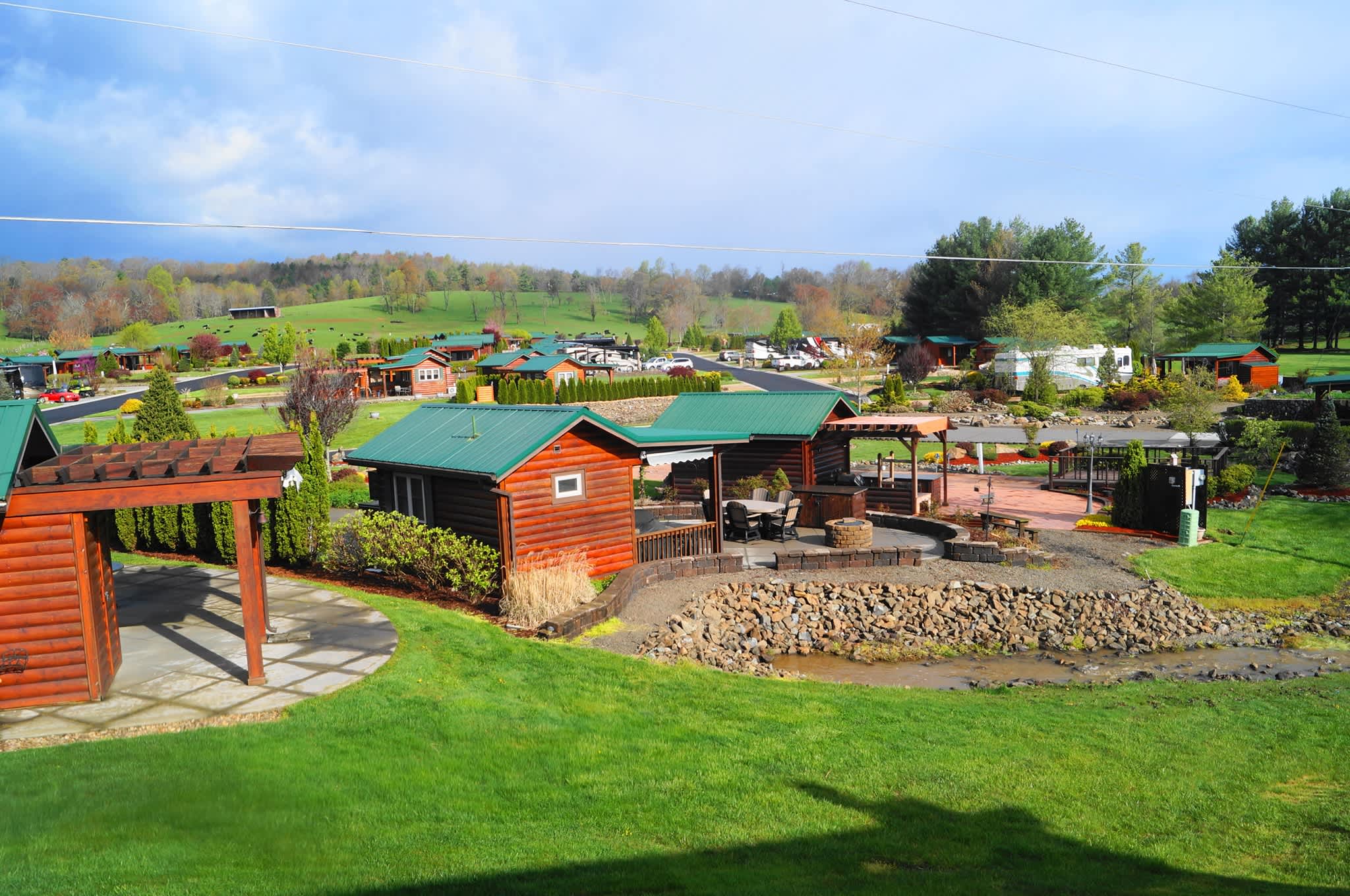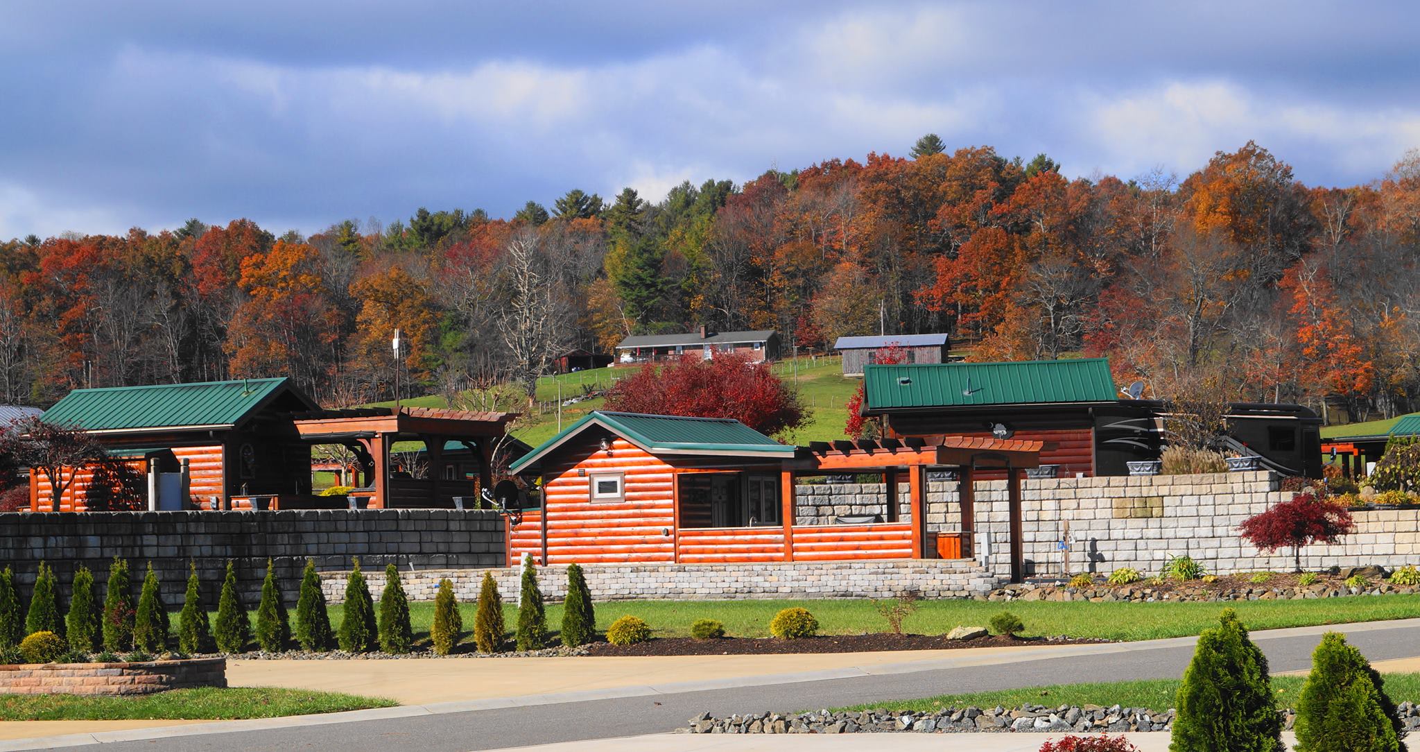 Deer Creek is a cozy community of Class A and Super C owners located just off the Blue Ridge Parkway in Galax, Virginia. It’s hard to top the majesty of these mountains, and, frankly, we think anyone attempting to outdo nature’s majesty has the whole thing backwards. We believe life in these parts is about appreciating and honoring the epic beauty of Appalachia. So, if you’re up for making new friends and sharing great times in the heart of one of America’s most pristine landscapes, we say, “come on out! Whether you’re a bass master or a wannabe bass master, our fully stocked fishing pond is steps away. So, pack your light tackle and be sure to include a few spinner baits because there’s a monster down there just waiting to strike something shiny. If you’re an avid angler who wants to catch the dawn bite, choose a site overlooking the Deer Creek Pond, so you can rise, shine, and cast away. Catch and release only, please. The fish help keep our pond healthy. We completed a beautiful rebuild of our Clubhouse over the 2022-2023 season, so our community hub has never looked or felt better. With a full kitchen and a total of 3,850 square feet of indoor and outdoor space, it’s the perfect setting for any type of get-together. The Clubhouse also happens to be home to our on-site fitness center and laundry facility. So, you can work out while running a few spin cycles, if you like. Discover our small-but-mighty fitness center, where every workout packs a punch. Thoughtfully designed and fully equipped, it offers the perfect blend of high-quality machines and a welcoming atmosphere. Whether you’re squeezing in a quick session or committing to a full routine, this intimate space delivers big results with personalized comfort and zero intimidation. Our furry friends also have a great place to play. The dog park is full of green grass – no dirt here! Equipped with a dog station, water, benches underneath the shade tree for our humans, and lots of room to chase a ball or roll around in the grass. Please note: Rental season is April 15 - October 31.