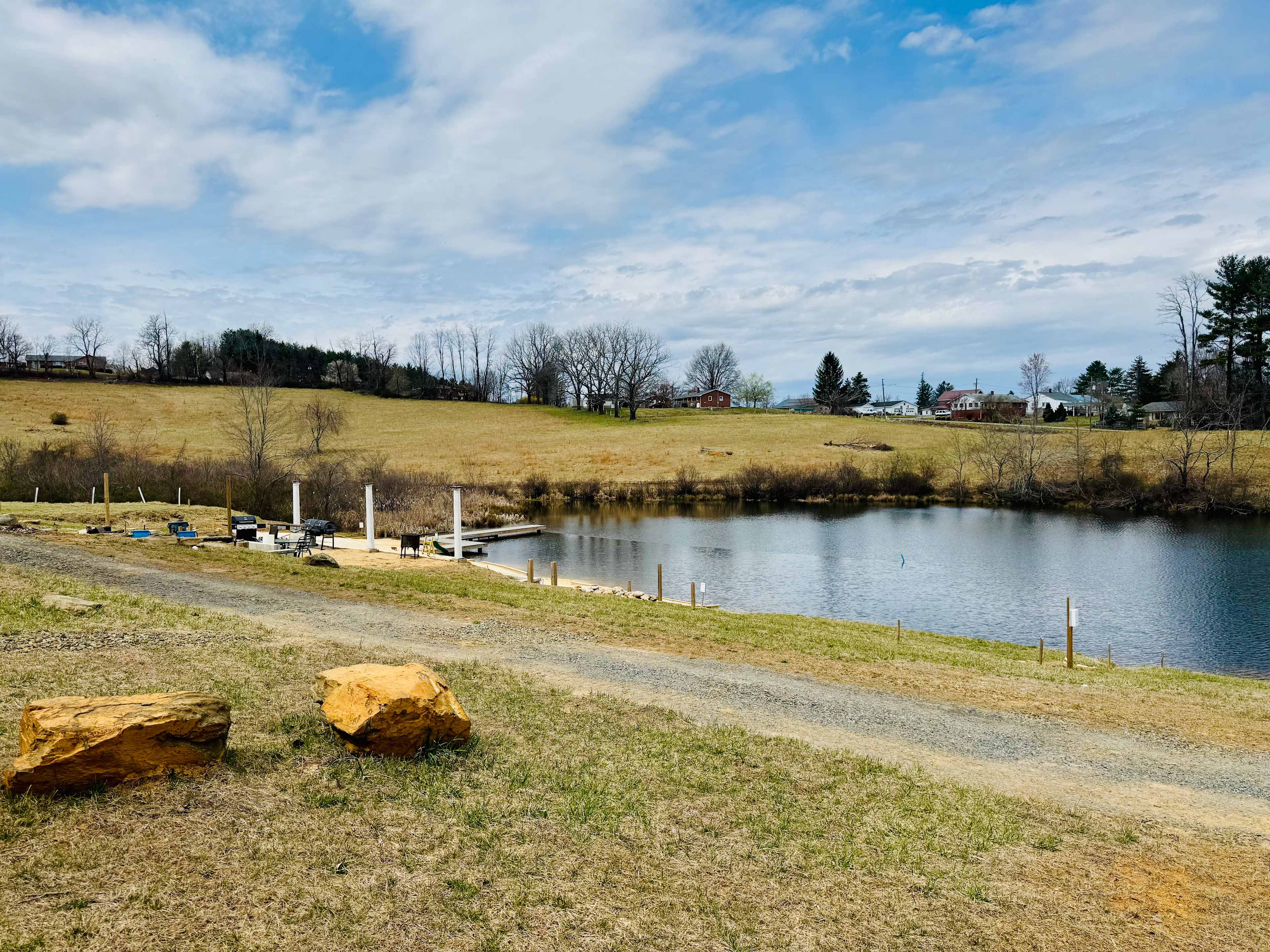 The Mountain View RV site is recommended for 24’ max length. Power and water in communal bathhouse. WiFi. No dump facilities. We have plenty of space to welcome you. Shared bathhouse and BBQ area within walking distance to downtown Floyd and all its wonders. Green Acres Resort features a spring-fed swimming pond with its own golden sand beach, pickleball courts, fire pit and bbqs, and a custom bathhouse. Floyd Virginia is the heart of the countryside, we’re excited to welcome you to Green Acres Resort!