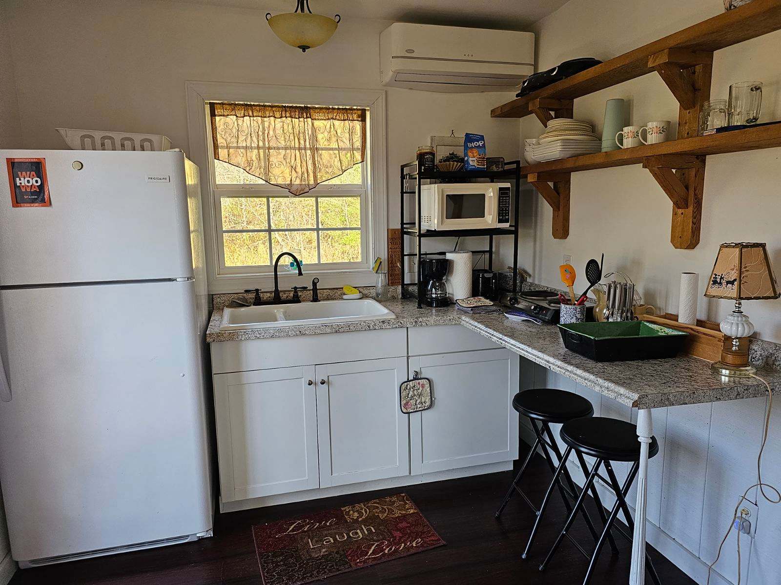 This cozy cabin is situated in beautiful forest, large open fields, and potential for much wildlife. Whether you are looking for accommodations for a special event or just getting away from the hustle bustle of every day life, this is the perfect place for you. Sit back, relax and watch birds and gorgeous sunsets and sunrises in a most serene environment. Enjoy exercising with a short but moderate hike on the property to a beautiful overlook of the James River! Inquire about a one time breakfast or pastries for an additional fee. Glamp in style with this unique cabin with vintage charm!