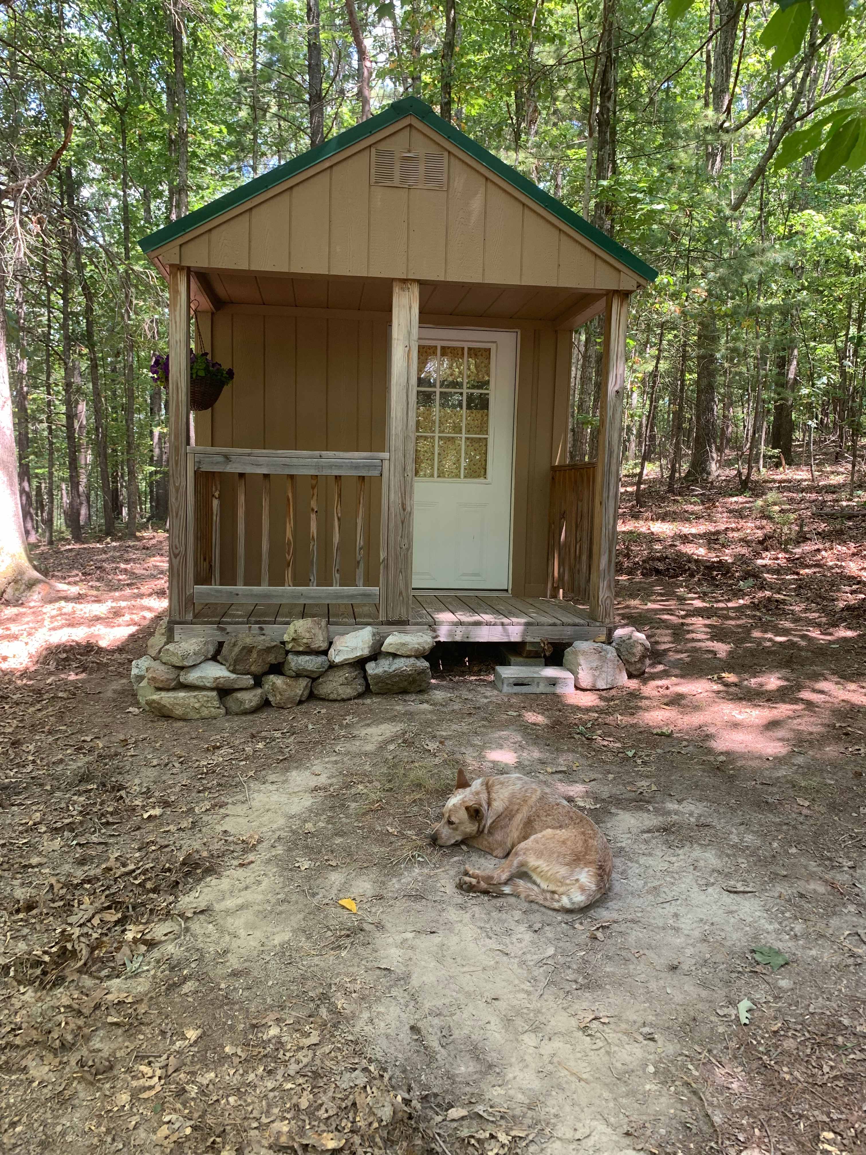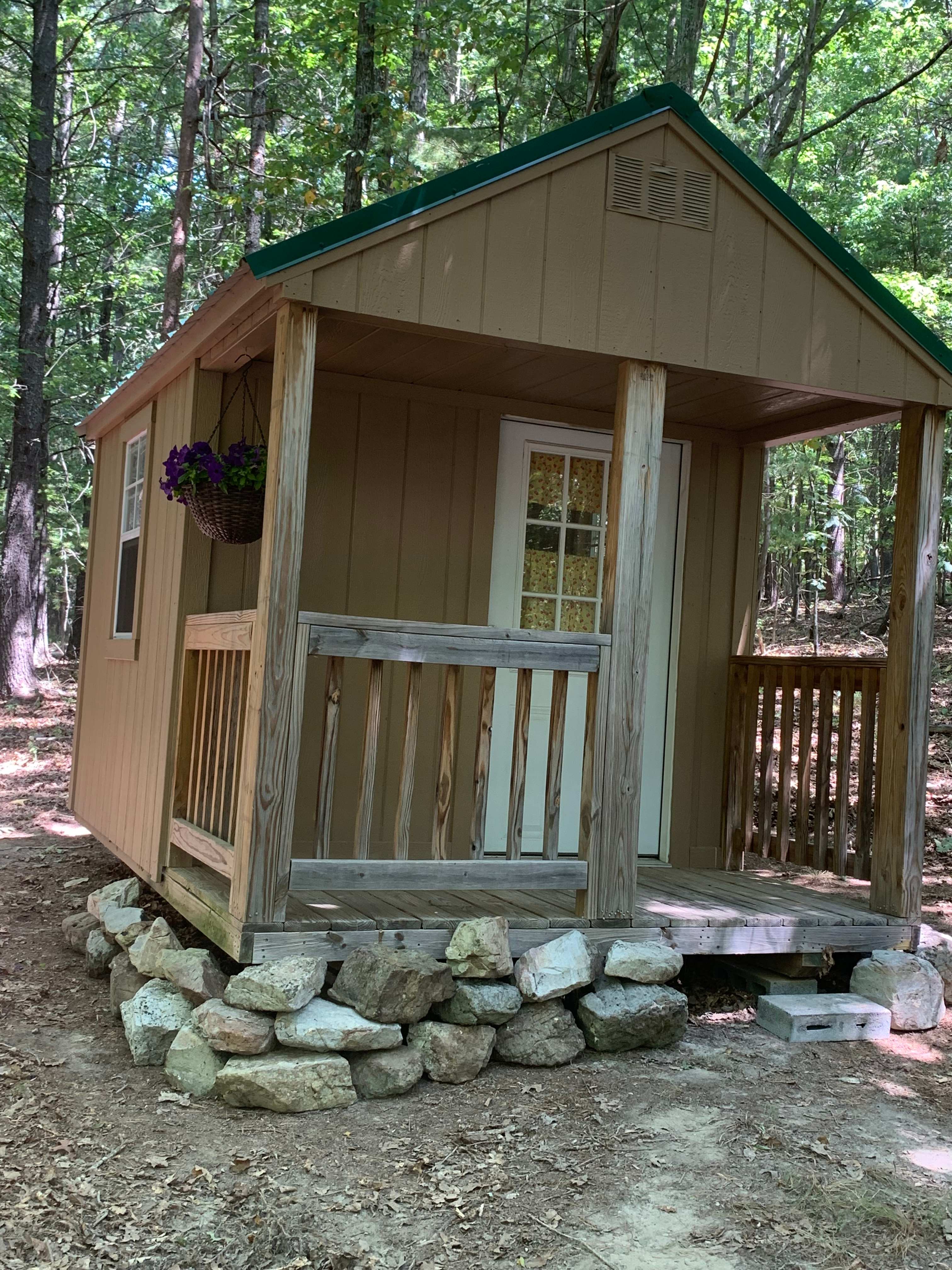 The Clubhouse is a one room tiny house along our trail through the woods on our 158 acre farm! Enjoy the cozy porch! Pitch a tent or sleep inside the clubhouse! Campfire pit and table and chairs available to enjoy! You can hike the trail to the Lookout. Plenty of campfire wood to collect through the woods. Bathrooms are available at the barn. They have toilets and running water but no showers.