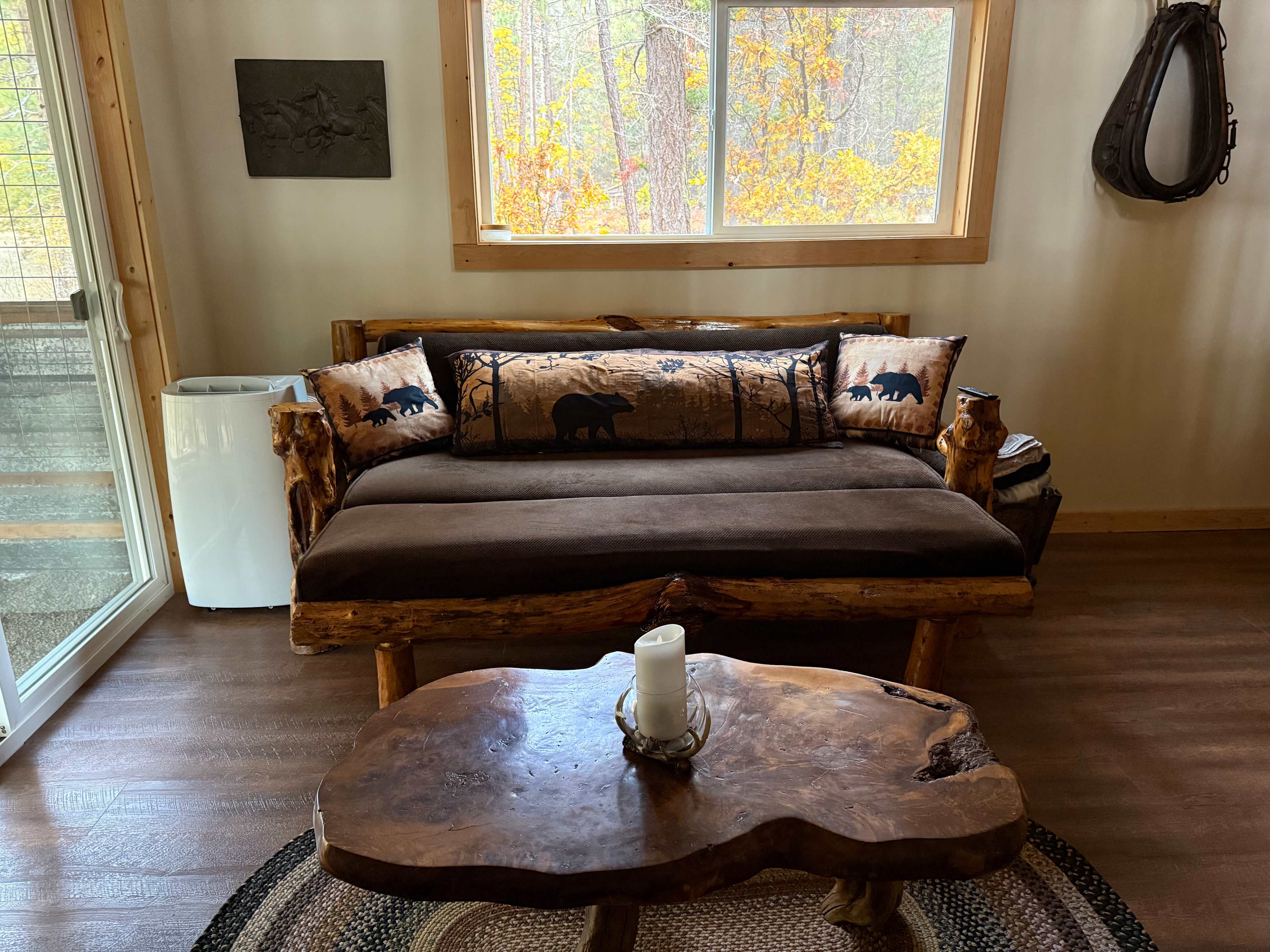Our cabin was built in 2025 and is located on 15 acres. It is surrounded by 14,000 acres of wildlife habitat. Plenty of room for parking. The cabin features an open-concept layout with four beds, a large-screen Smart TV, electric fireplace, microwave, convection oven, air fryer, BBQ, fire pit, and a full bath. There is also a large, electrically fenced turnout for horses, plus portable metal panels. The property is shared with my log cabin, but the two cabins are not attached. There are is a bunk bed with a full on the bottom and twin on the top, a Queen bed, and a futon that folds out to a bed. There is a loft that has the Queen beds and bunk beds. The living-room is where the futon is located. There is a flush toilet and shower and bath, and there is hot water. There is a microwave, small fridge and freezer, and coffee maker. There is a BBQ outside that is charcoal. Charcoal is not provided but please ask before bookings. The kitchen is fully equipped with silverware and dishes, but there are no pans as there is no stove. The cabin come with all the linens and pillows for sleeping, as well as towels.
