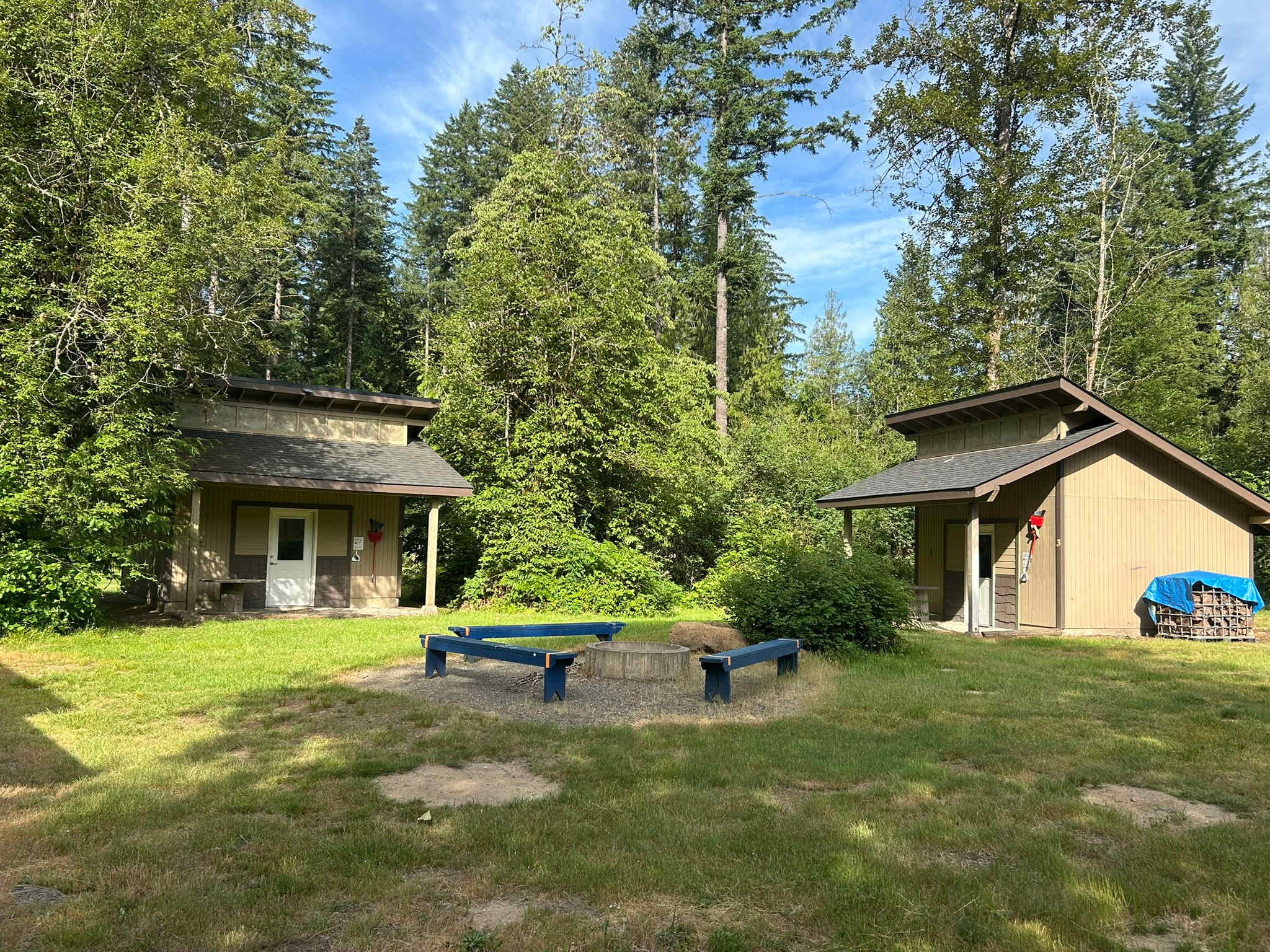 Beautiful forest campground with rustic cabins and tent campsites! Enjoy hiking, exploring caves, swimming in the East Fork Lewis River, and campfires while stargazing—just a few miles outside Battle Ground, WA. We also offer hot showers, bathrooms, and covered picnic shelters for your use. Come stay with us!