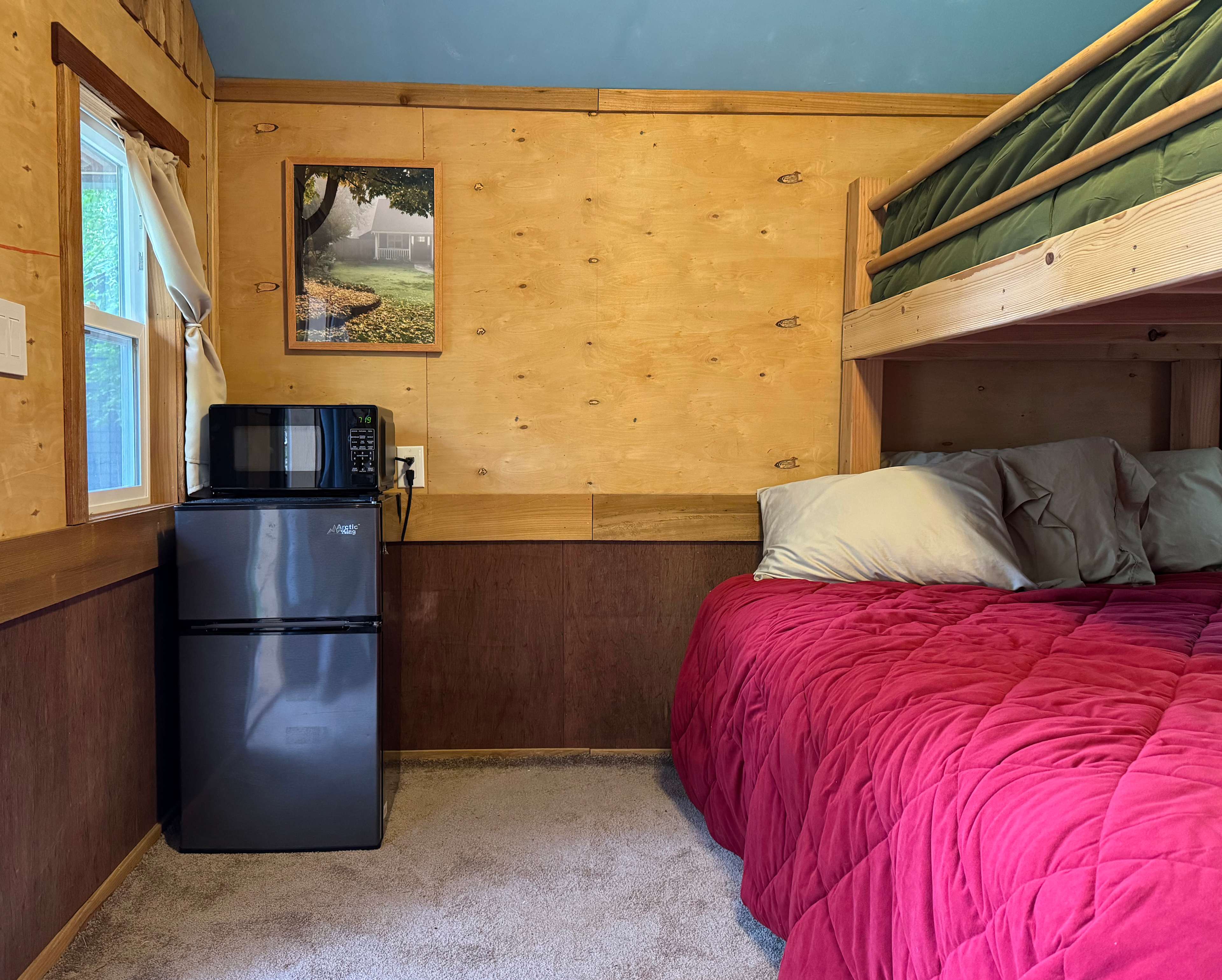 If you like to camp in the winter, like to take your dog, and want a roof with a heater over your head, this is perfect! It was a perfect island adventure. Fred's special touches included easy access pottable water and dishwashing sink on the porch of the cabin, a clean/neat outhouse, a bug flap, heater, microwave, fridge, and COOKIES! We walked down to the beach, took a couple trips to beautiful parks, and enjoyed the views of the water from the cabin. We brought a tent/shelter and put it up for an extra "room" to enjoy the views and grilled cheese/tomato soup, hot cider, and apple crisp. We heard coyotes howling in the distance, owls hooting, saw deer, coyotes, and river otters. We truly had an island adventure we will always cherish and remember. Thank you Fred for providing us this opportunity!!