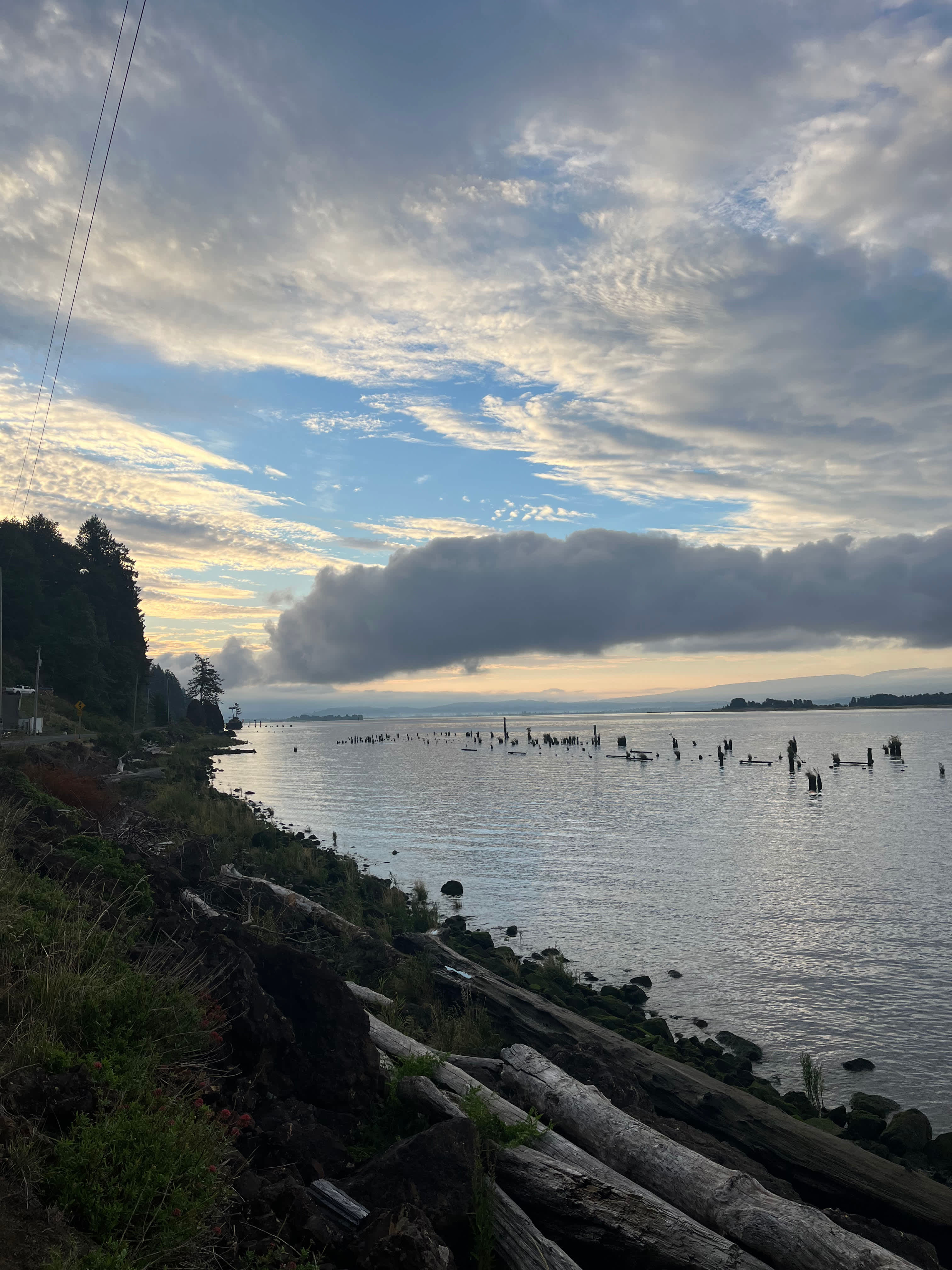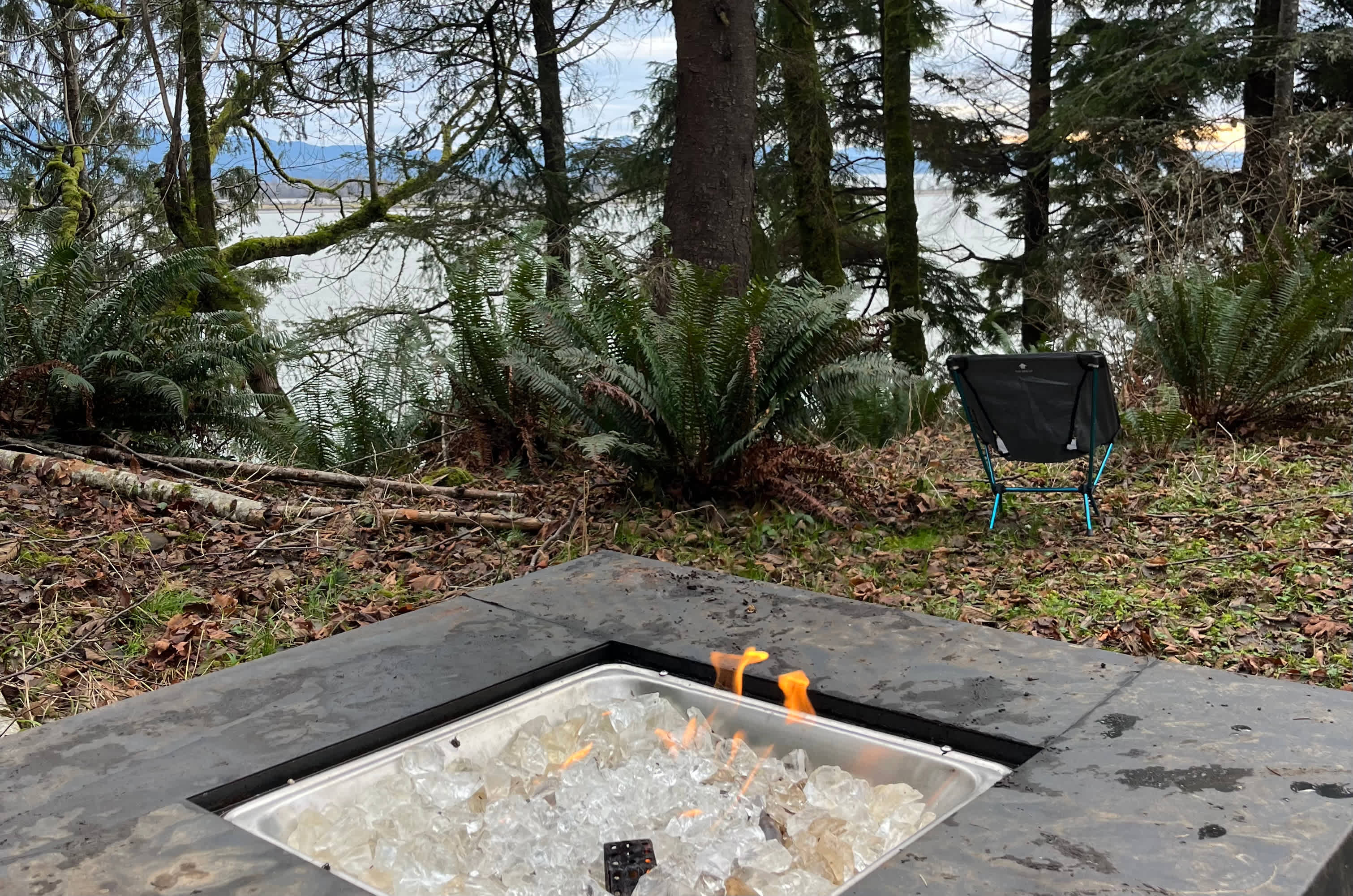 Riverside Camp is your accessible base camp with sweeping Columbia River views. This grassy clearing offers the easiest access of our three sites while maintaining the peaceful, off-grid experience. Ideal for families, small groups (up to 6 tents), and our only Class C RV-accessible site. Not suitable for larger RVs. Amenities: Picnic table Fire pit (bring your own firewood) Large grassy clearing for up to 6 tents Portable toilet (near parking area) Creek access for water (purification required) Stunning river views Parking for up to 4 vehicles at upper lot; 2 vehicles permitted to drive down to tent area. Activities: Hiking, birdwatching, river watching, fishing, beach access (easiest access between the two pillars across the road), stargazing, exploring nearby attractions. 45 minutes to Astoria; 60 minutes to ocean beaches. What to Bring: Everything you need for primitive camping including tent(s), sleeping bags or hammock(s), water or purification system, all food and cooking equipment, personal items, rain gear, garbage bags, bug repellent, headlamps, firewood (collecting tinder/kindling from downed wood permitted; tree cutting prohibited) Vehicle Access: This is our only site accessible by low-clearance vehicle, though road can be rutted. Class C RV accessible for adventurous souls. Up to 20' travel trailer accessible for adventurous, skilled drivers with 4x4 tow vehicle in dry (not muddy) weather. Important: No electricity, running water, or showers. Park nose-in or back-in along the road; do not block road. Pack out all trash.
