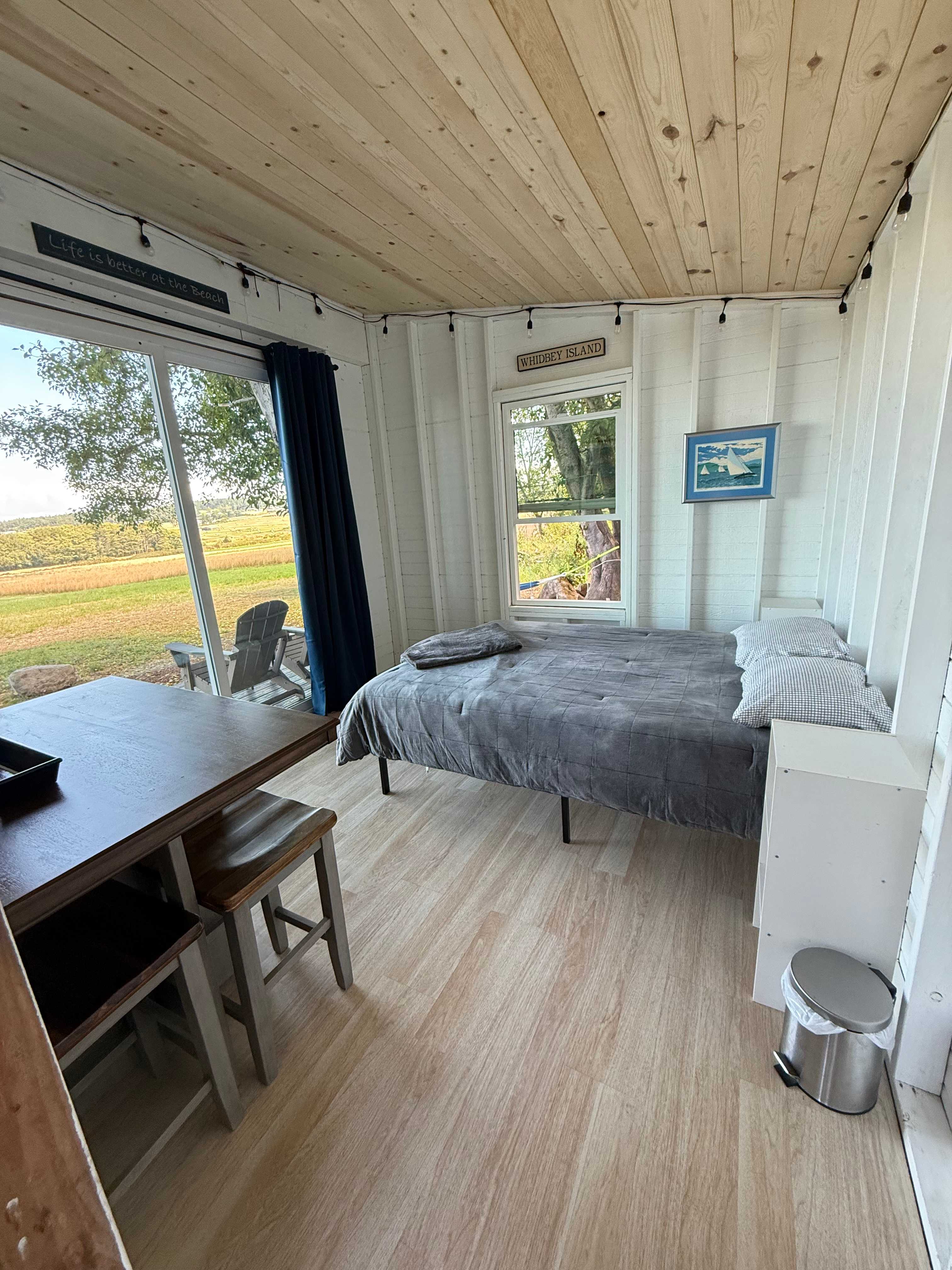 - No electricity or indoor heat, 2 large batteries supply limited amt. of power. We (sparingly) used ~50% of 1 battery for 2-night stay.